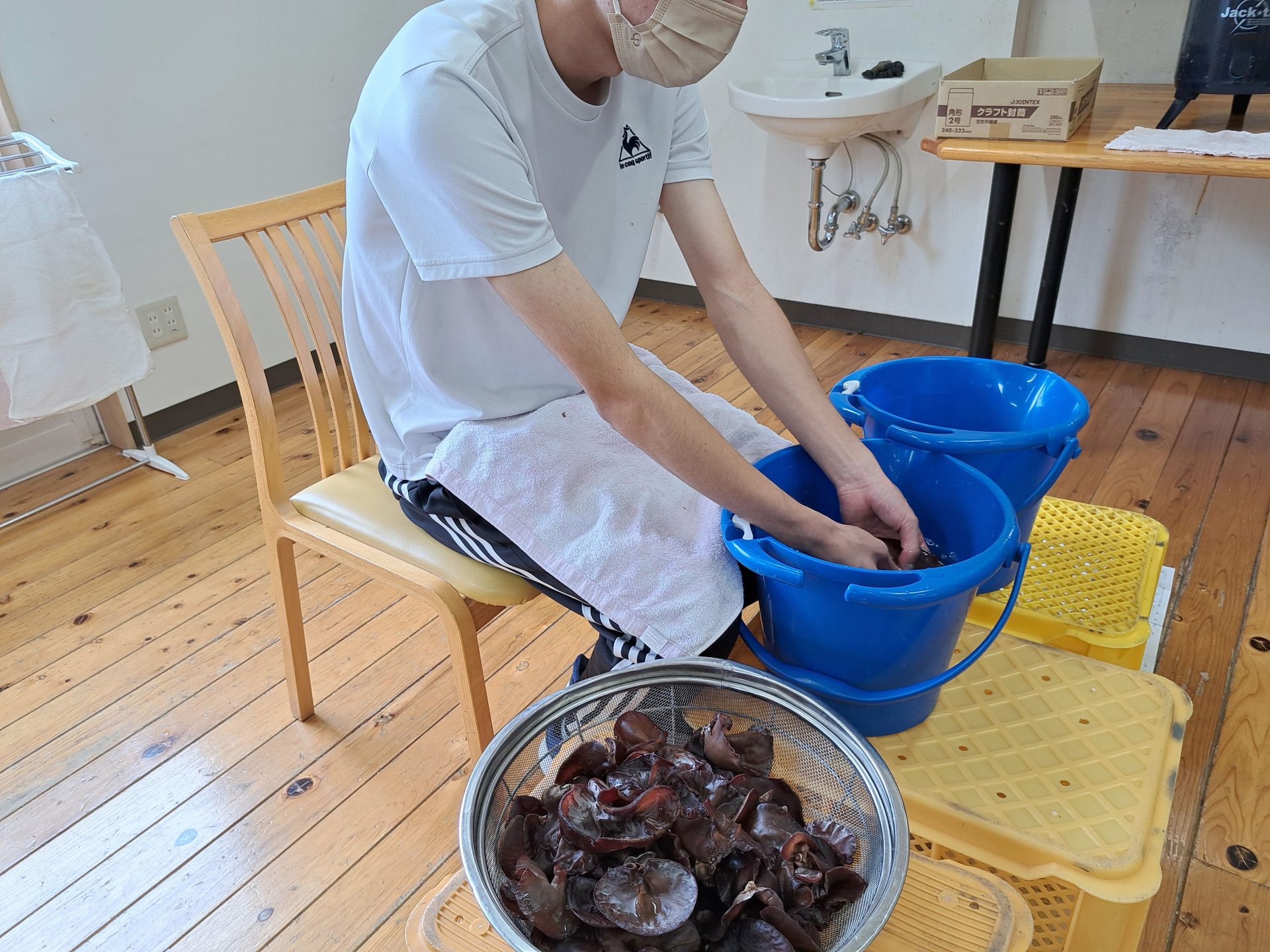 食堂ホールでは農芸班が仕事中です~♪