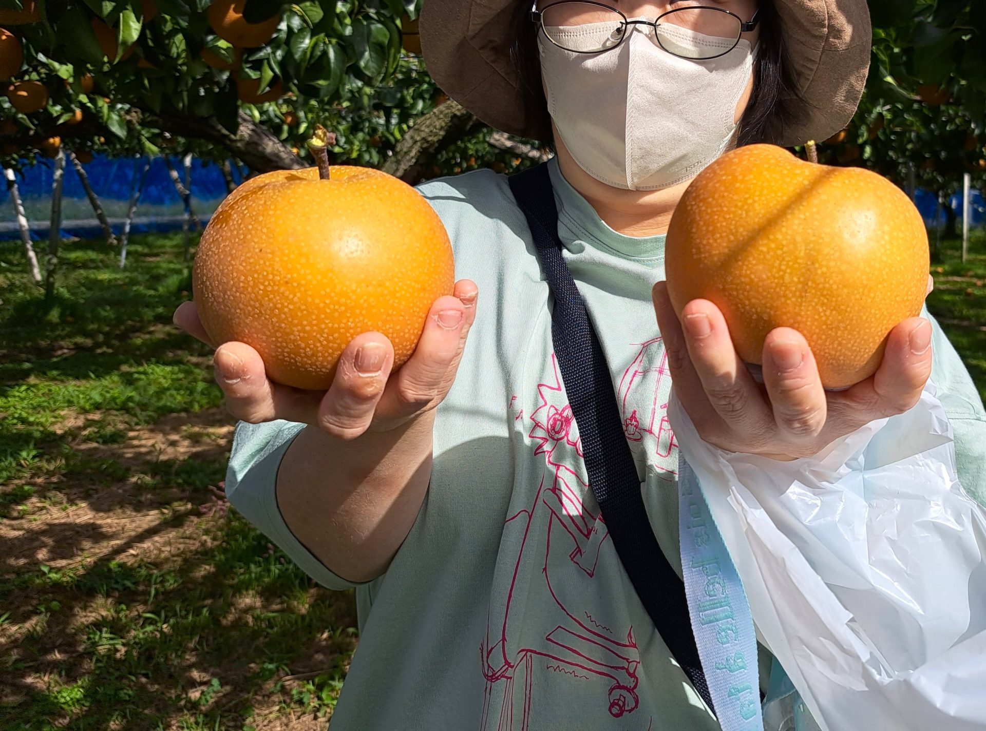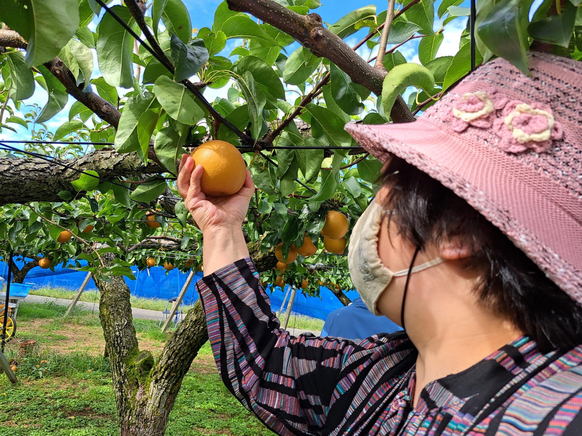 梨農家さんが収穫の仕方を教えてくれました~(´▽`*)