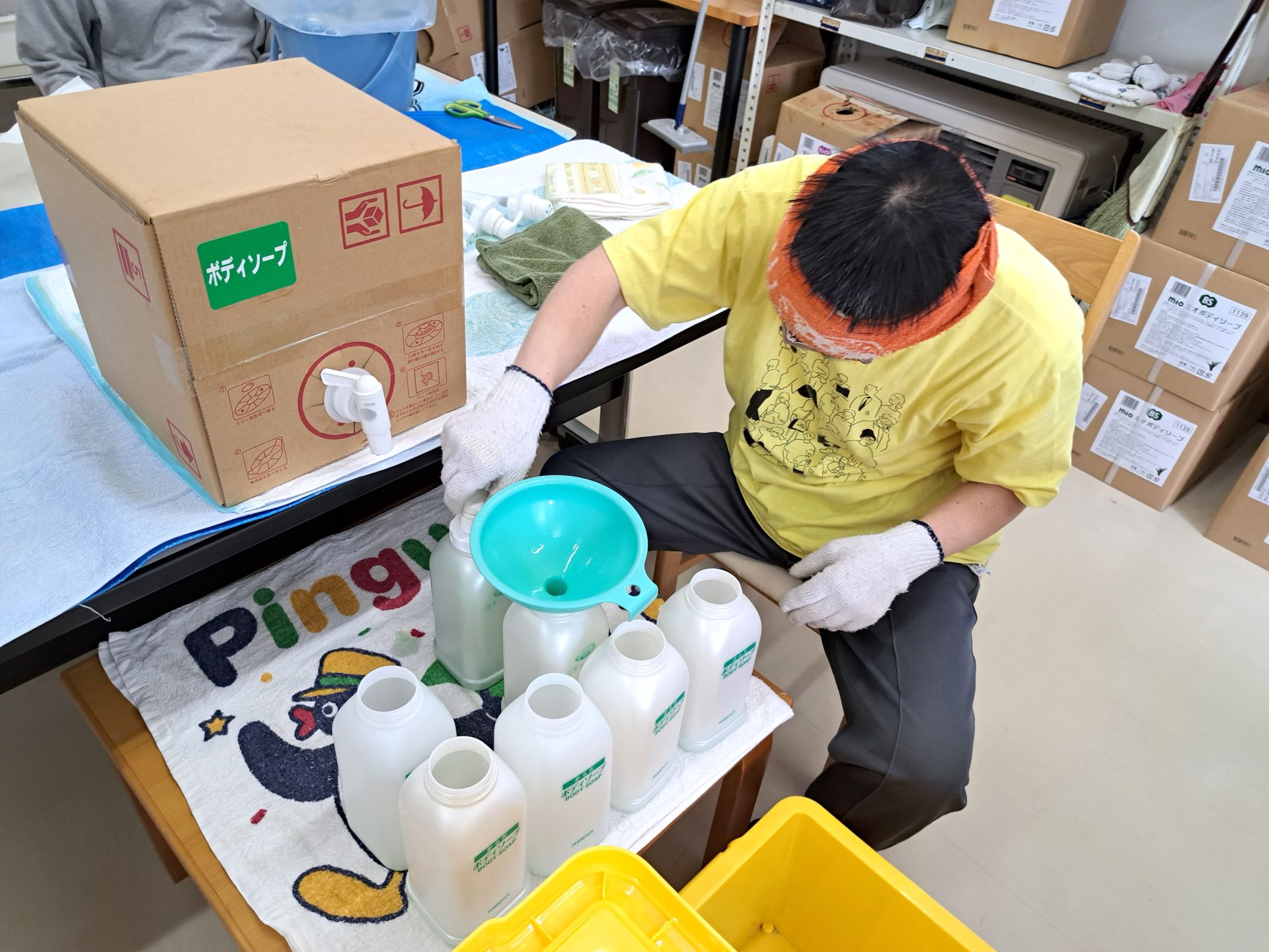 (月)はご家庭からも空き缶がいっぱい集まるので、本当にありがたいです~利用者さんも嬉しそう~(*´ω`*)