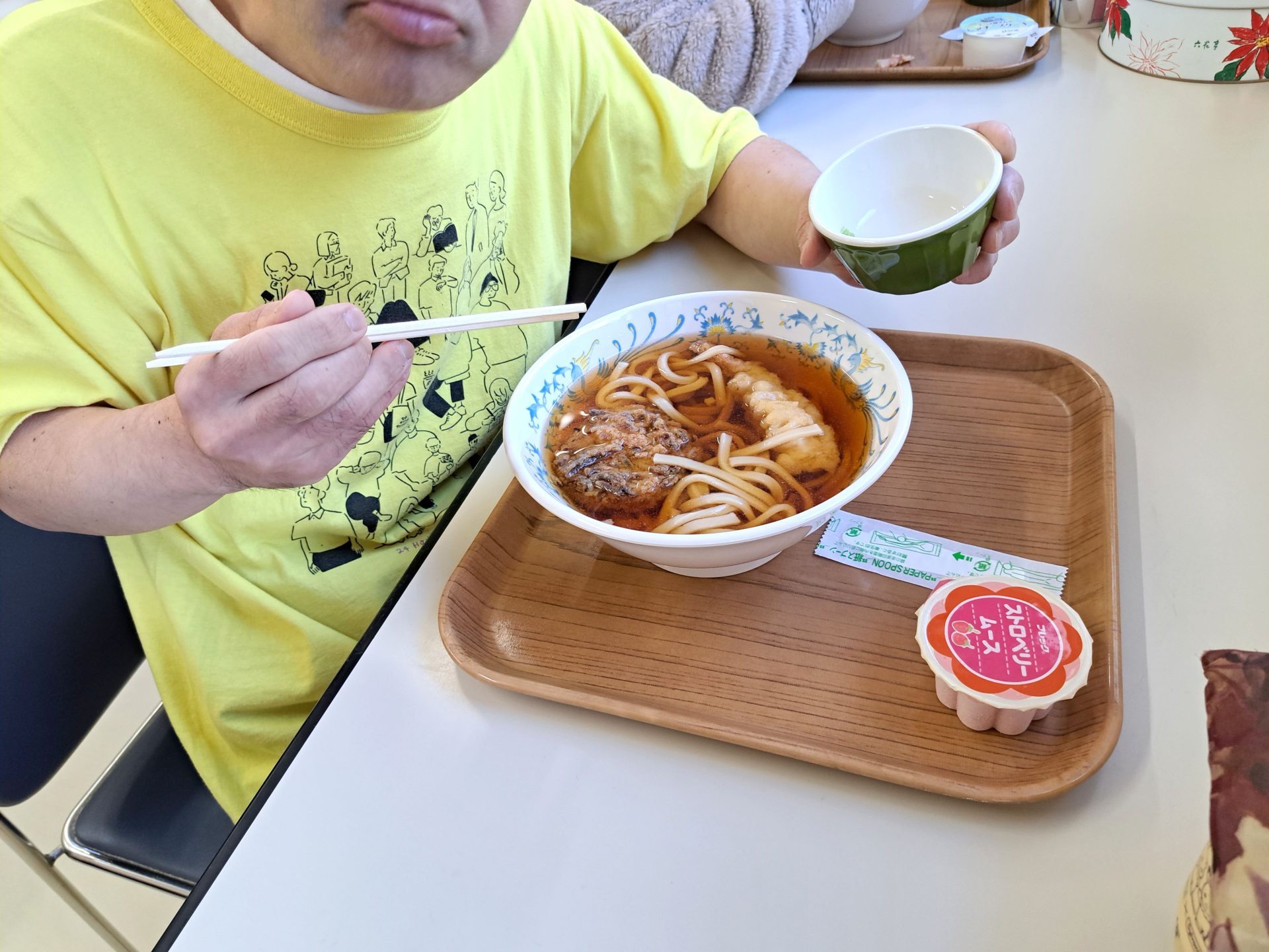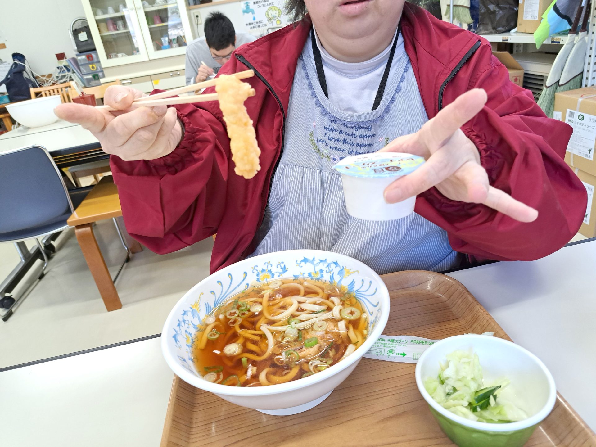 今日の給食は「天ぷらうどん」ですよ~(´▽`*)