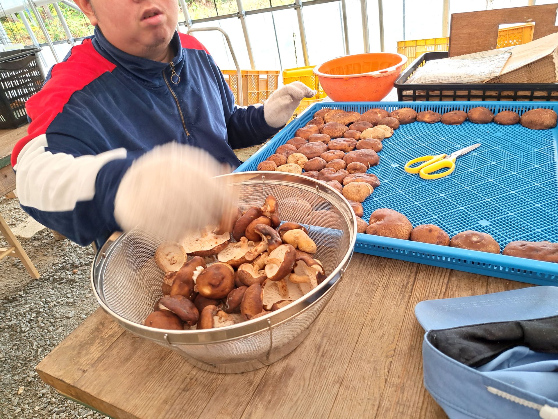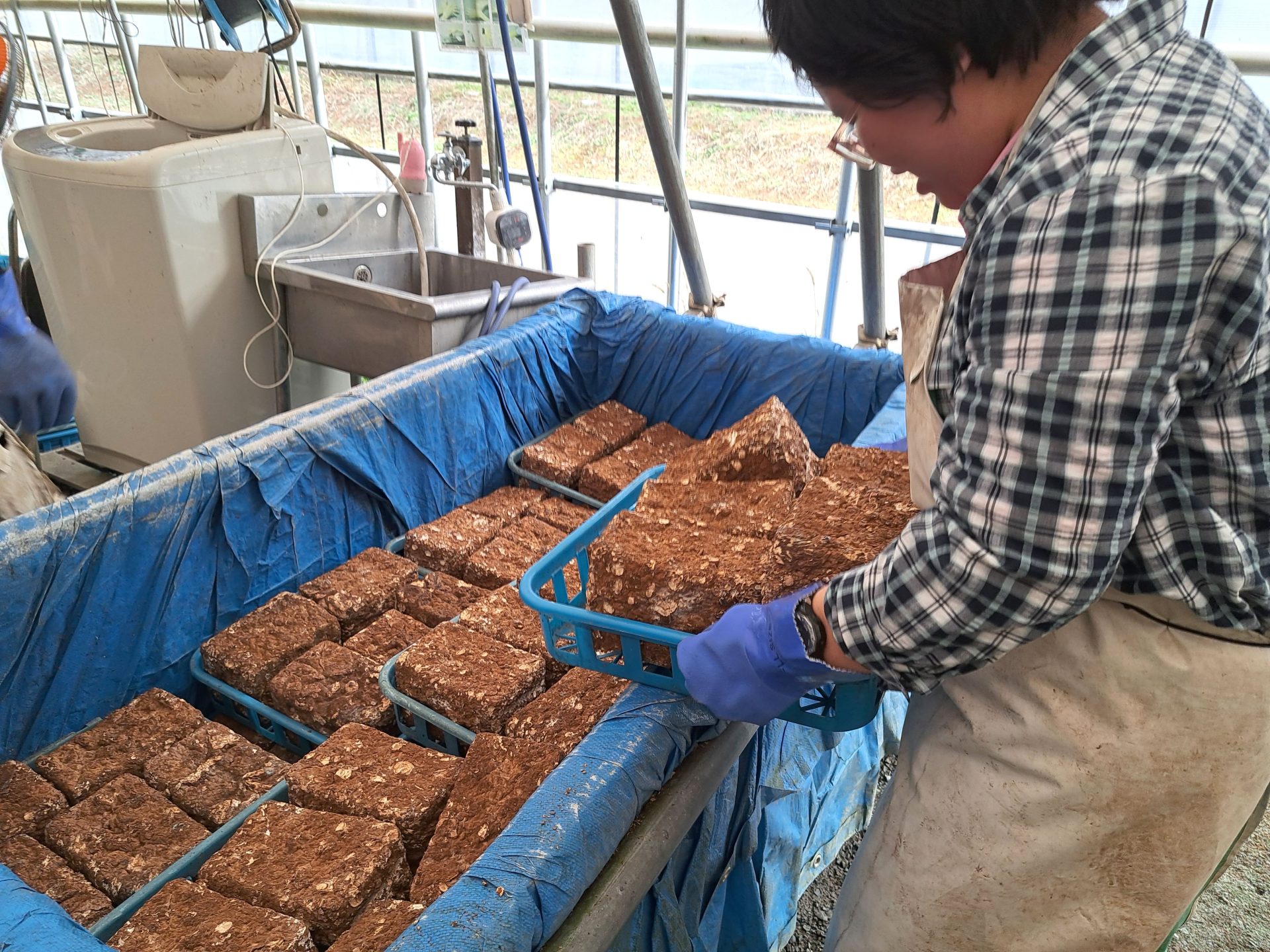 農芸班は菌床の浸水からスタート!