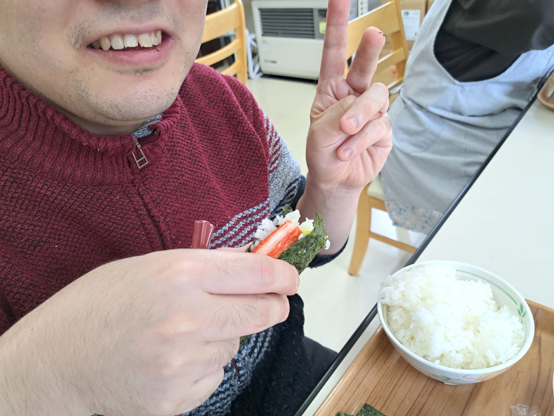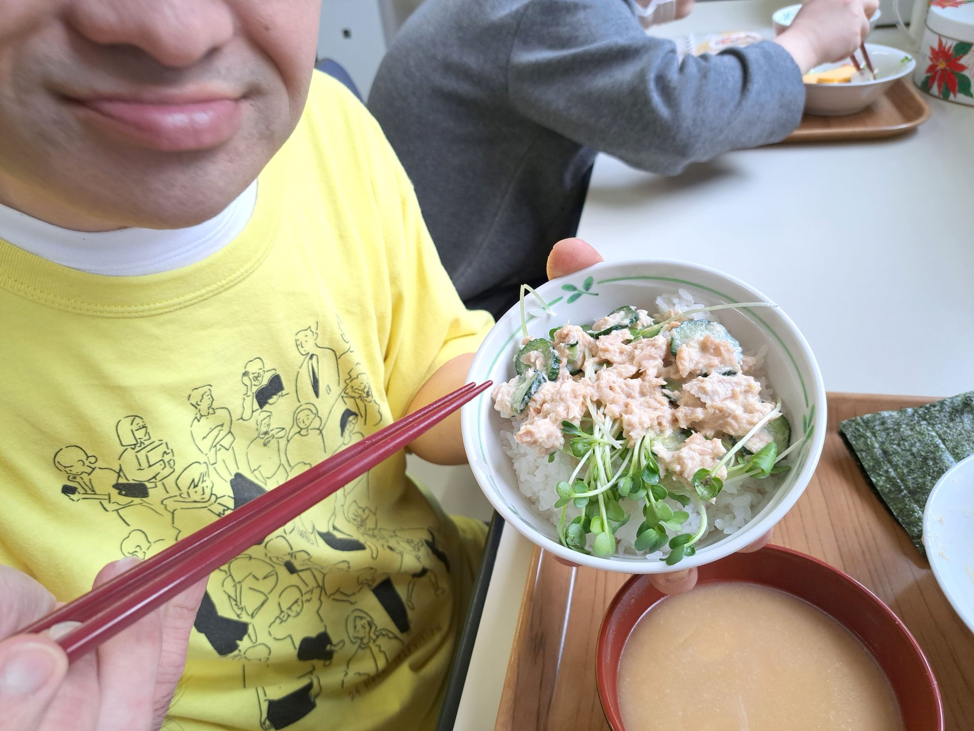 こちら文化の日にお誕生日を迎えた利用者さん~「すし海道の中トロ旨かった!」