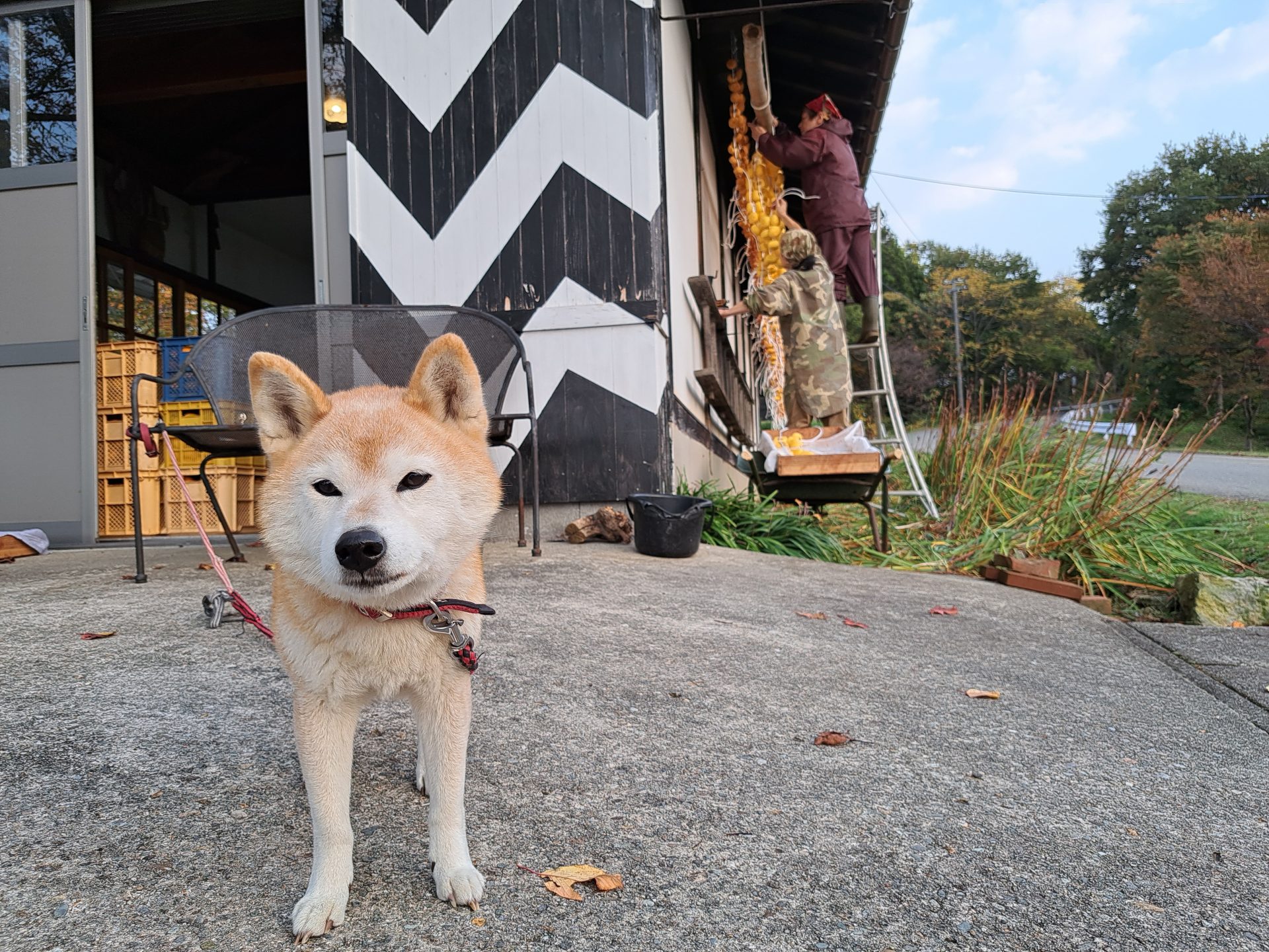 白壁の小屋のお宅では、毎年干し柿が吊るされるのですが、キレイなオレンジ色の暖簾のようで本当にキレイなんです~(#^^#)
