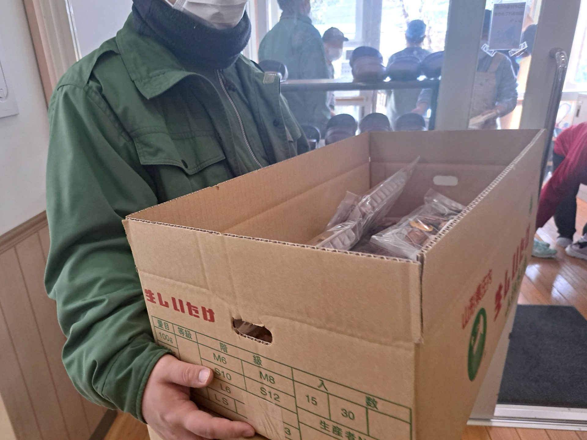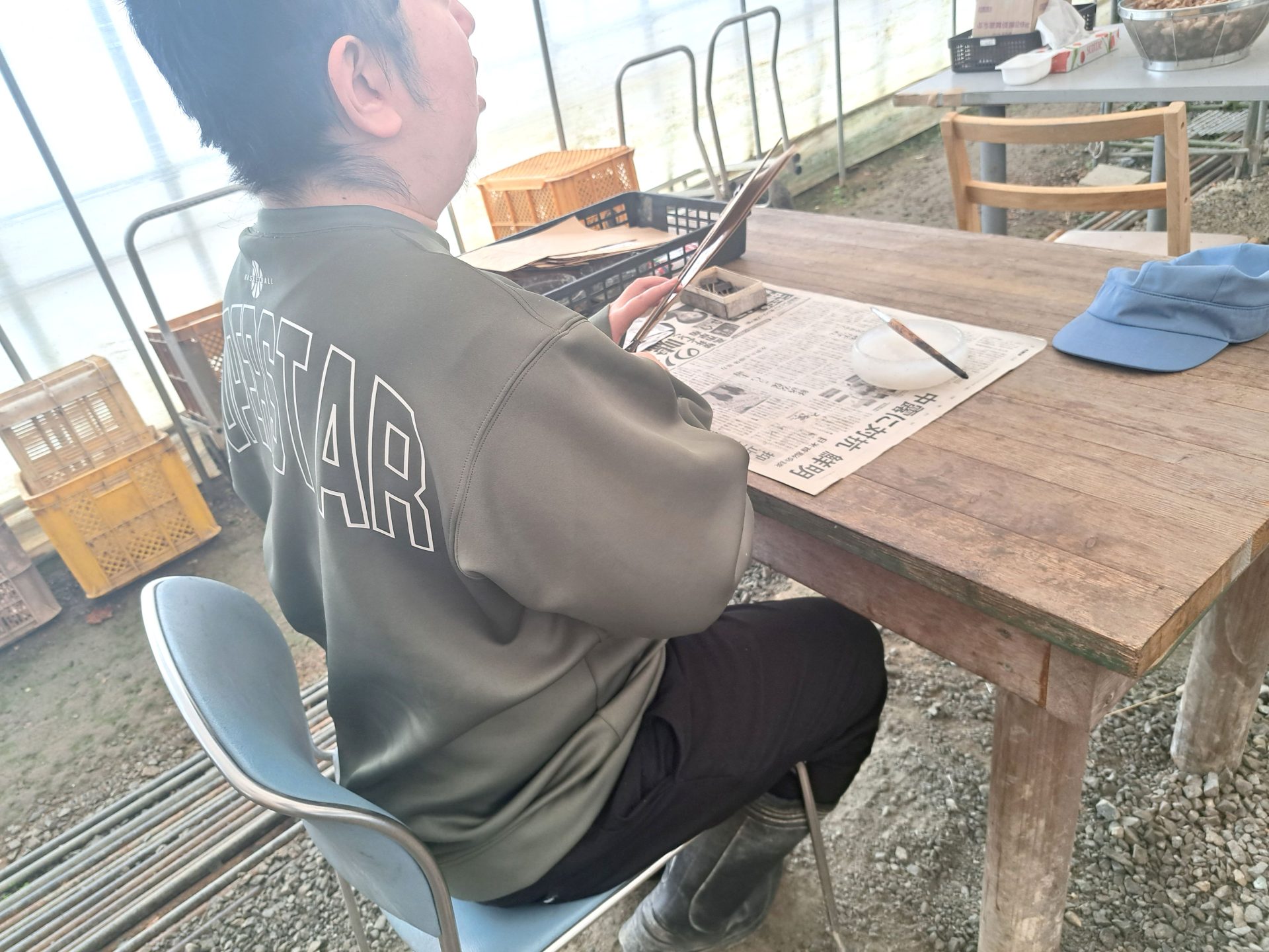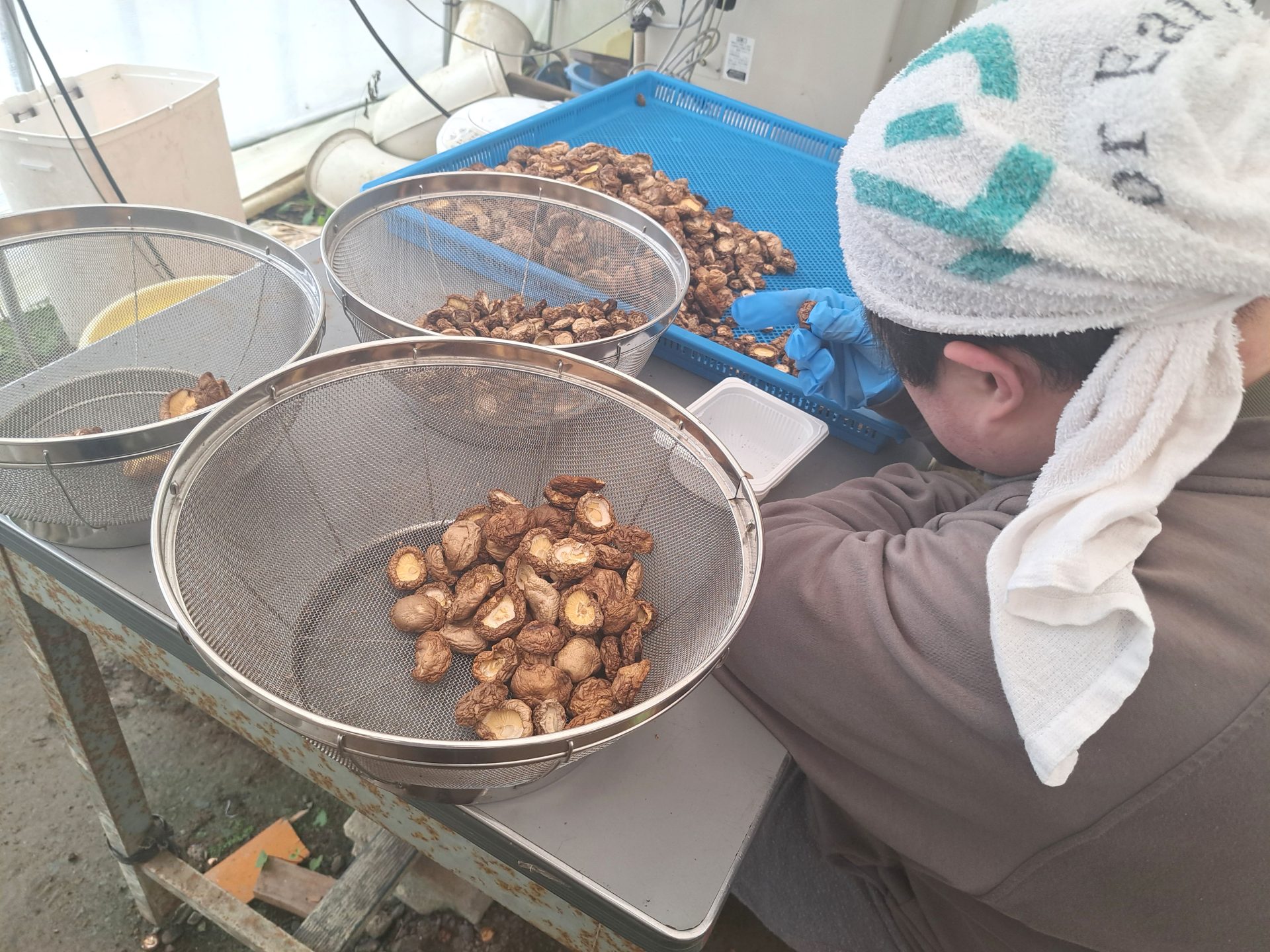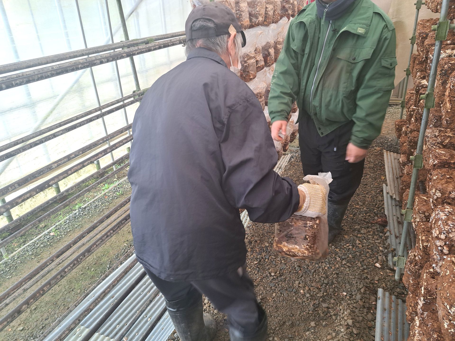 ハウスでは新しい菌床を運んでいました~(´▽`*)