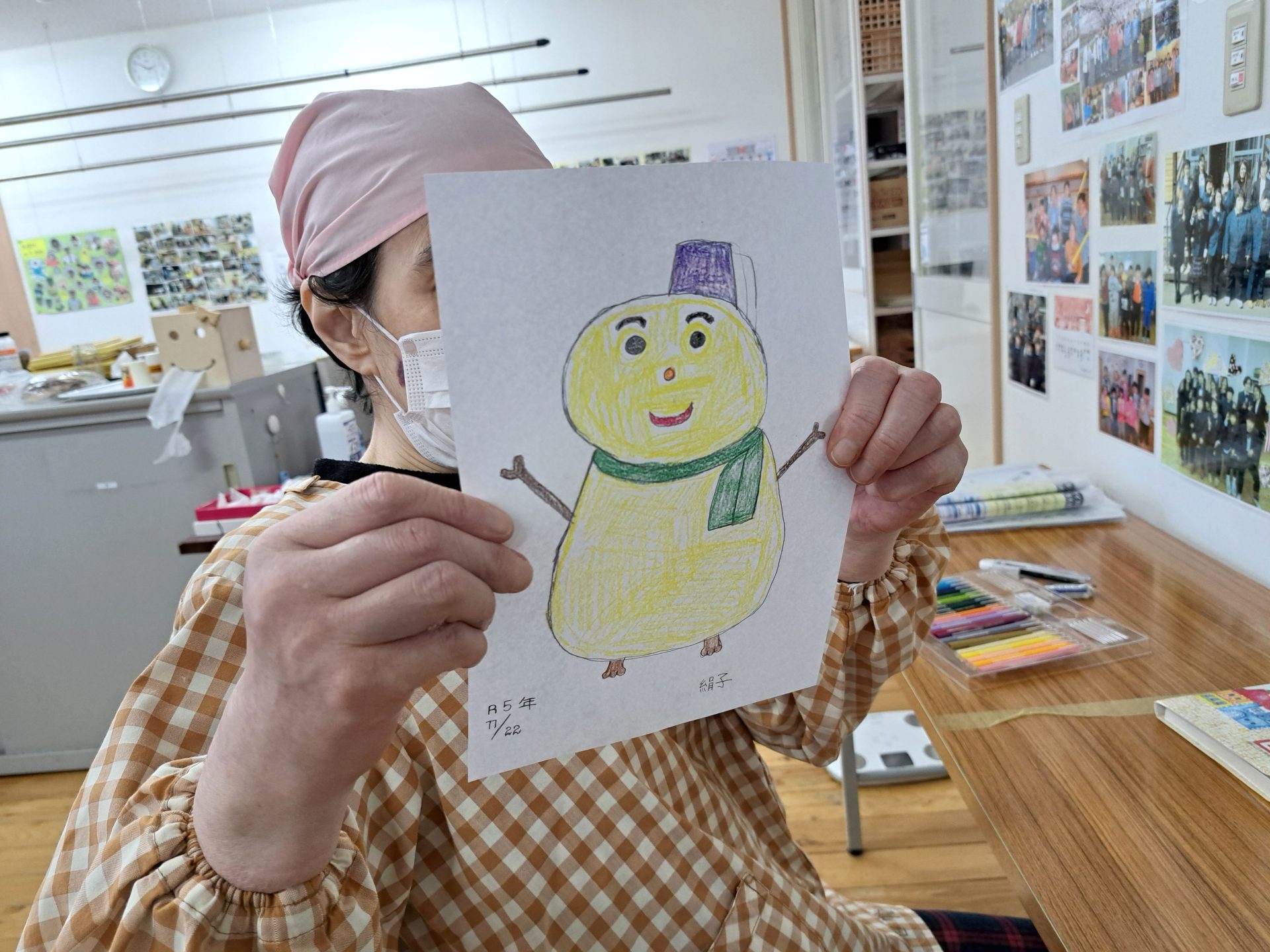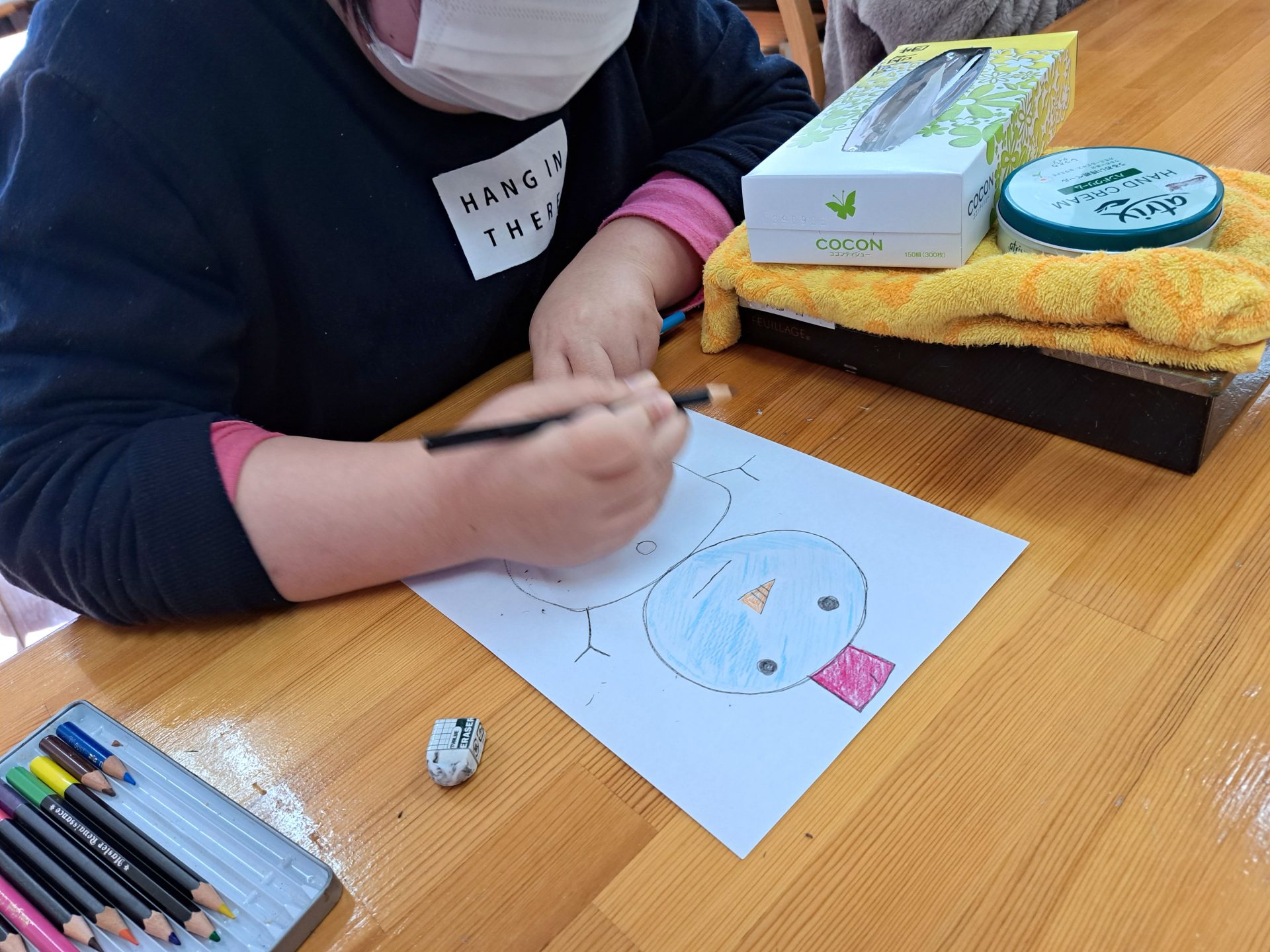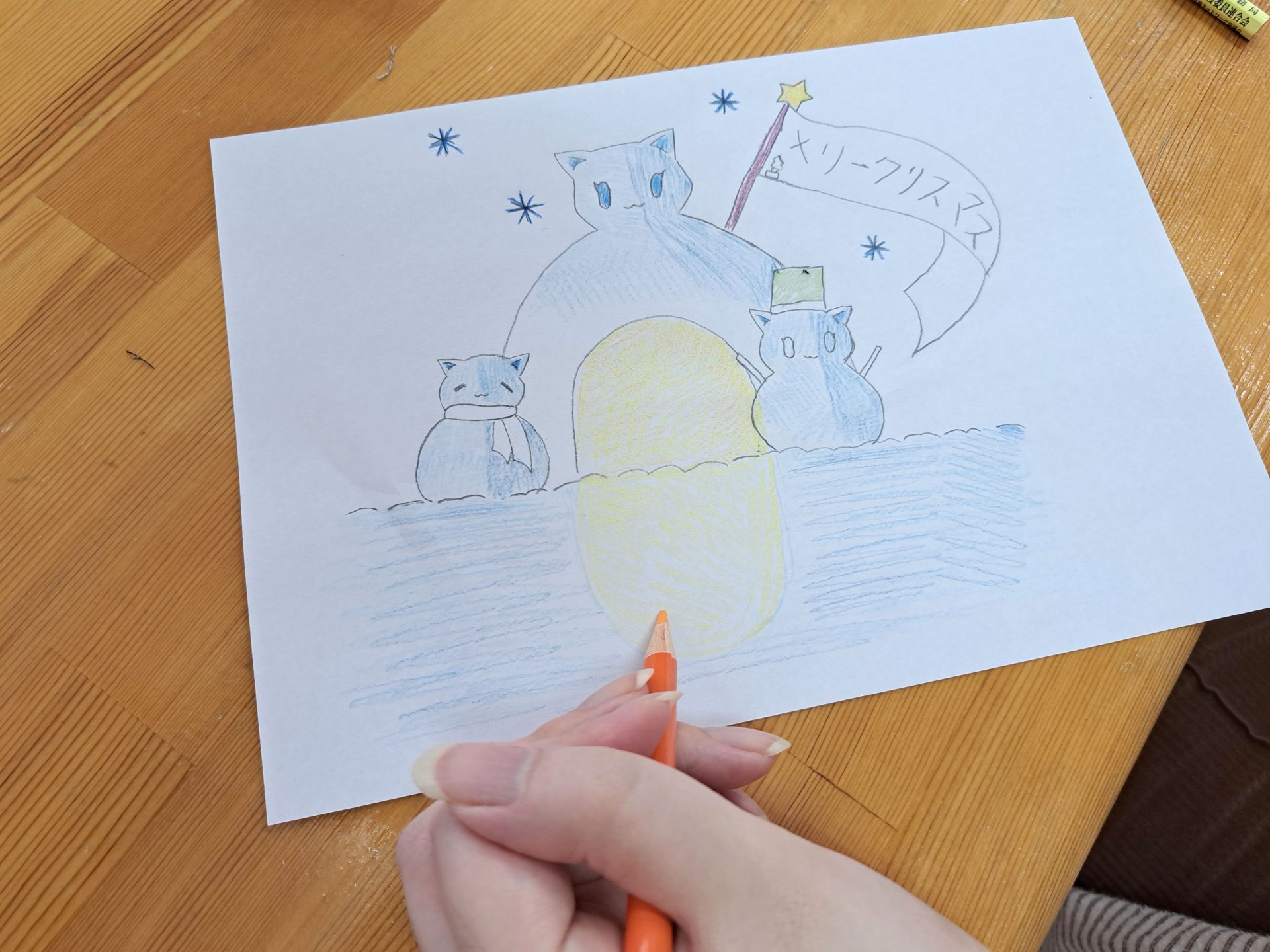 12月16日のクリスマス会に向けて、雪だるまのイラストをお願いされたようです~(´▽`*)