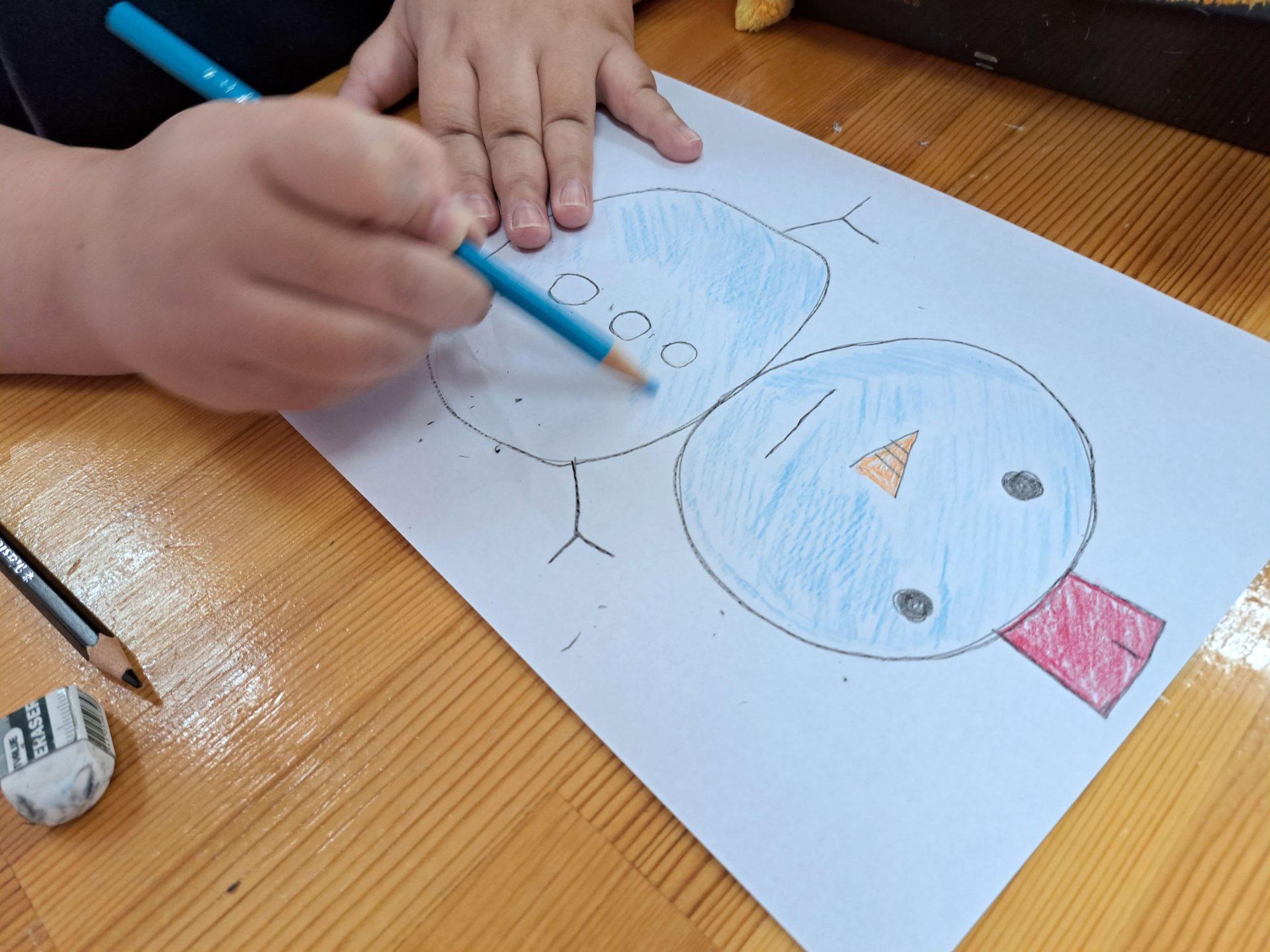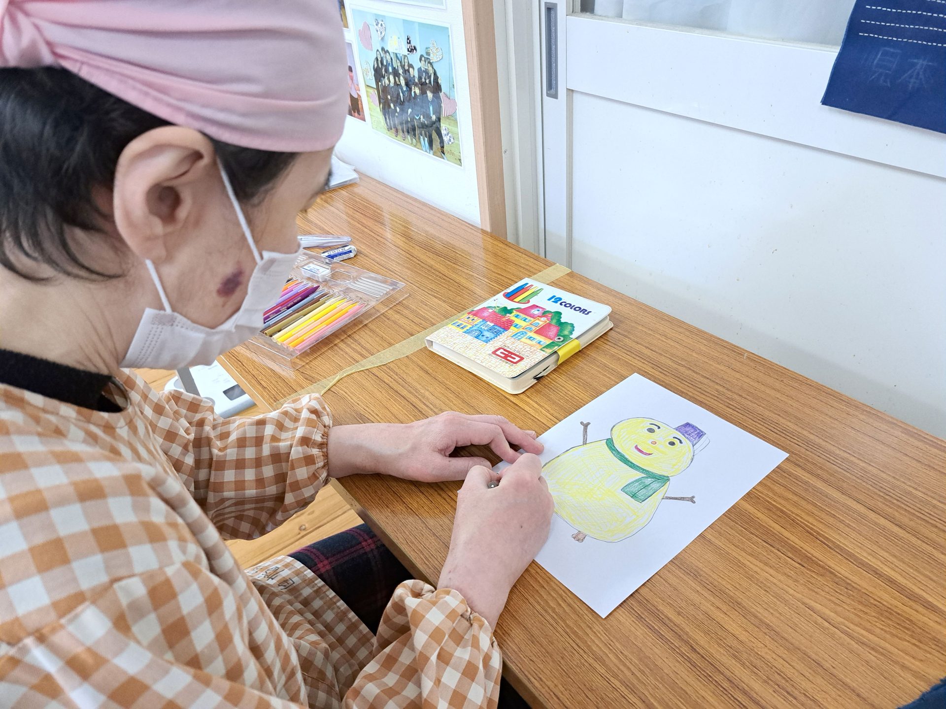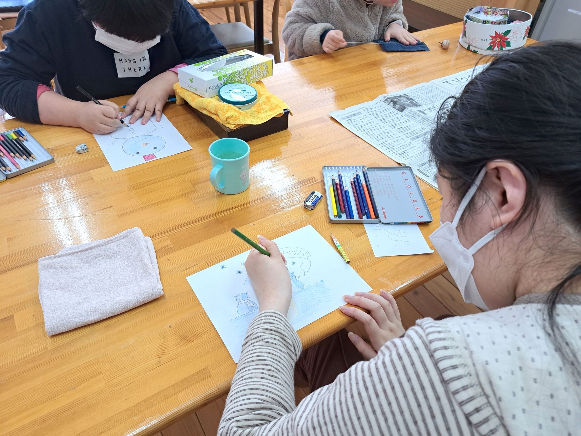 12月16日のクリスマス会に向けて、雪だるまのイラストをお願いされたようです~(´▽`*)