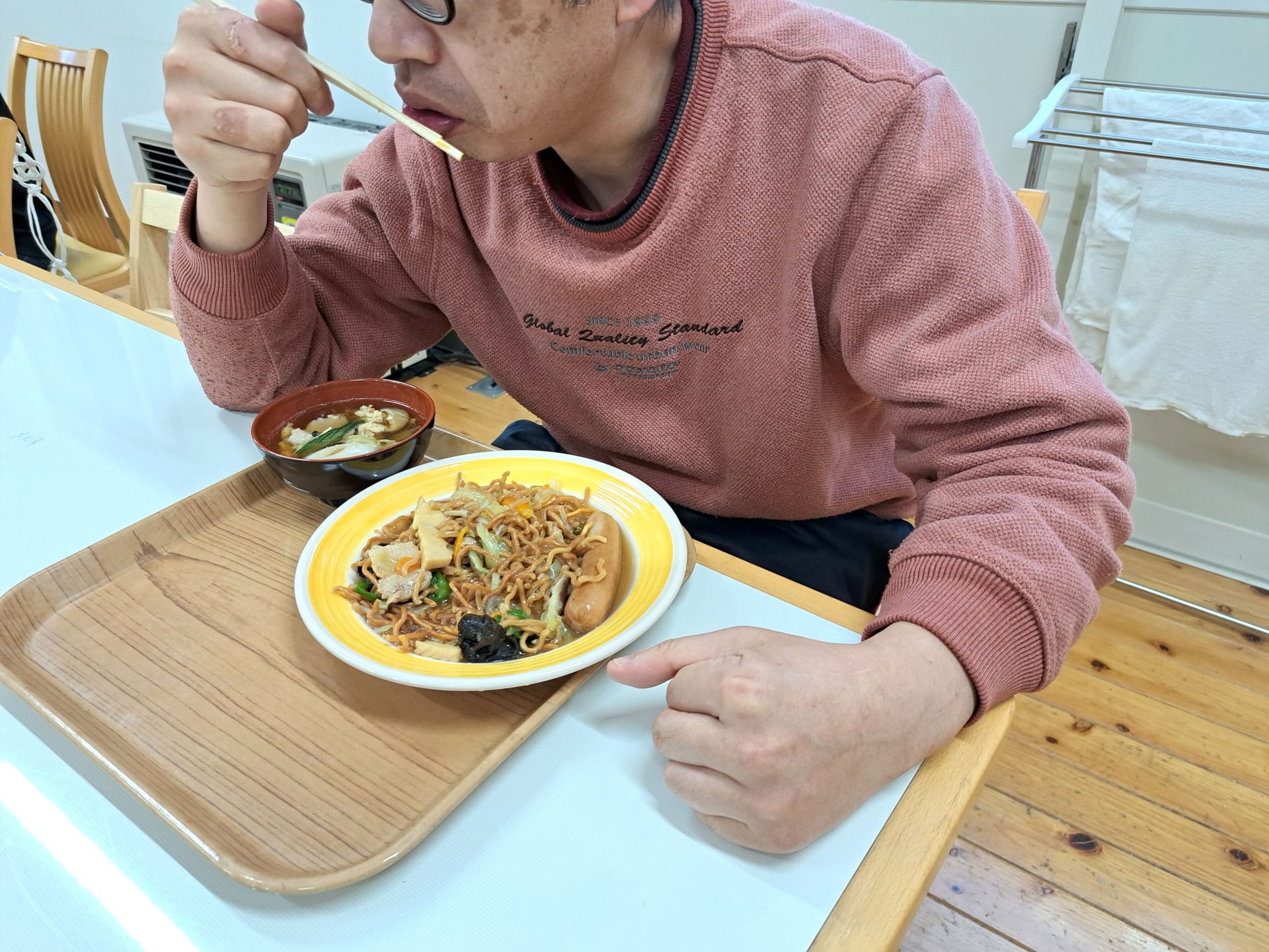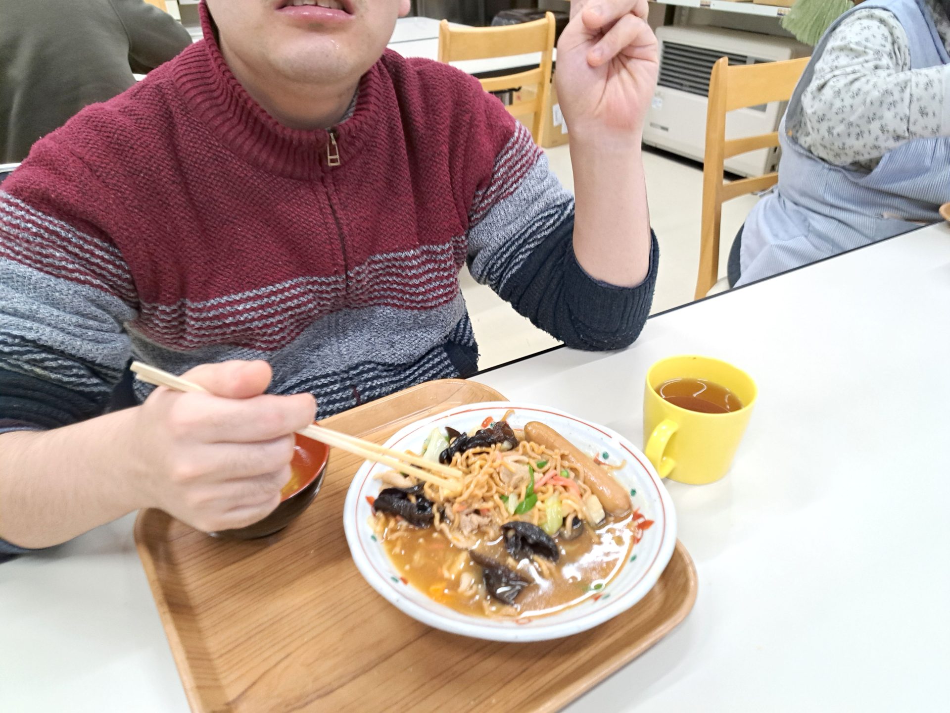 今日はみんな大好き揚げ焼きそば!きくらげ、キャベツ、しいたけ~具沢山です!