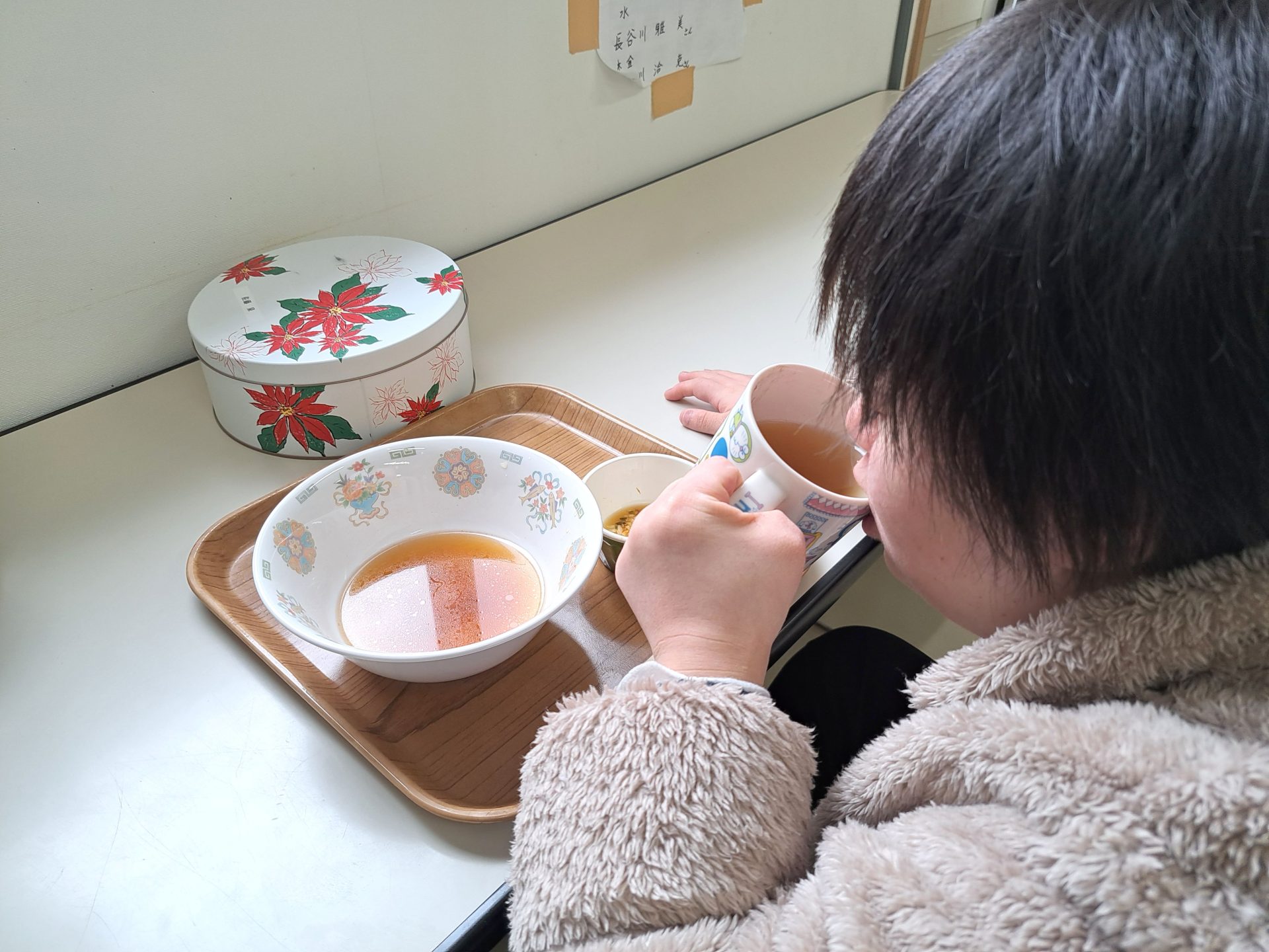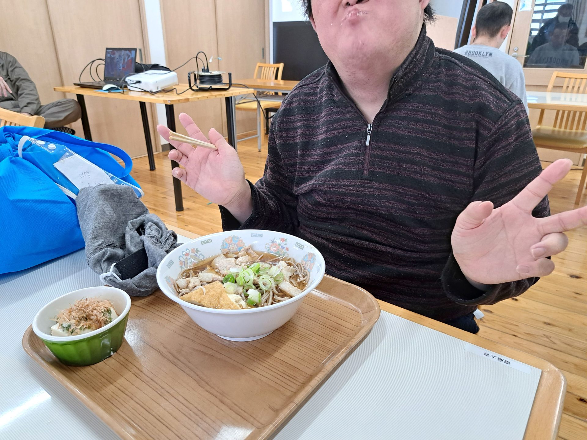 お蕎麦を食べながら、プロジェクターで「とてけろ」の映像を楽しみました~(´▽`*)