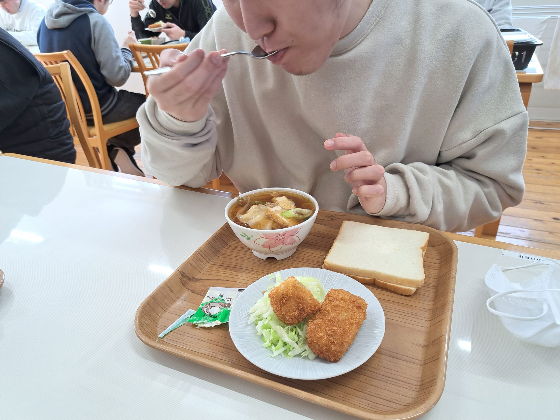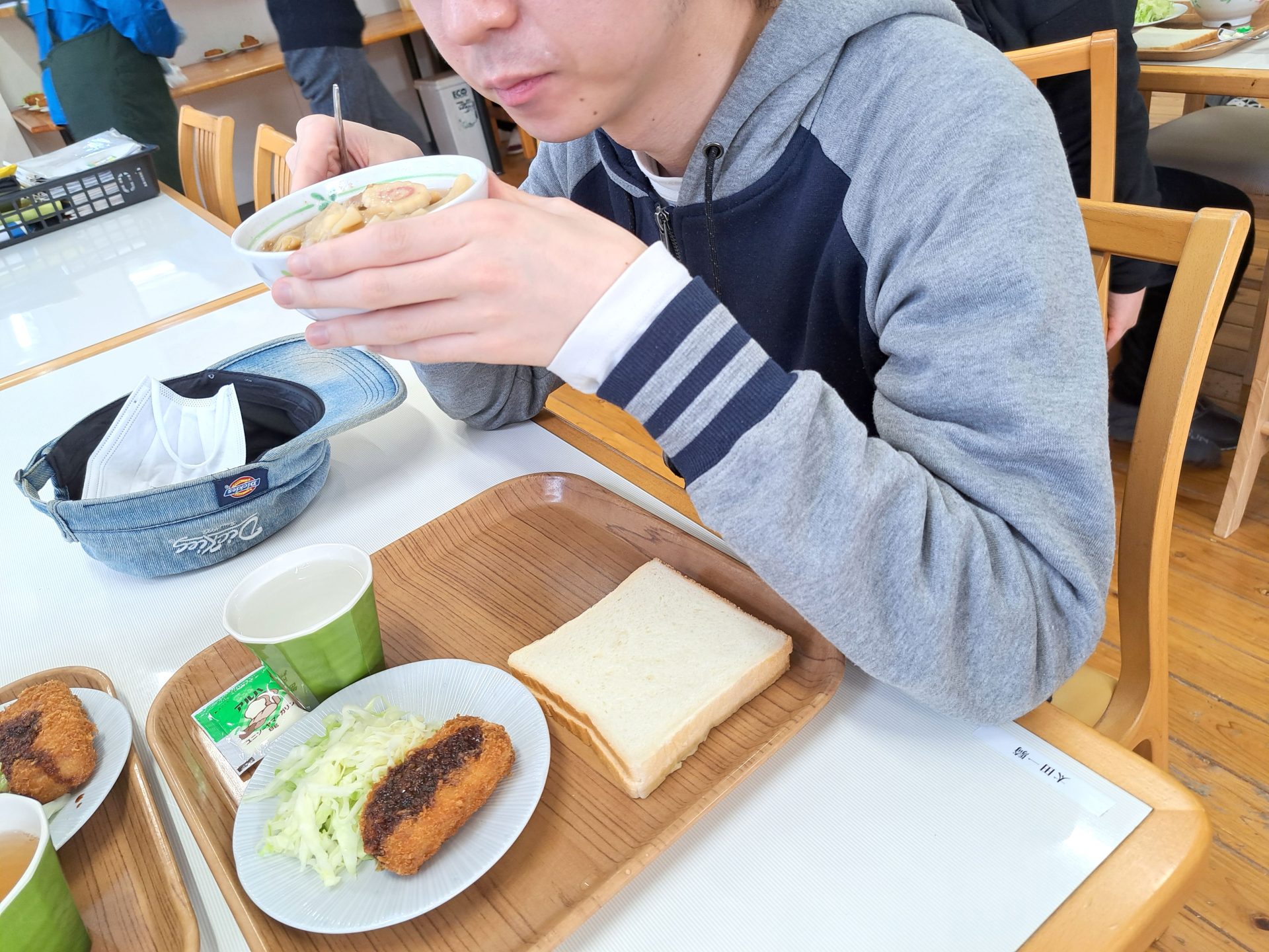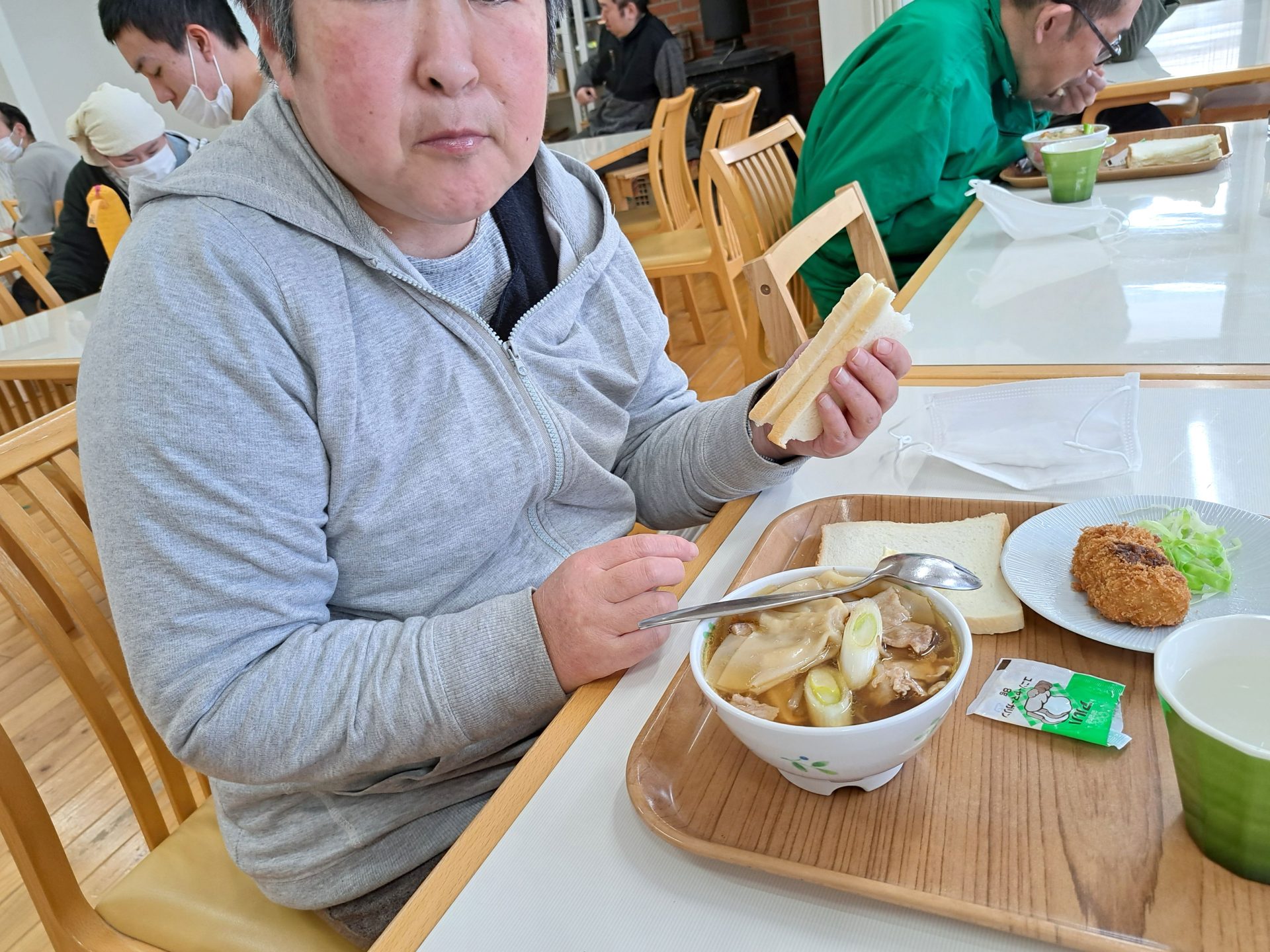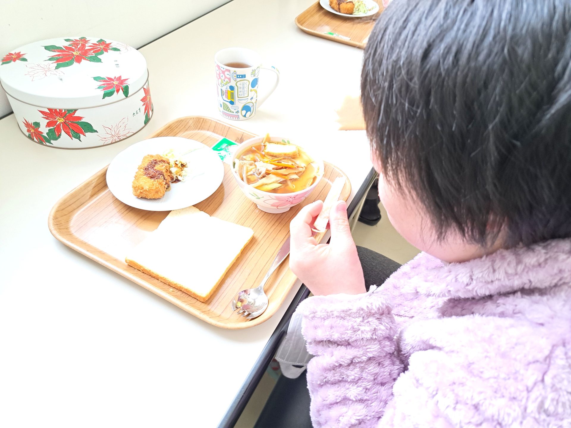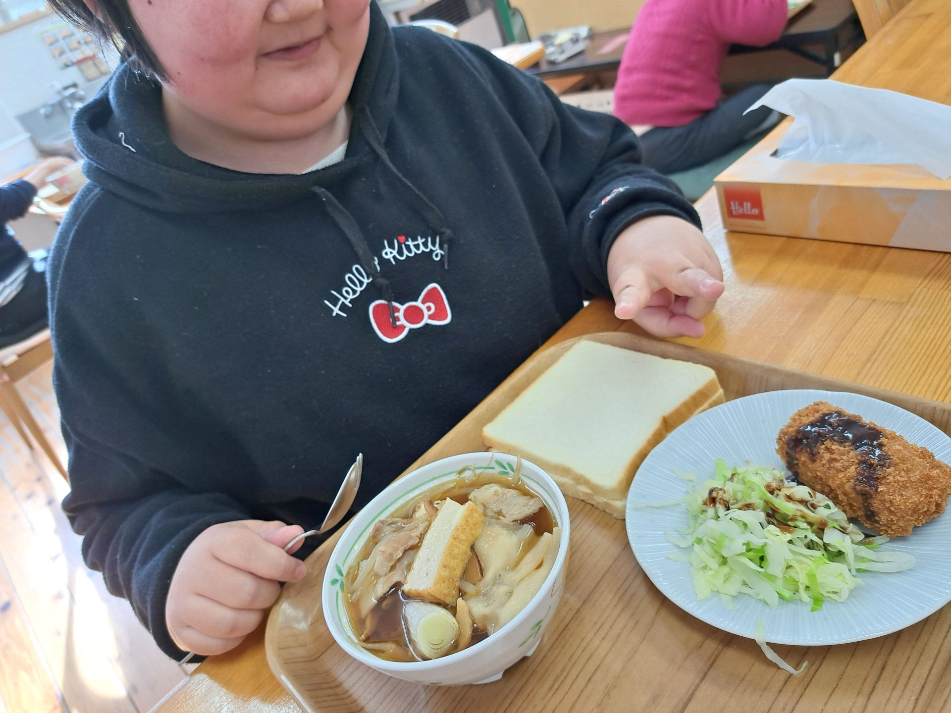 今日は給食は~?「パンだよの~?あとワンタンスープ?」( *´艸`)