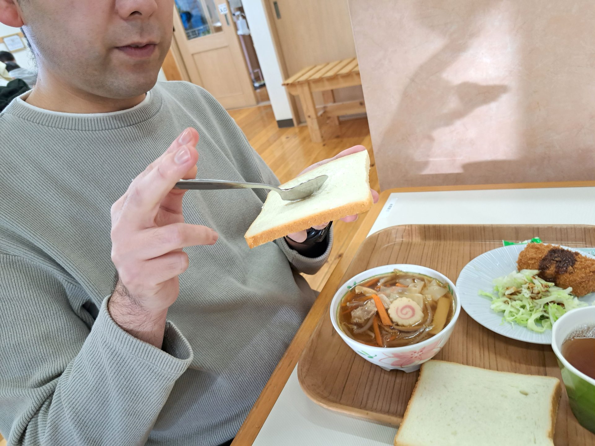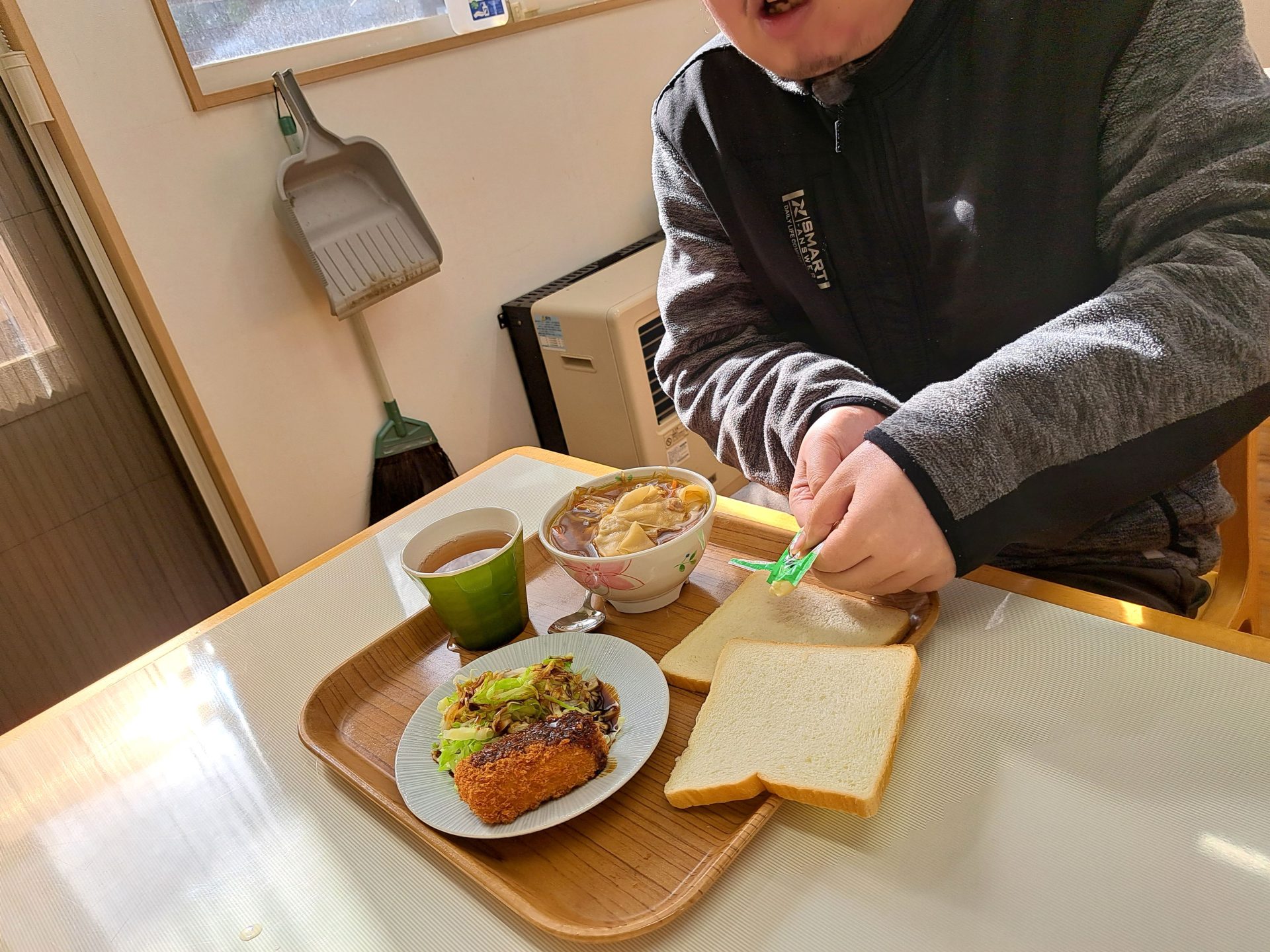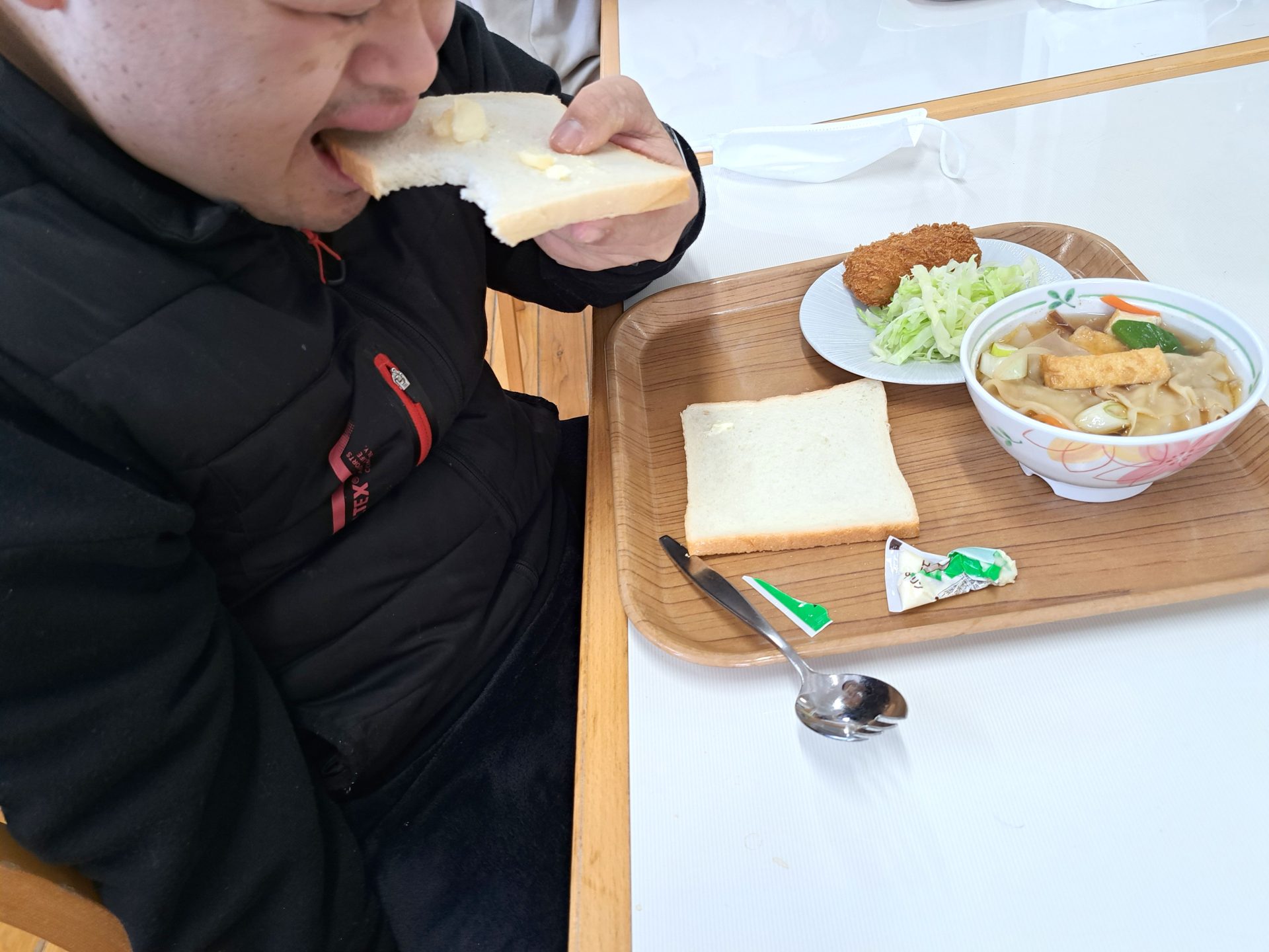 - 「朝もパンだけど、食パンだから違うもんね~♪」