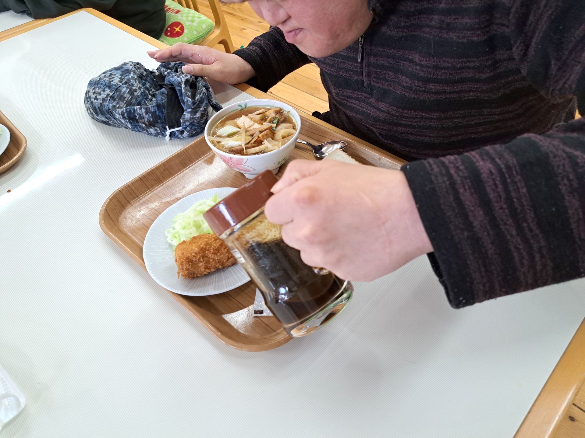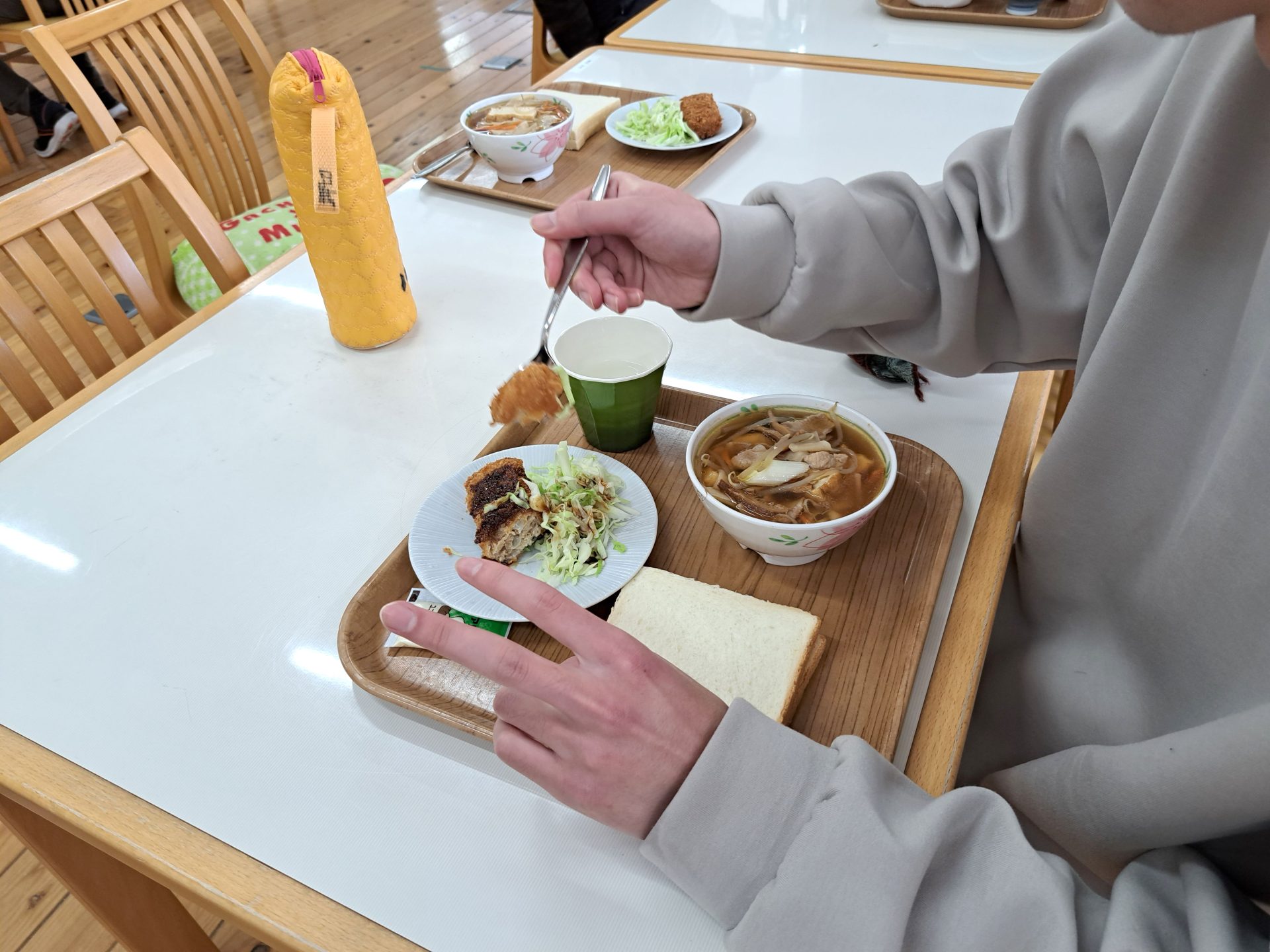 - 「ご飯と鍋です!この前は寒タラ汁でした!」