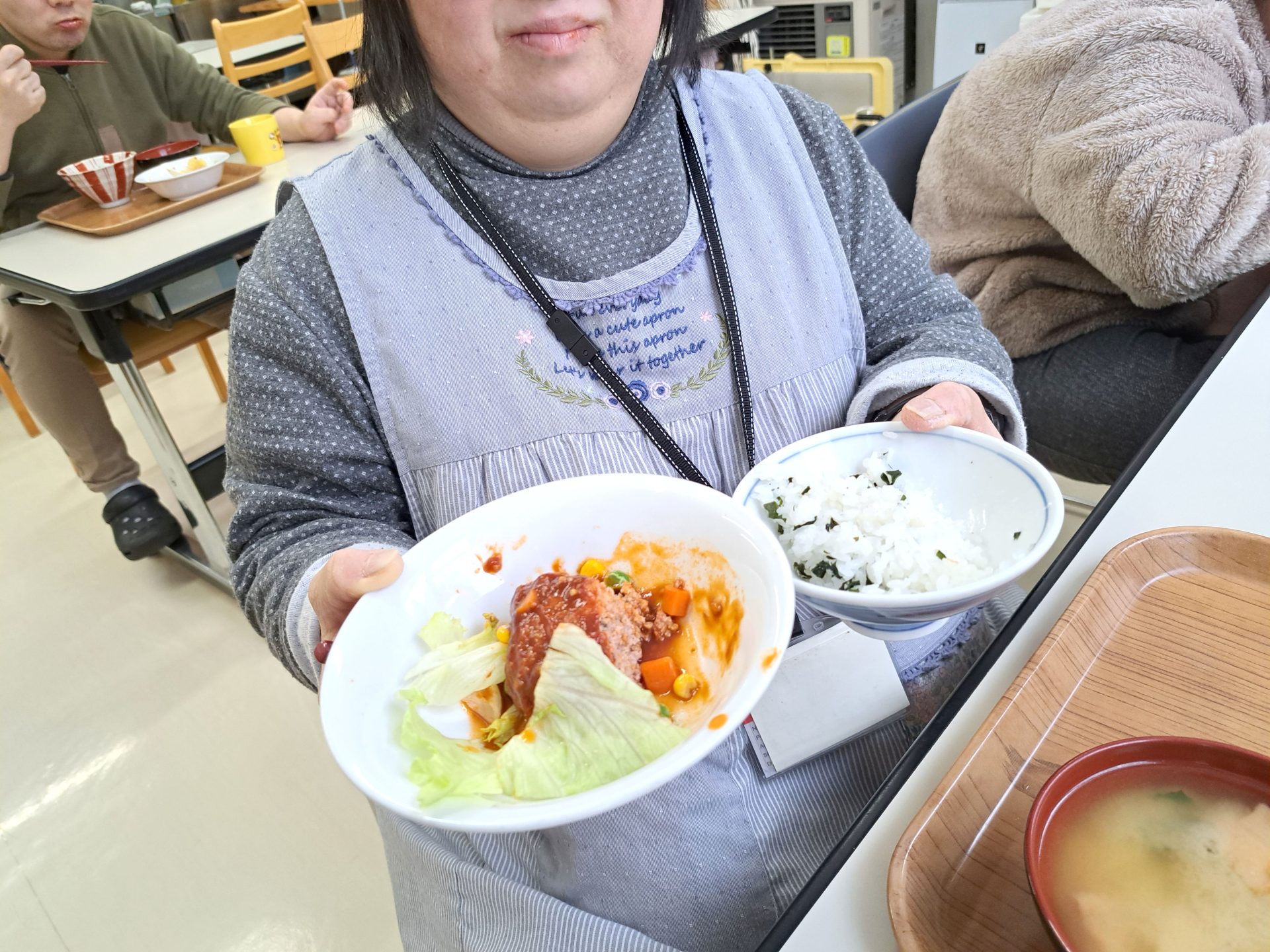 メニューに「ワカメご飯」と書いてあったのですが、配膳の時まで忘れていて白いご飯を盛り始めたら、それに気づいた利用者さんが「…わかめごはんですぞ…」とつぶやいたのが聴こえて、ハッと我に返った職員~(笑)慌ててよそった分を回収してわかめごはんの素を混ぜたそうな~( *´艸`)