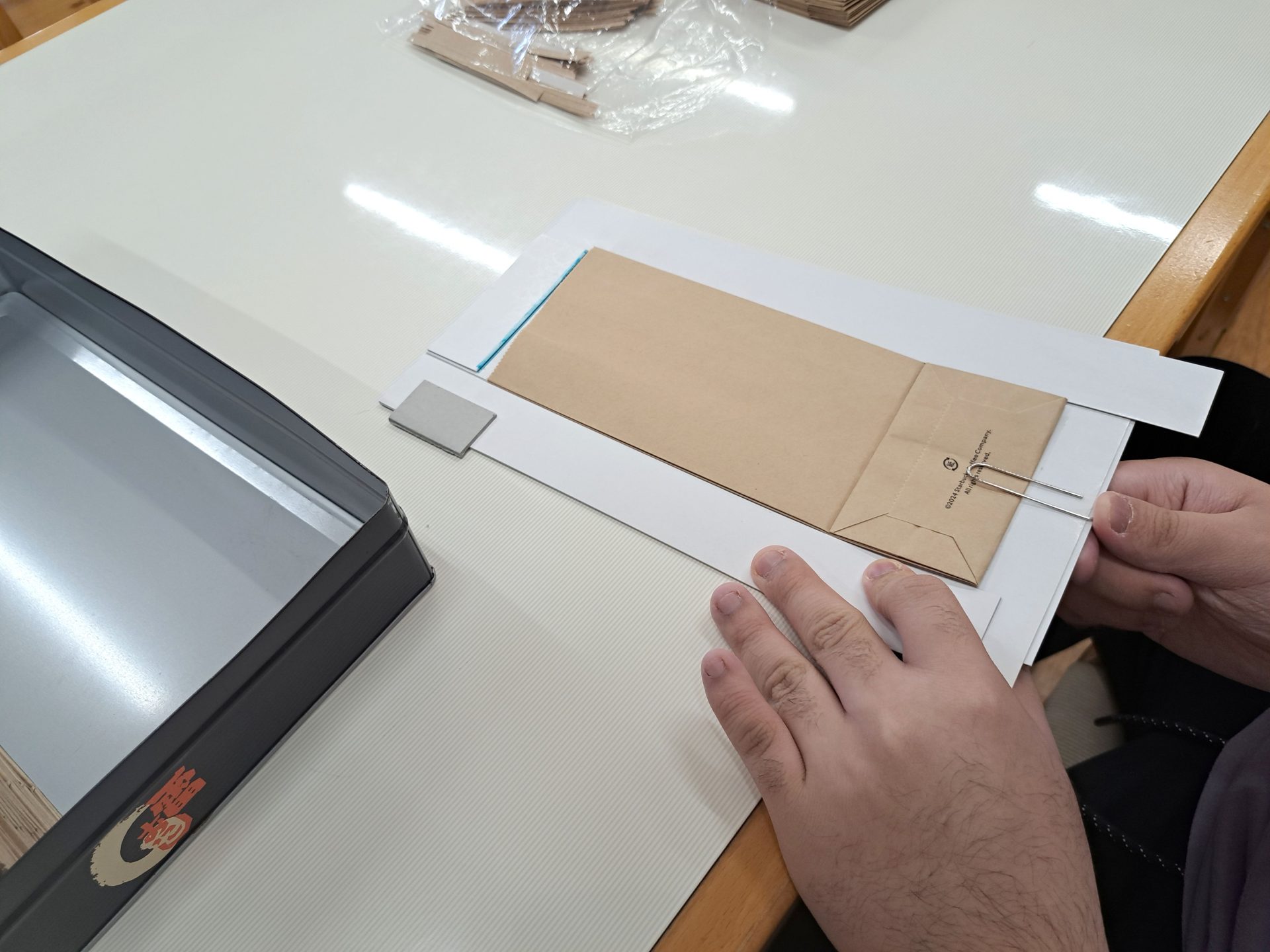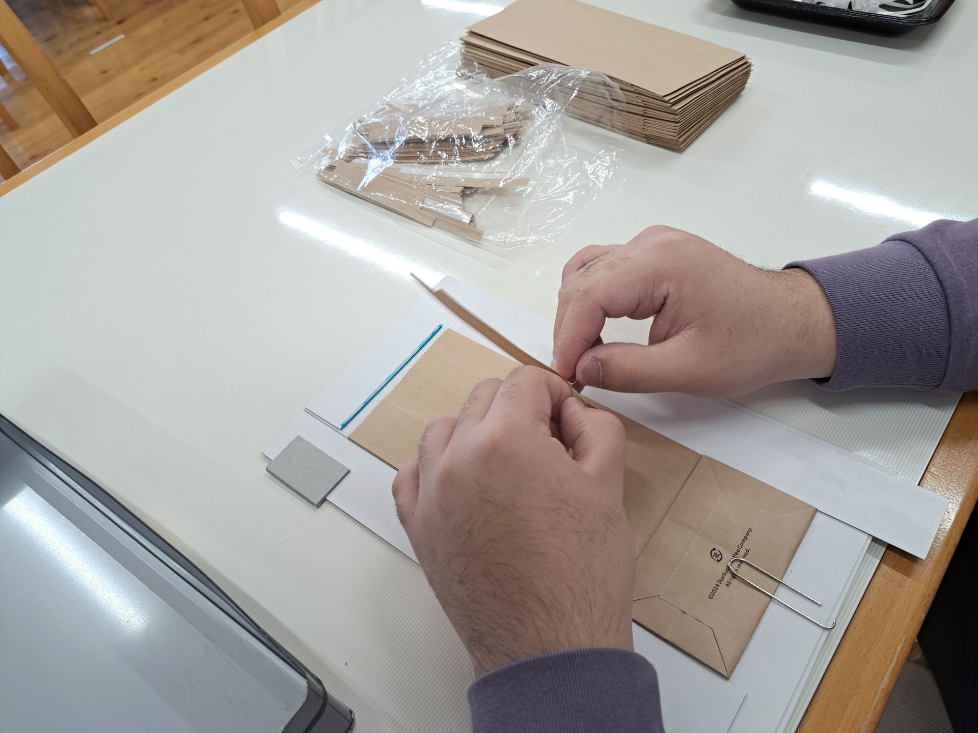 - 袋を治具にクリップで留めて~