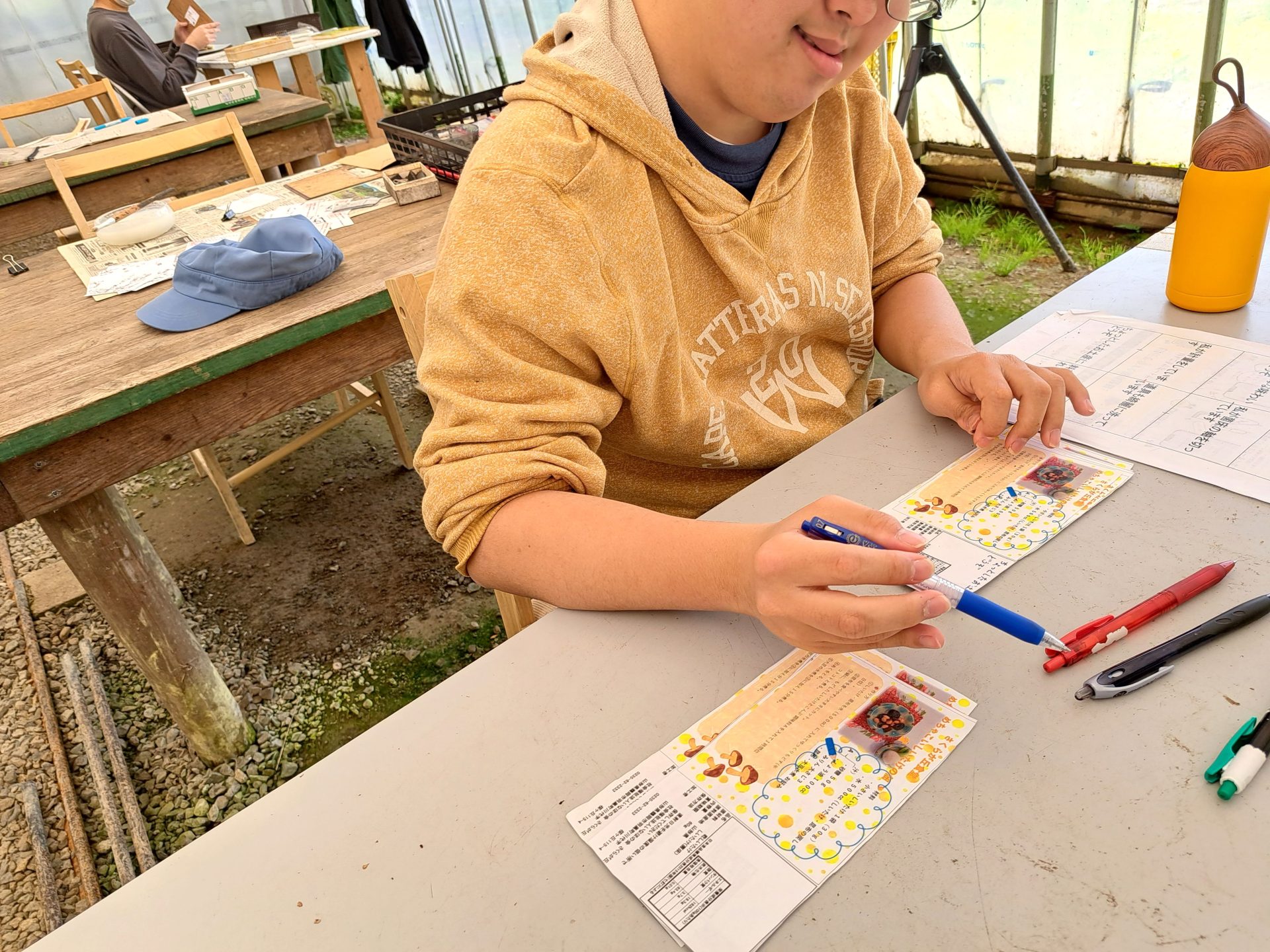 ハウスに向かいまーす!空き缶をつぶす元気な音が~