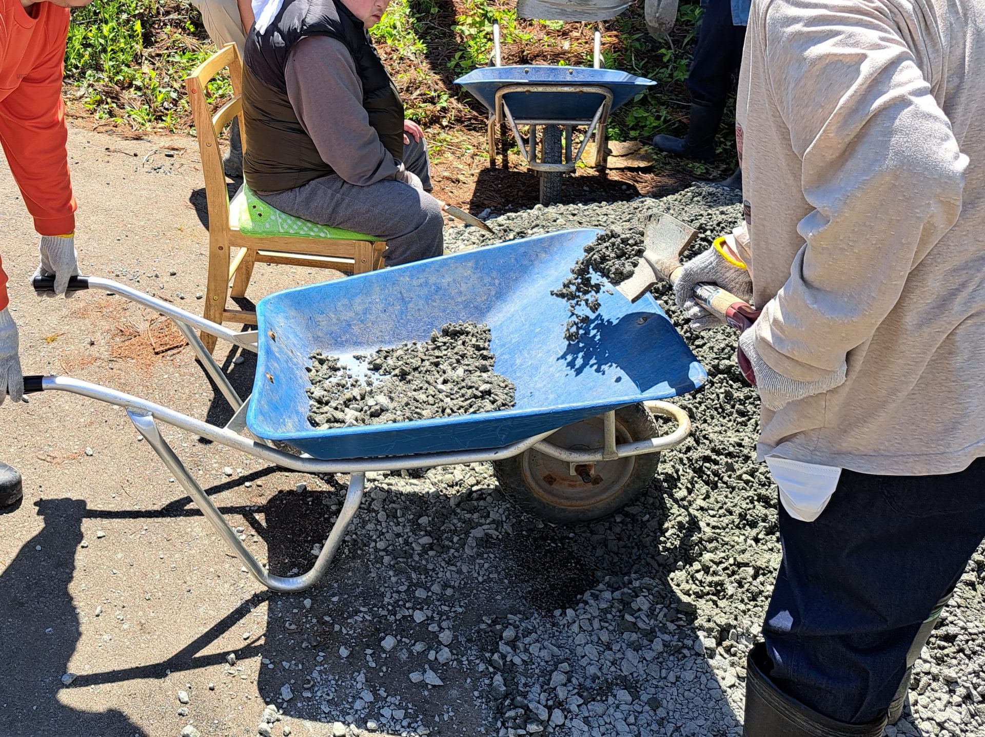 一輪車に砂利を乗せますよ~!