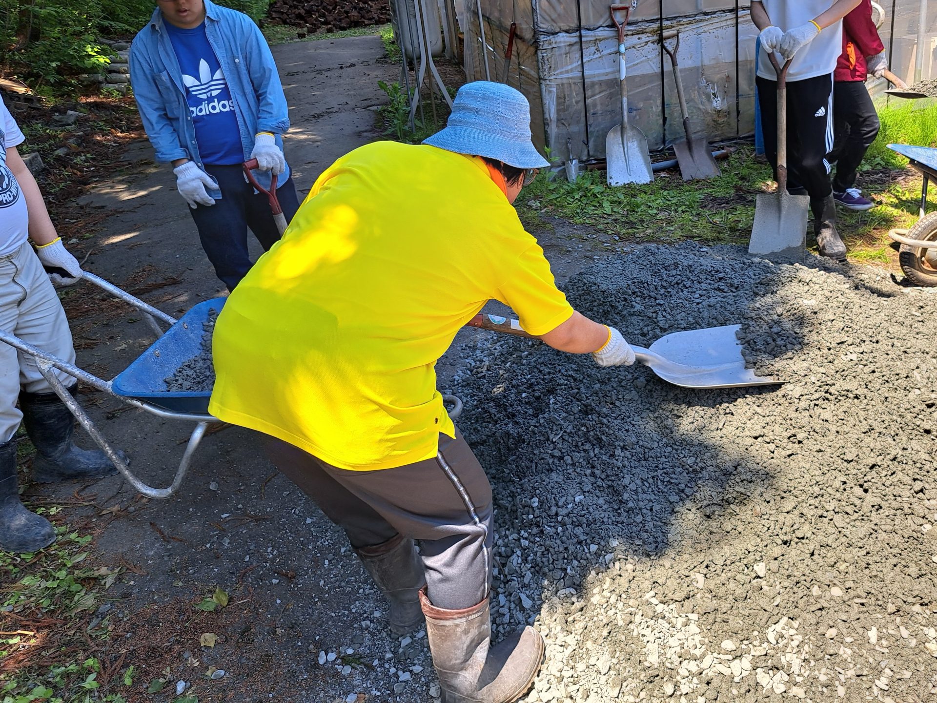 農芸班は今朝ハウス内に敷く砂利が運び込まれました~♪