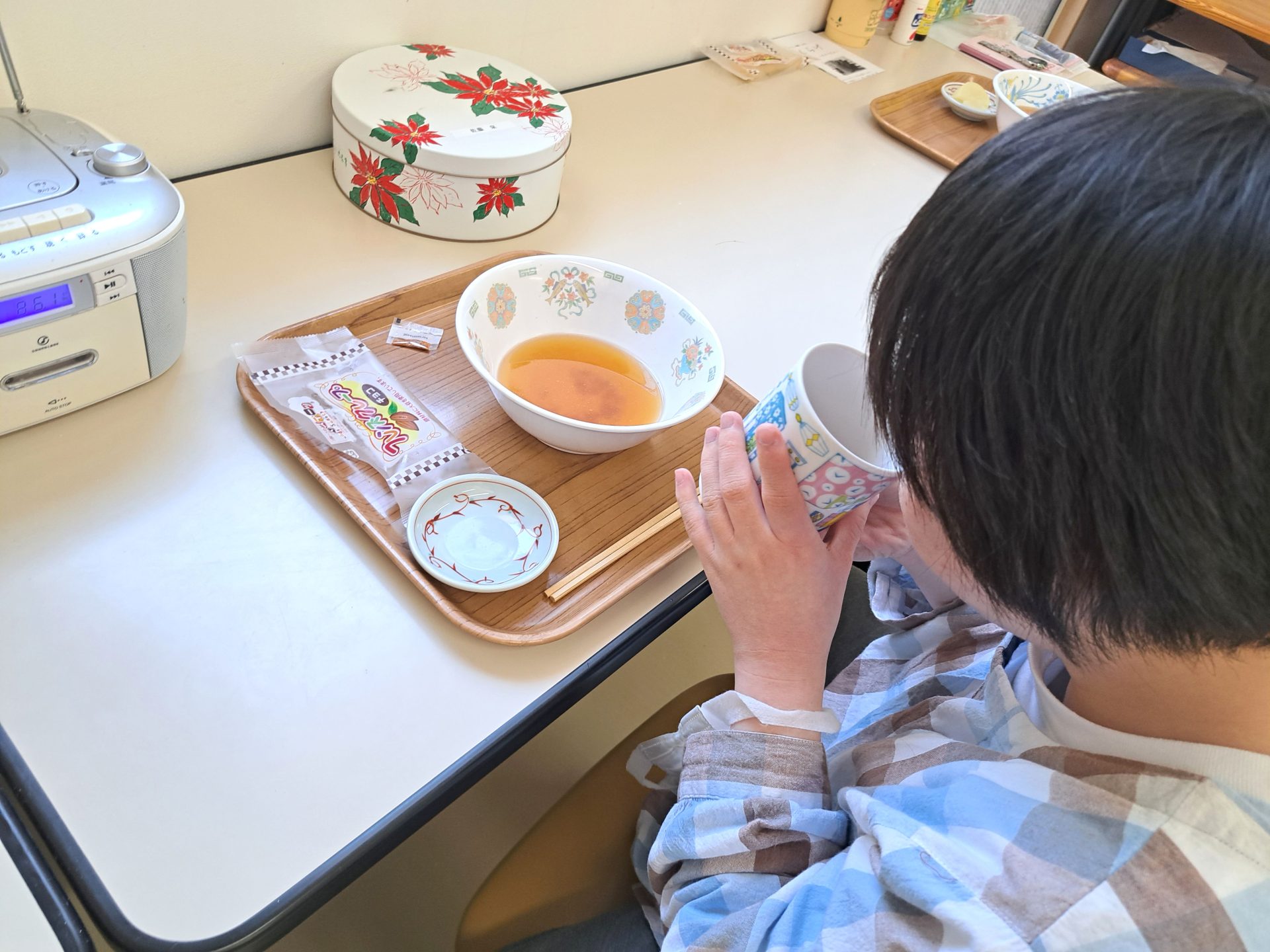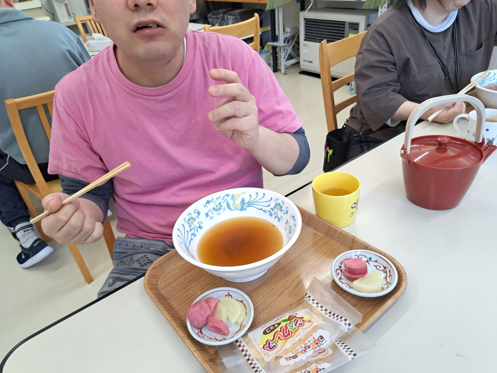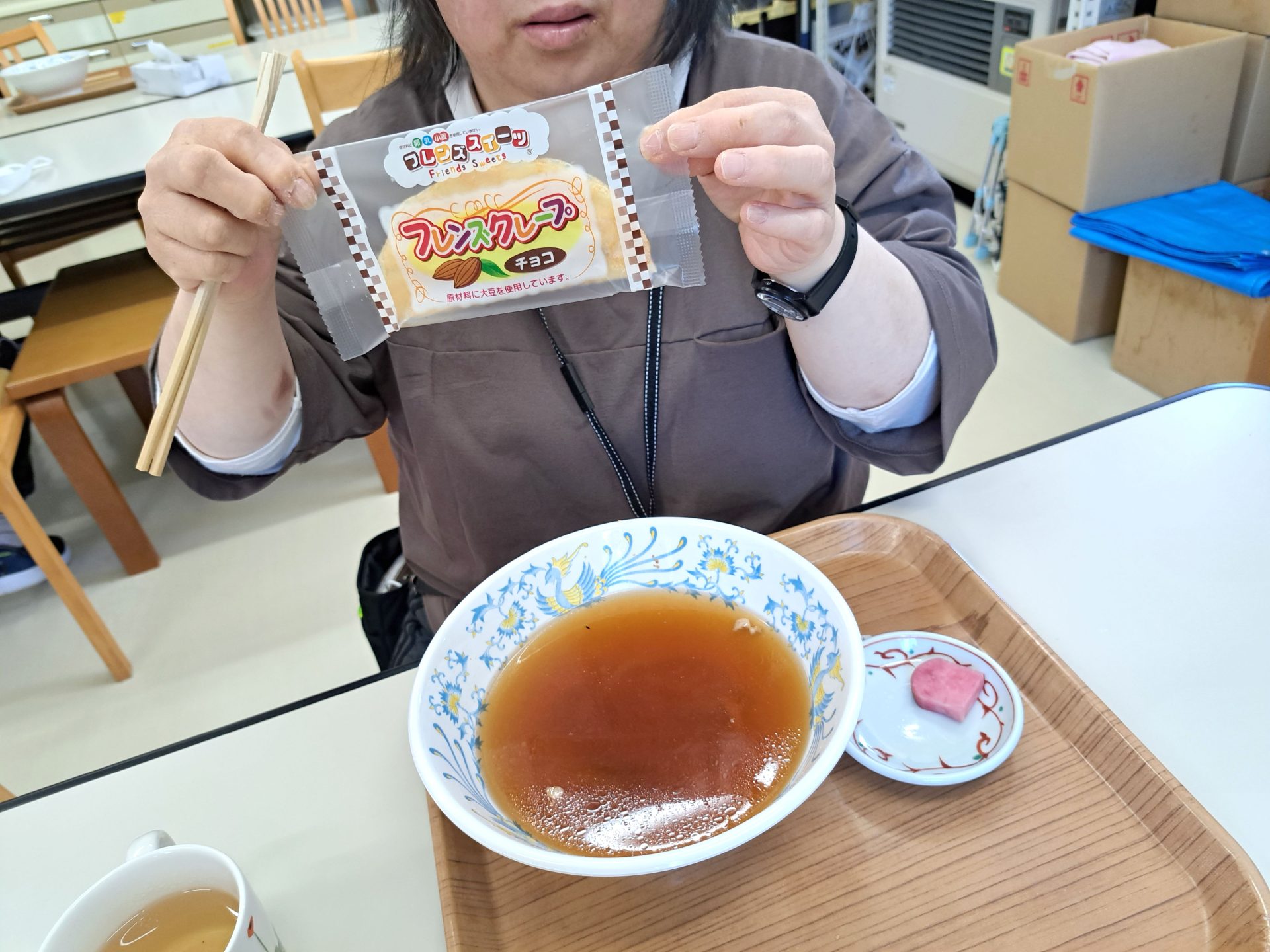 ただいま~と帰ると玄関でいつもの利用者さんがお出迎え~「お帰り~」