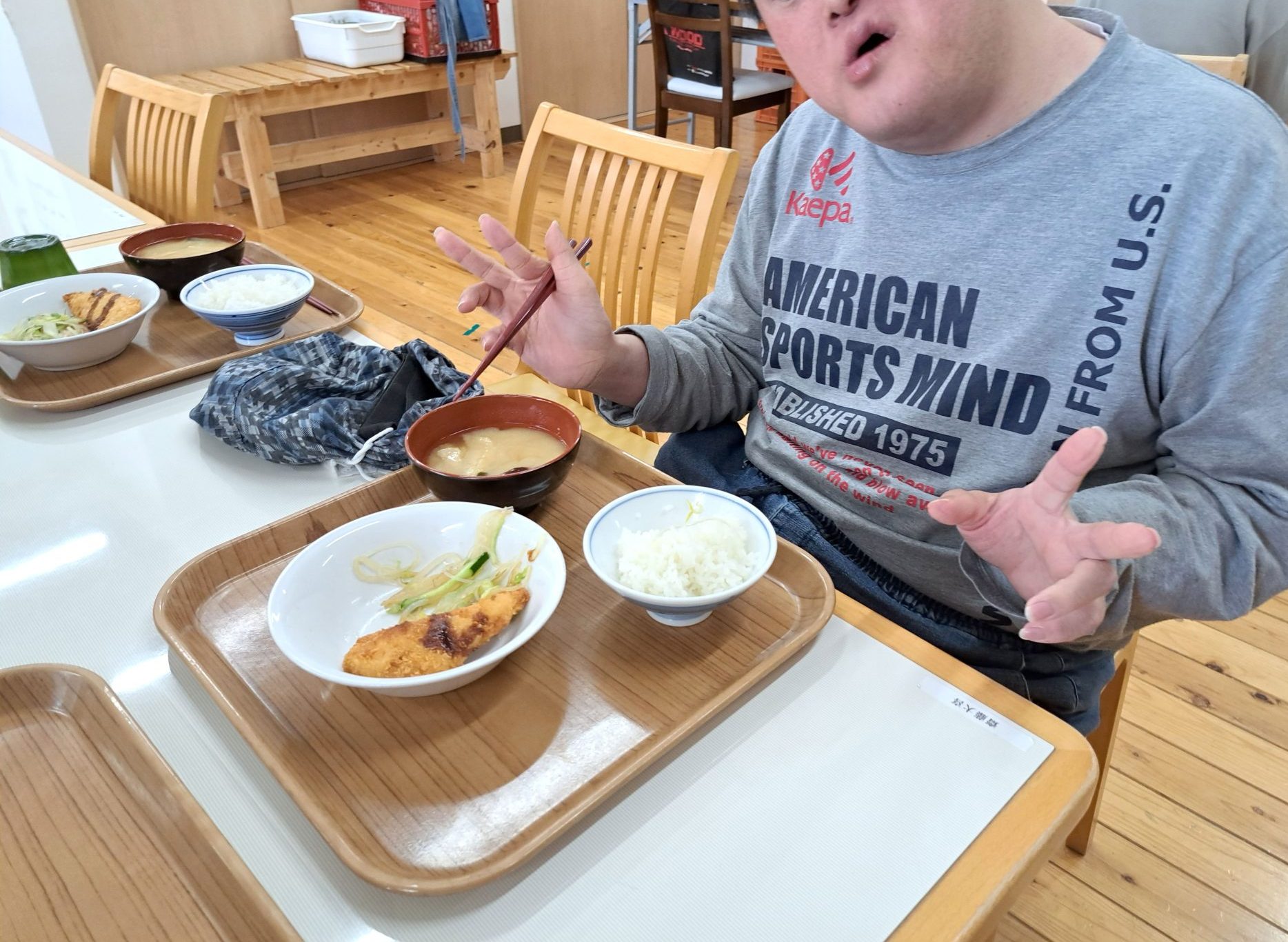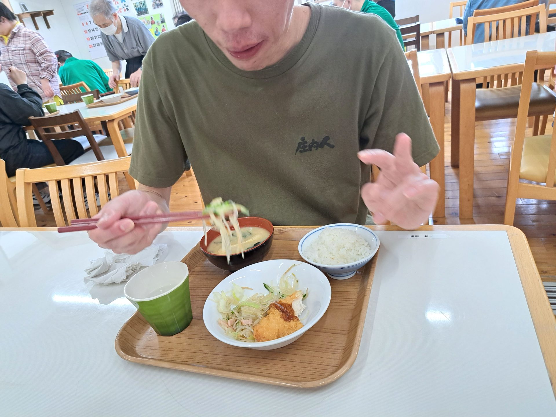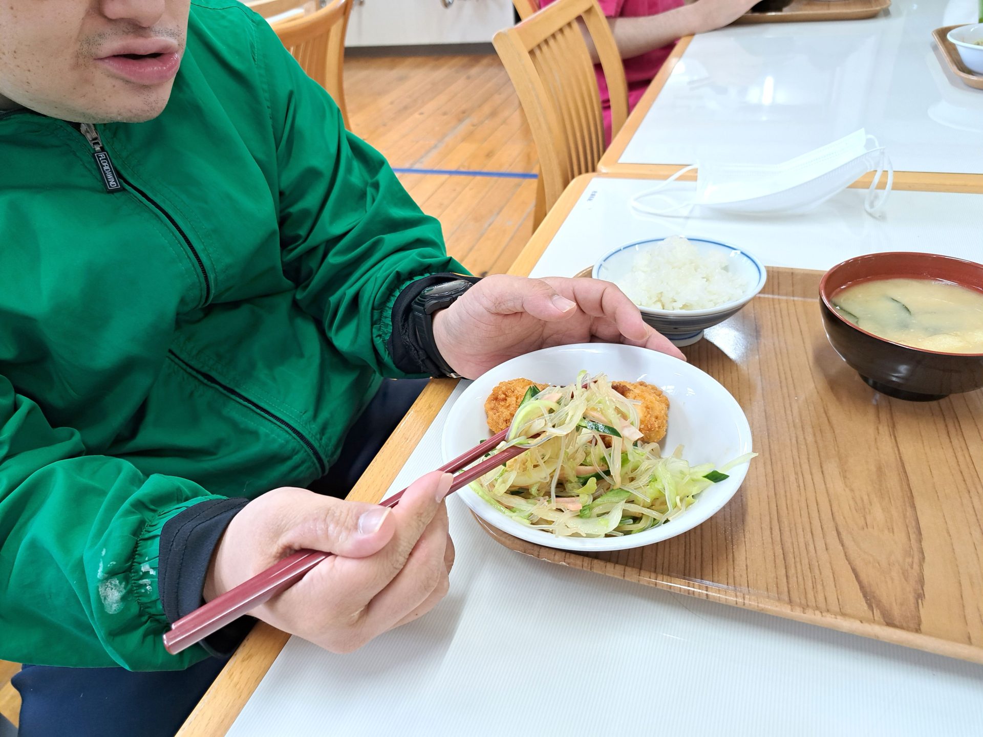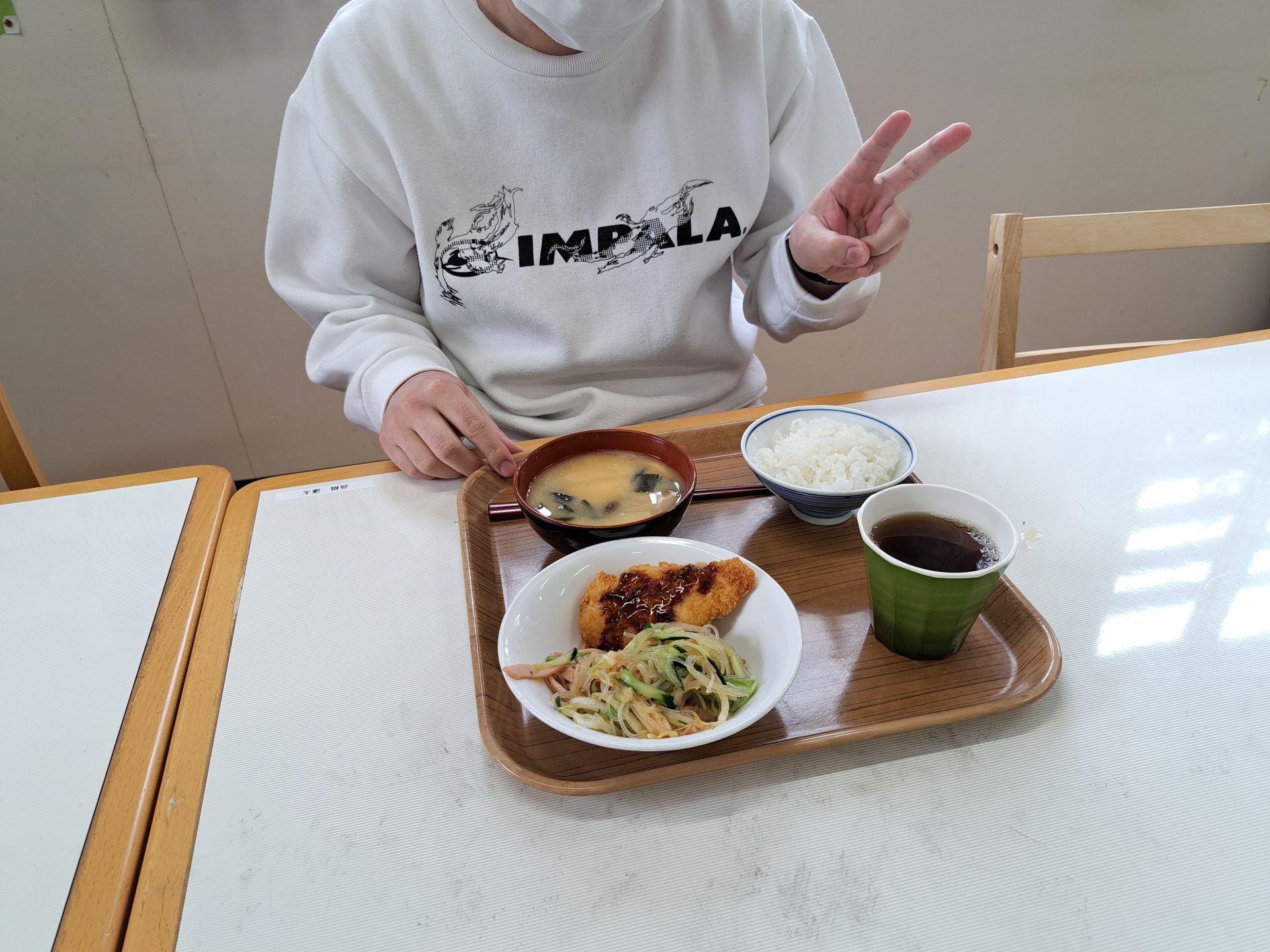 実習生さんも美味しそうに食べてます~さくらが丘の給食えっぺけ~(´▽`*)