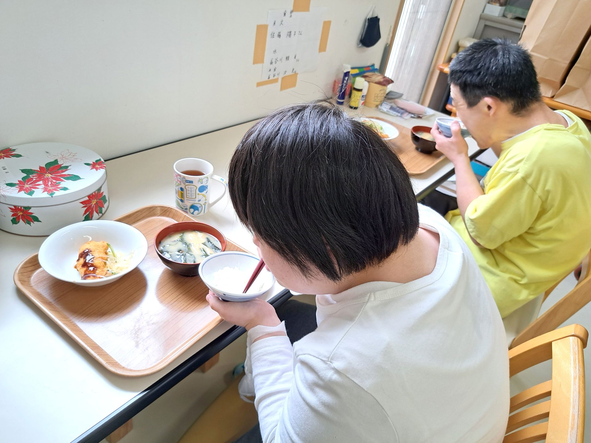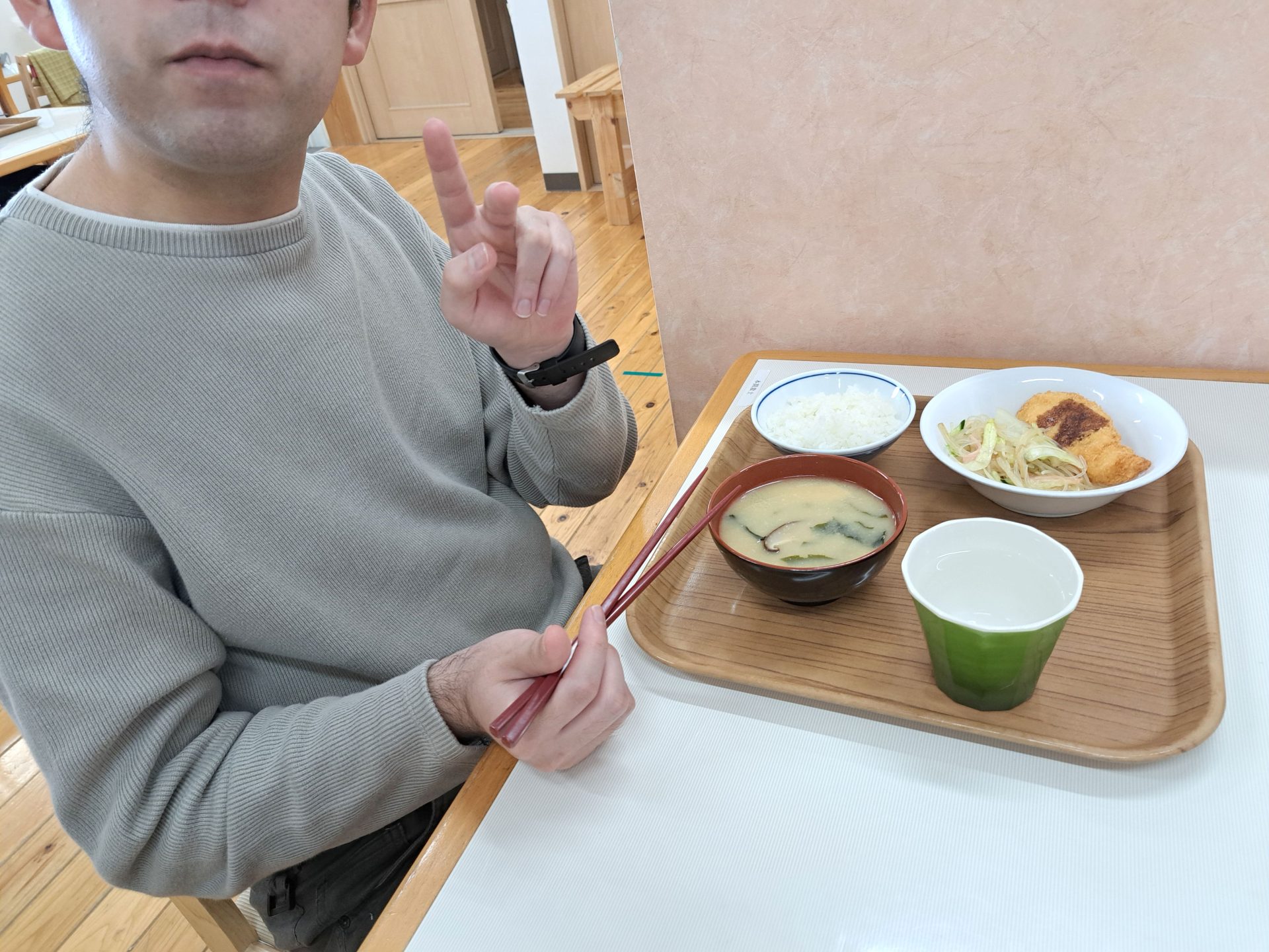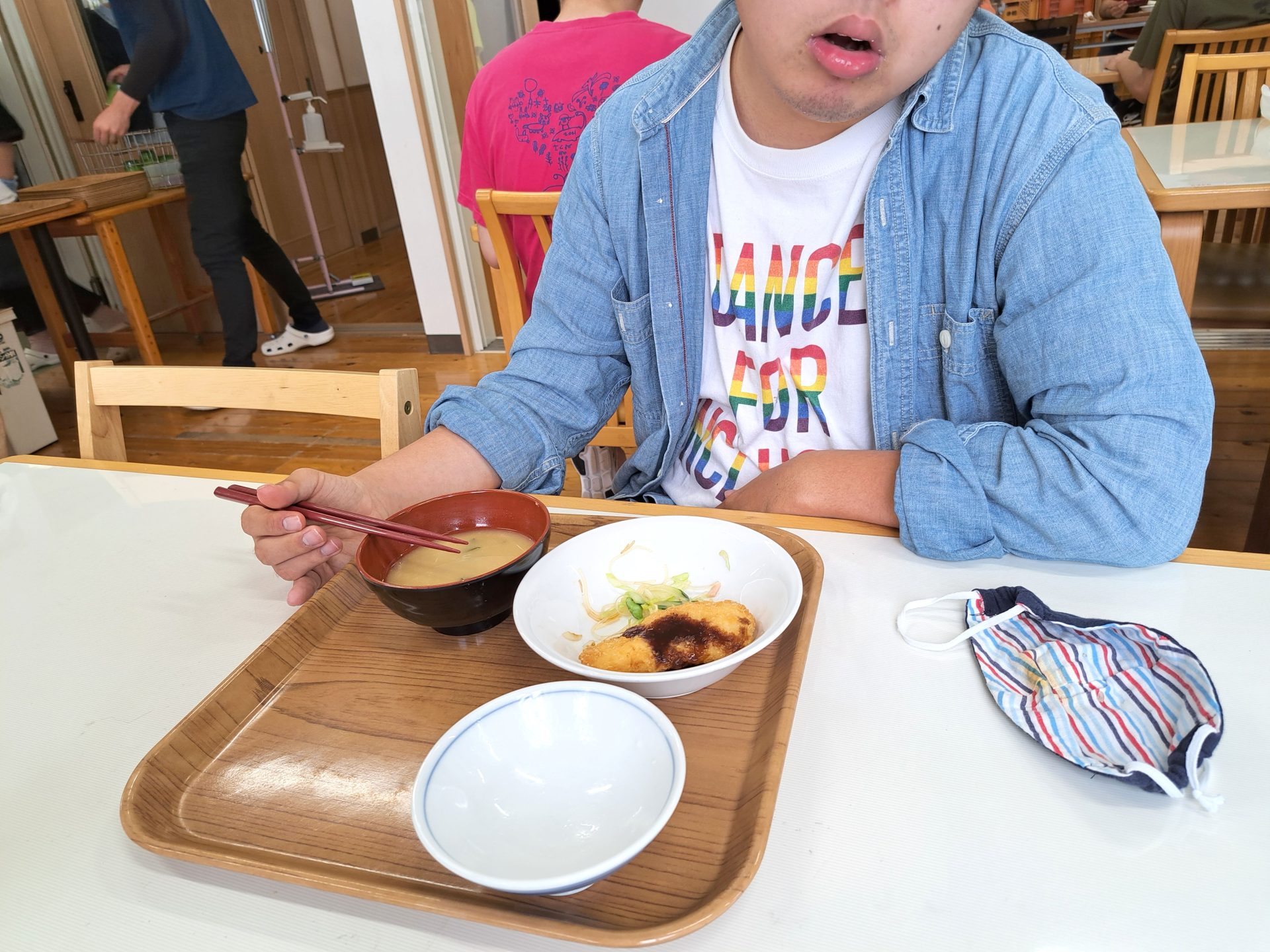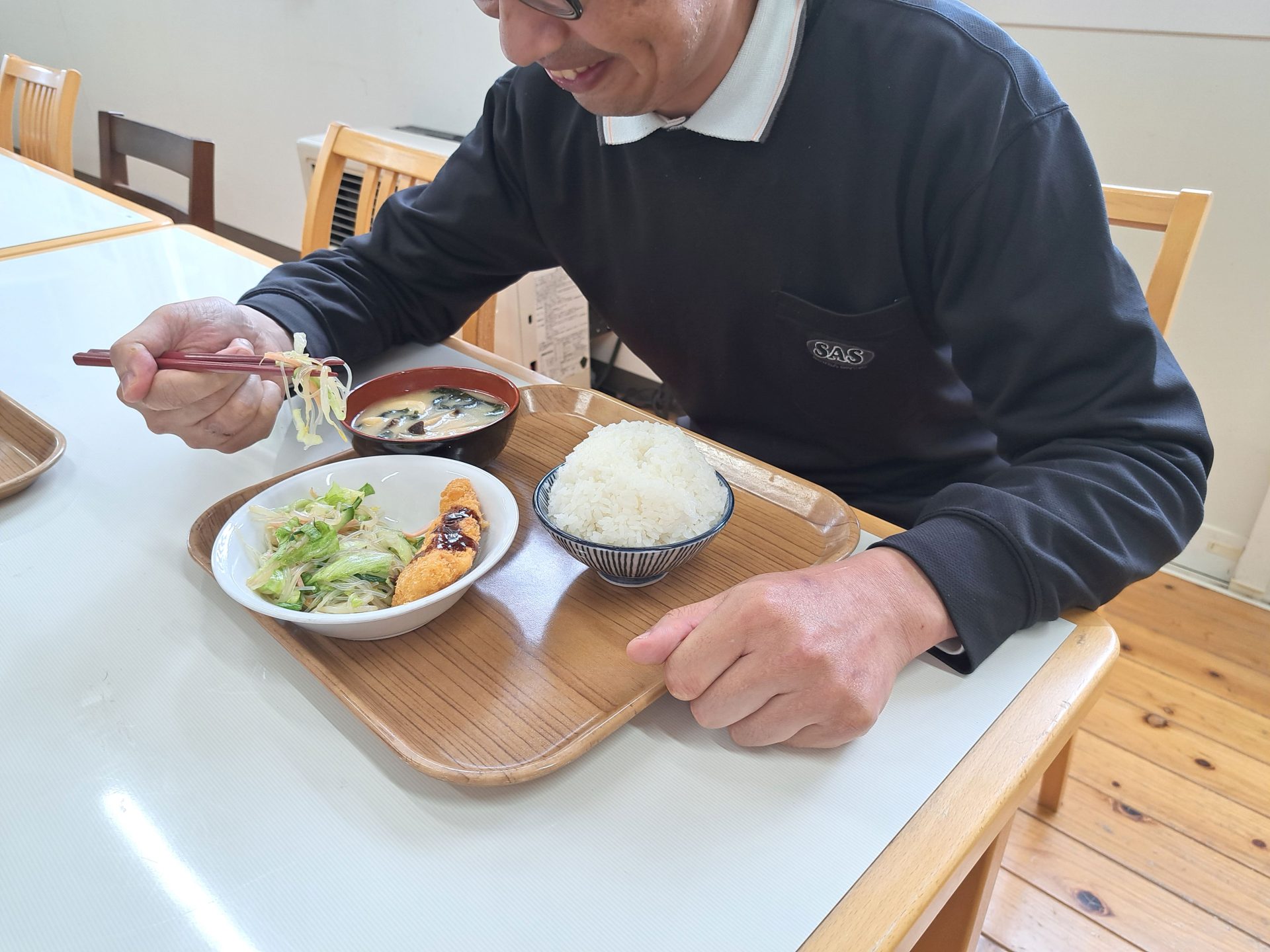 実習生さんも美味しそうに食べてます~さくらが丘の給食えっぺけ~(´▽`*)