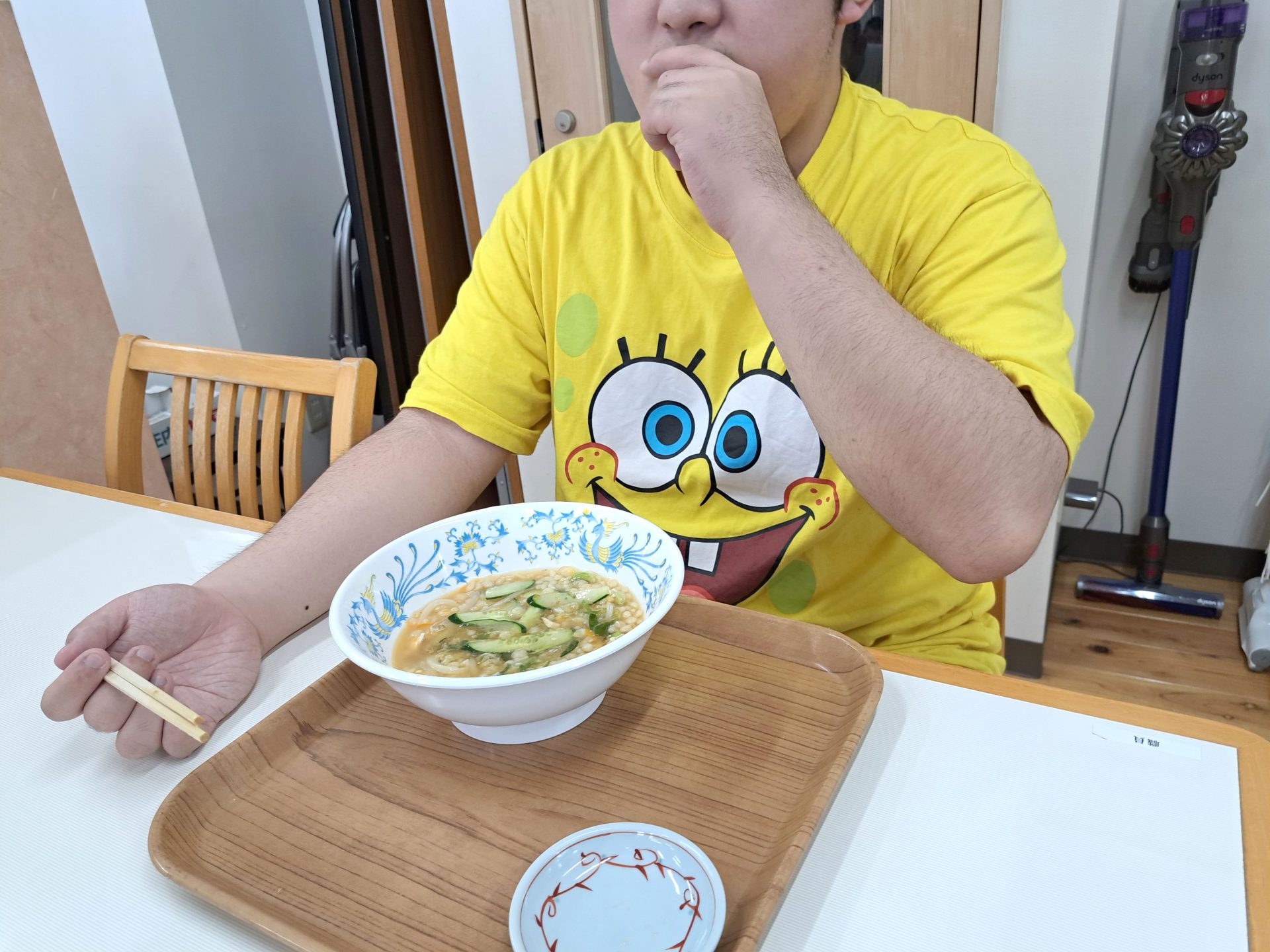 - 朝ごはんは~卵焼きとみそ汁とご飯です!