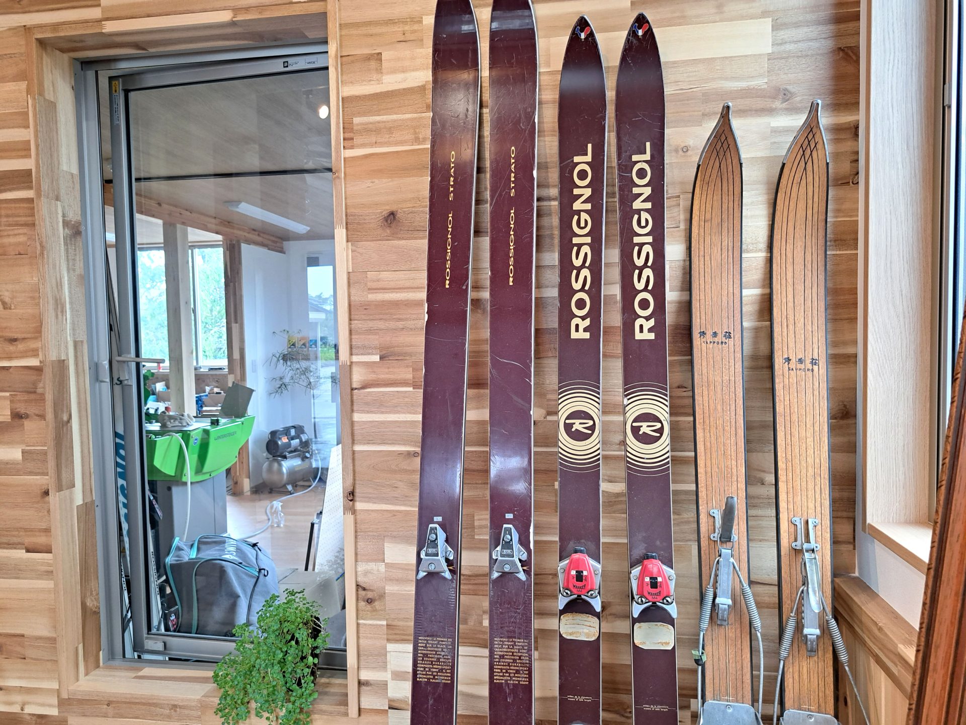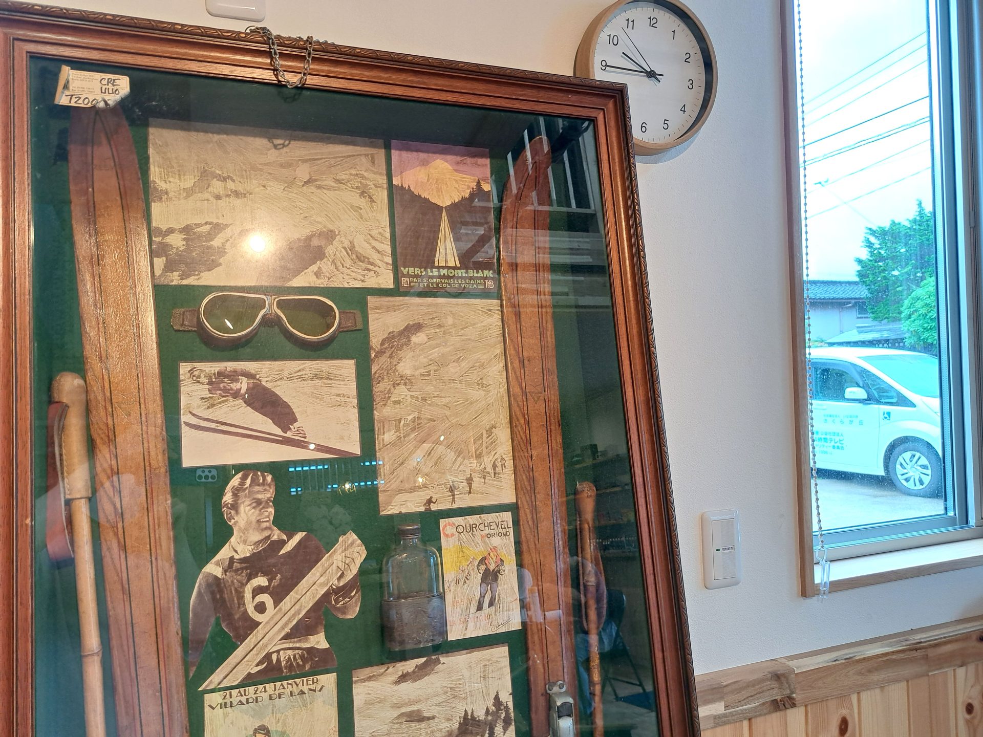 - ビンテージのスキーが飾られていて…