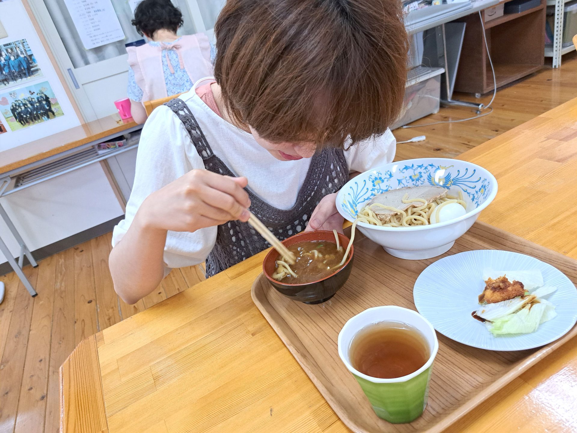 蒸し暑さも忘れる美味しいつけ麺!これで午後の全体掃除もがんばれるぞ♪ごちそうさまでした~(´▽`*)