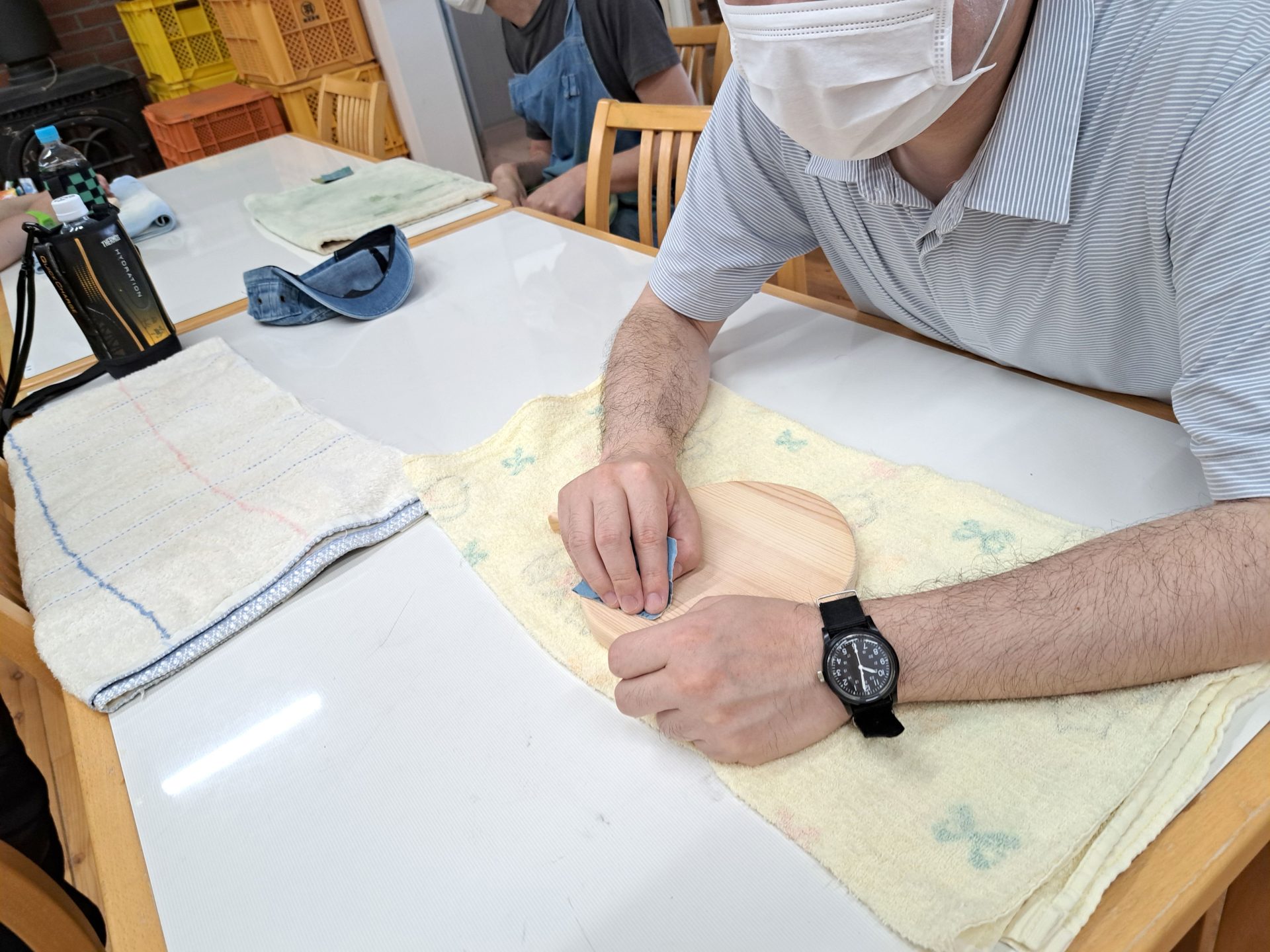 食堂ホールでは木工班がもくもくと作業中~(*^-^*)