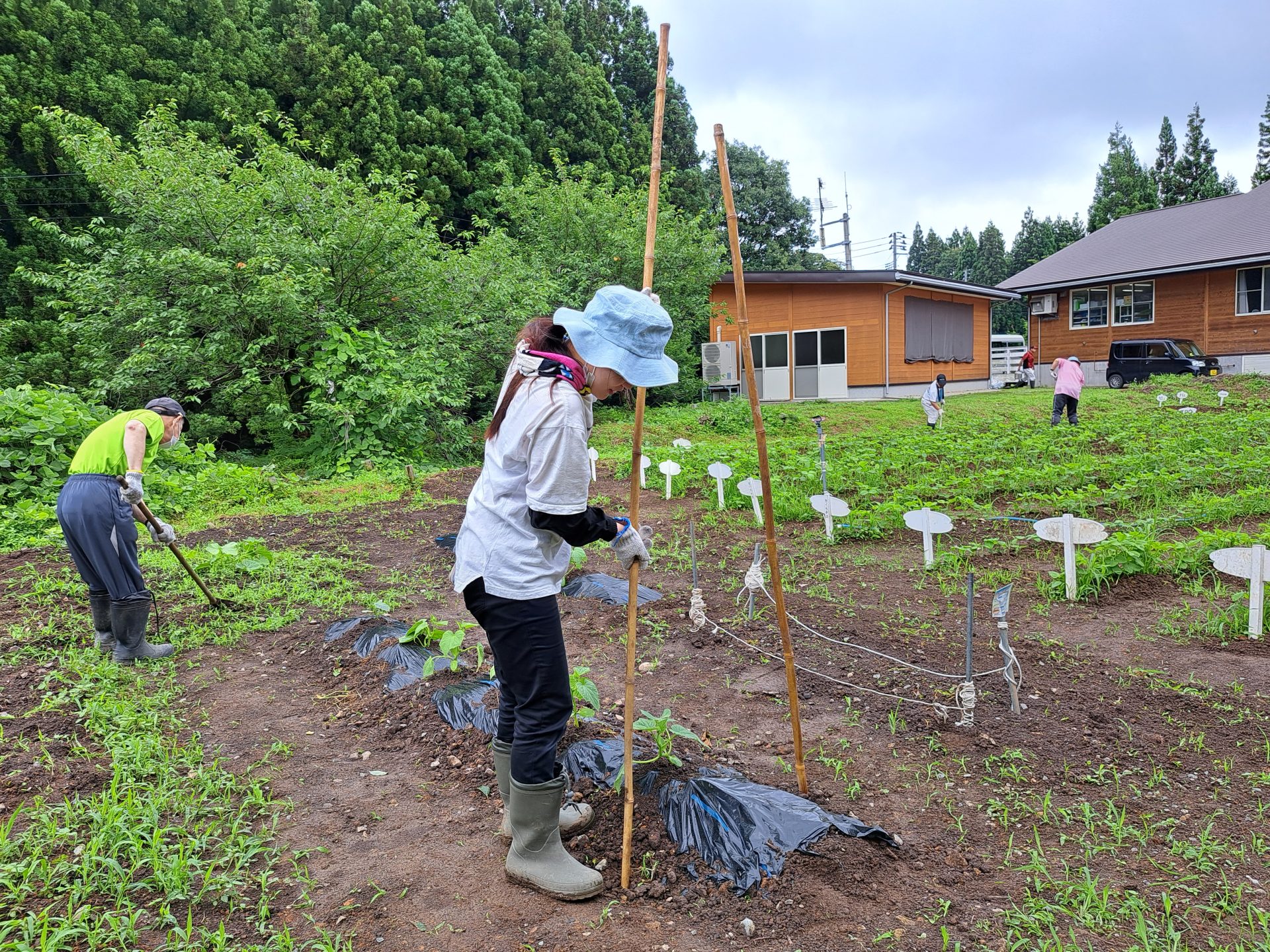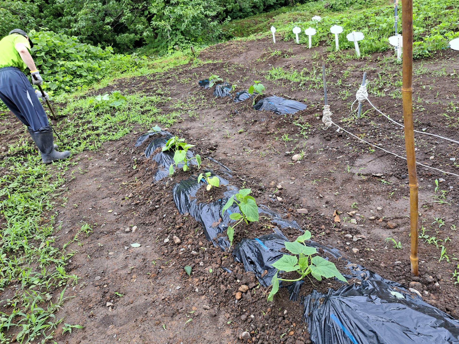 - 「キュウリに支柱立てるんです!ネットでメチャ調べました~!」