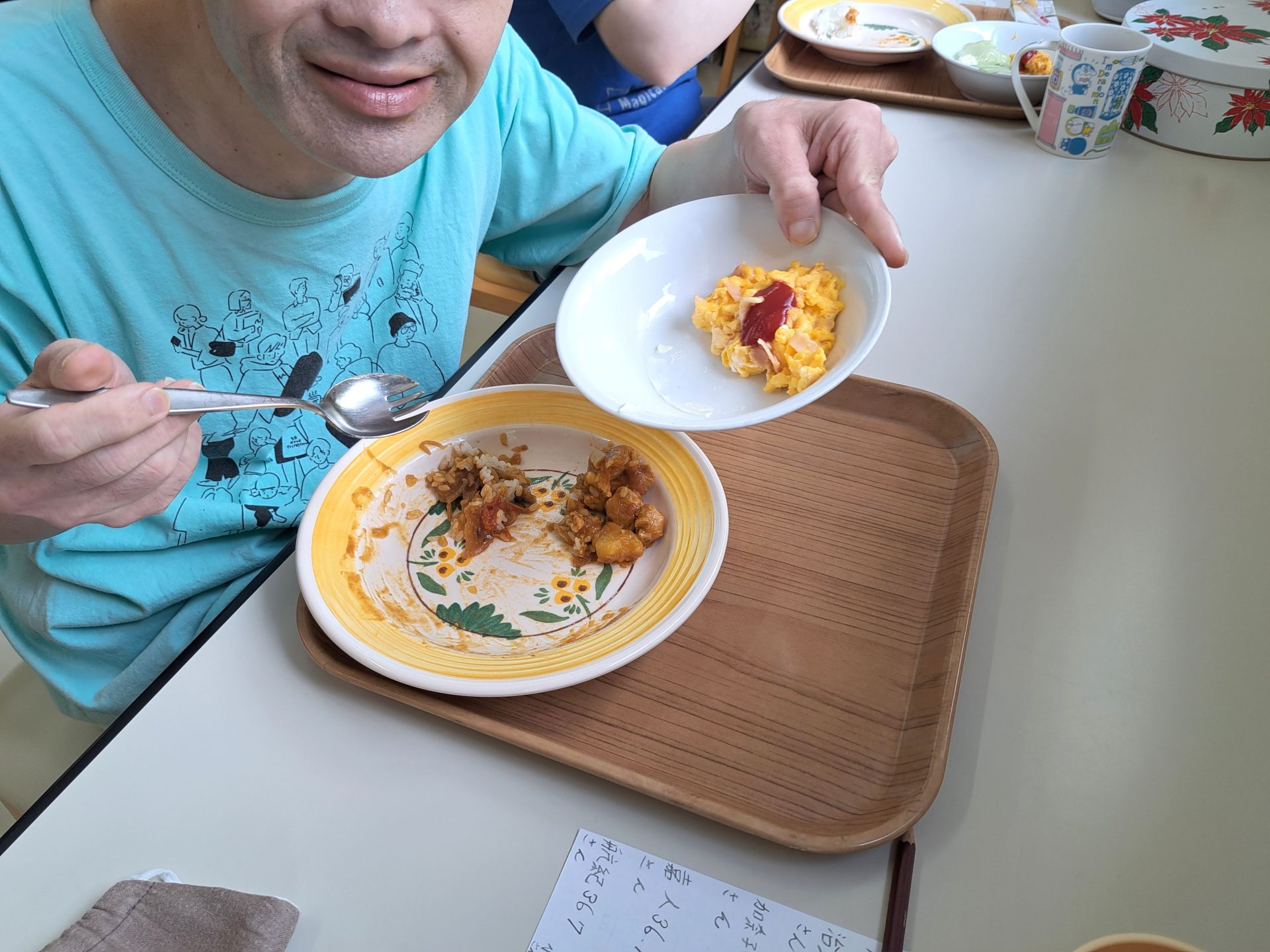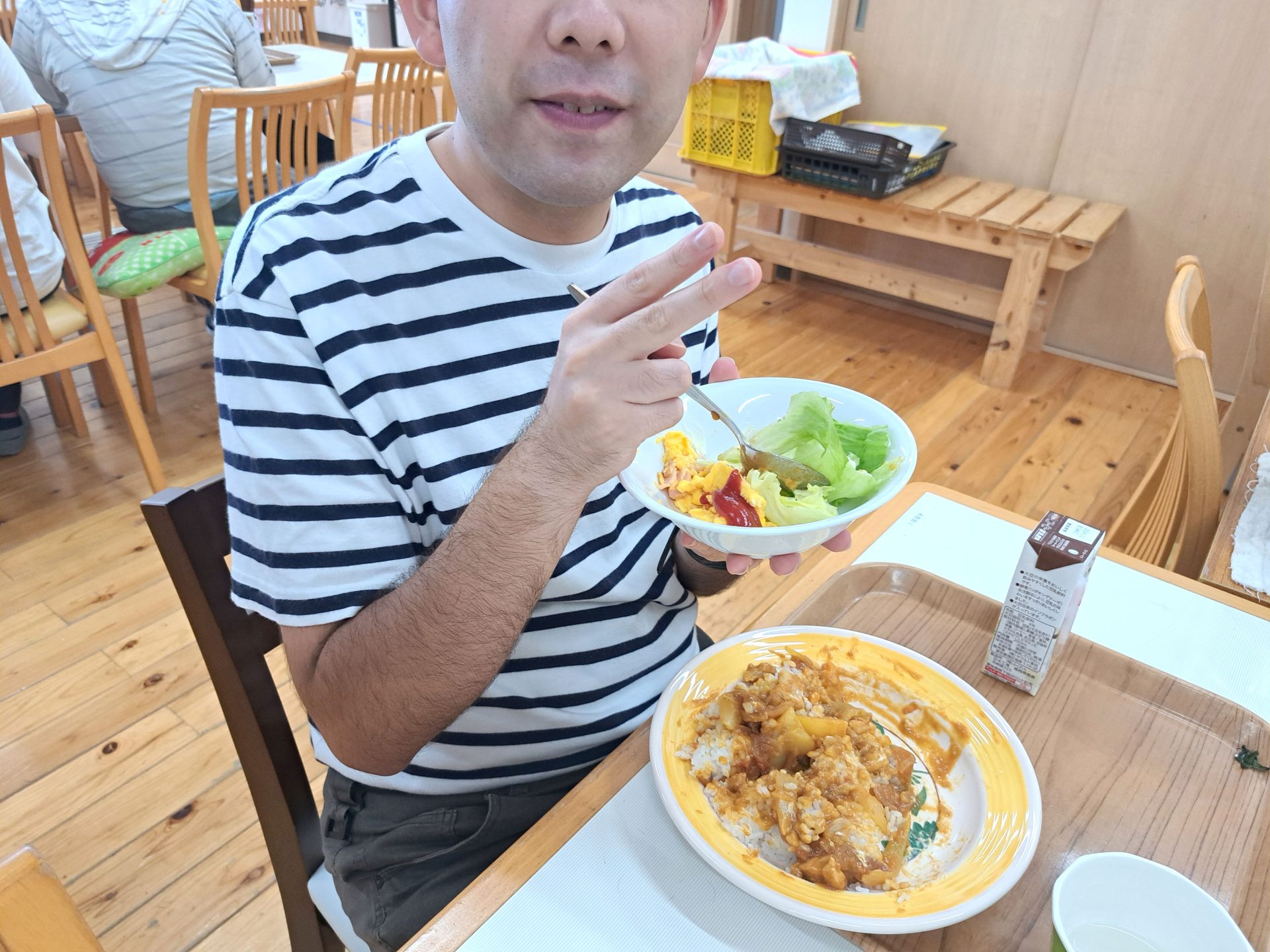 加工室の前で配膳を待っている利用者さんにも聞いてみました~