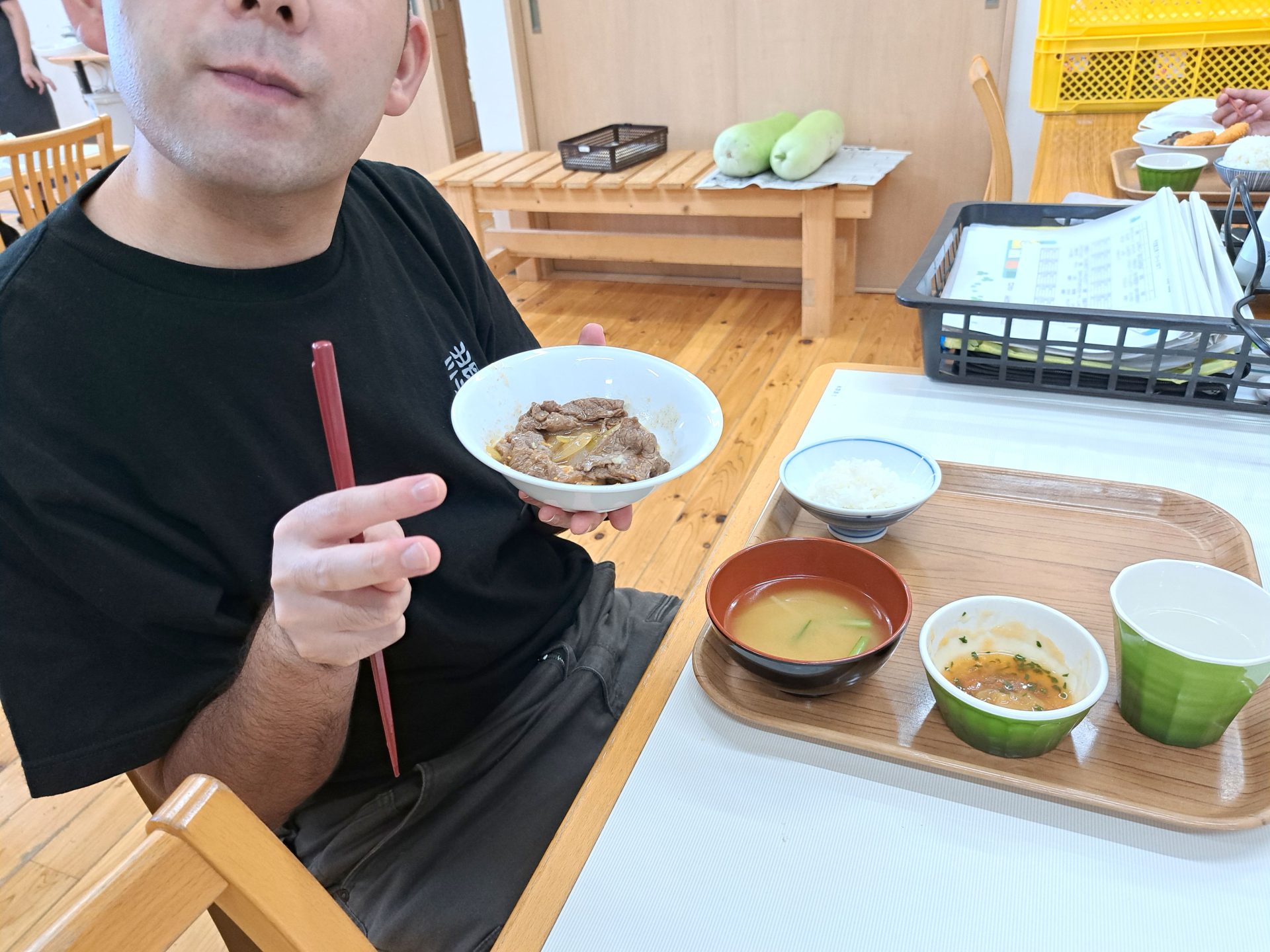 「食べてきたよ~!オクラをご飯にかけて~あとピーマンいためと~おらいの畑のだぞ~あと卵焼きだ~♪」