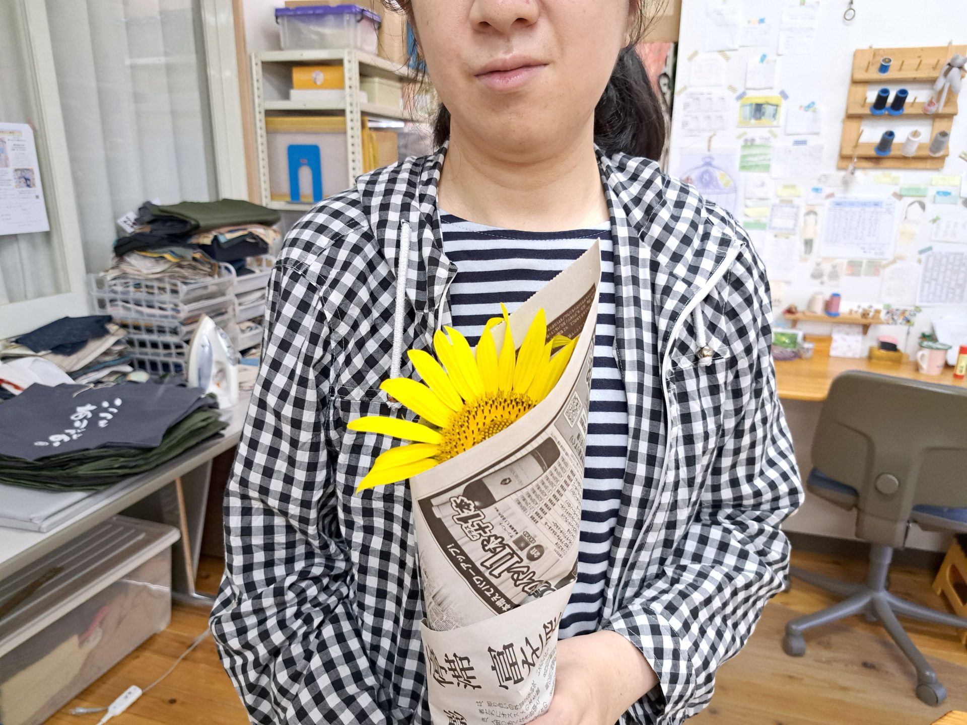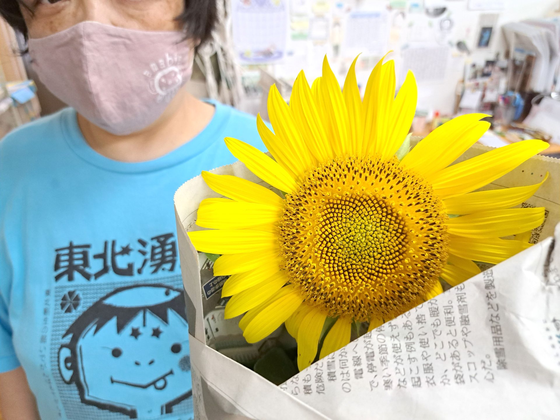 納品から戻ると玄関にお客様が~誰だろ?と思ったら、地域のヒマワリを栽培している方でした~