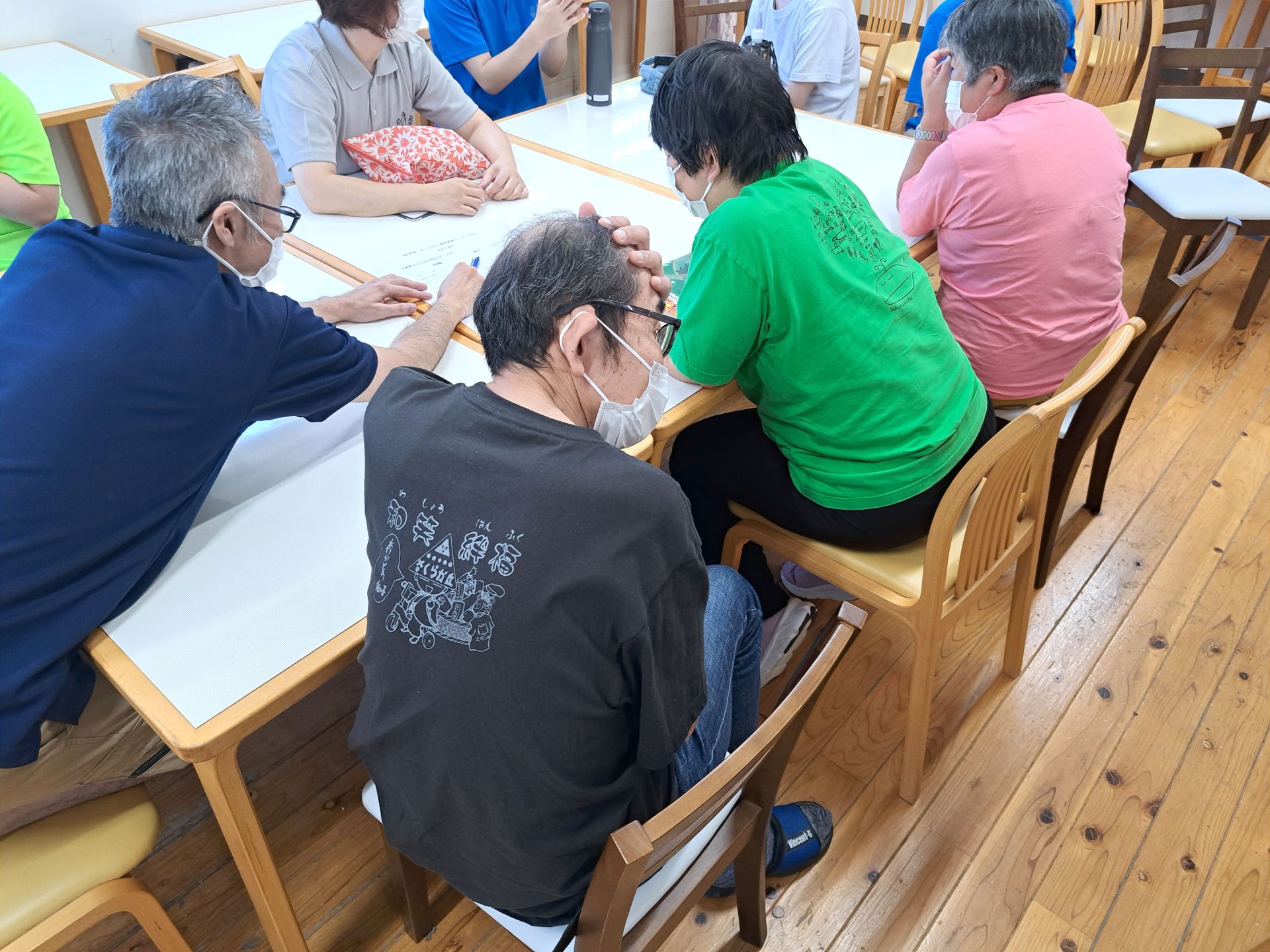 利用者さん達が次々到着~今日は「さくらが丘Tシャツ着用day」になっておりま~す(^^)v