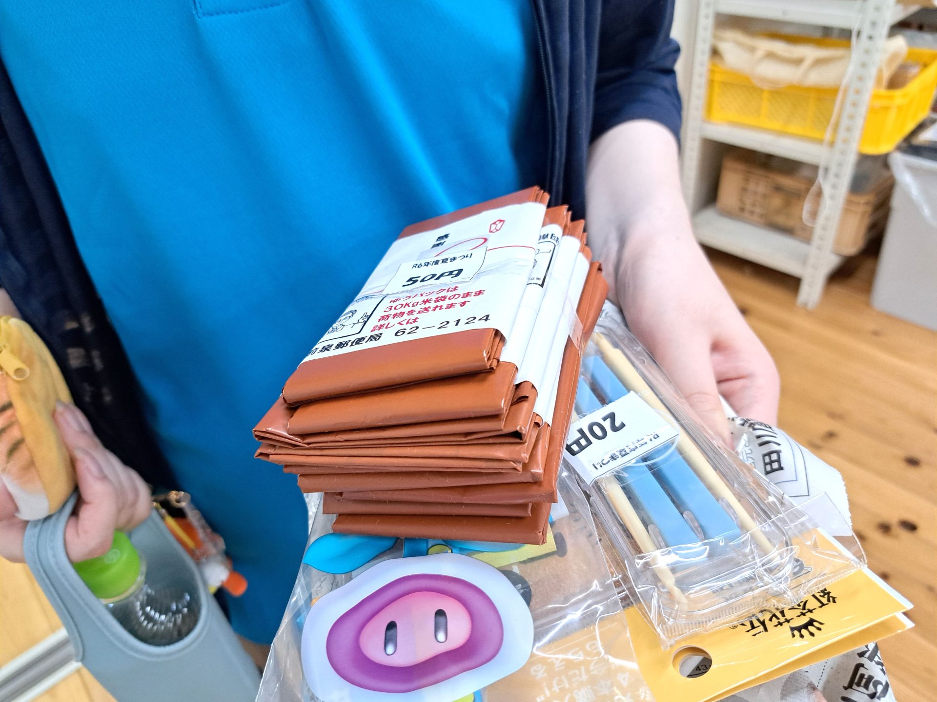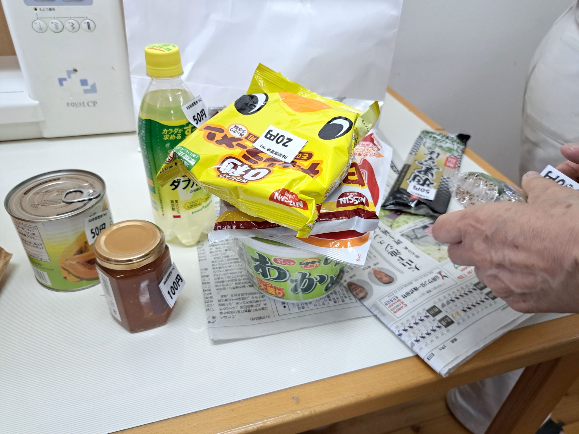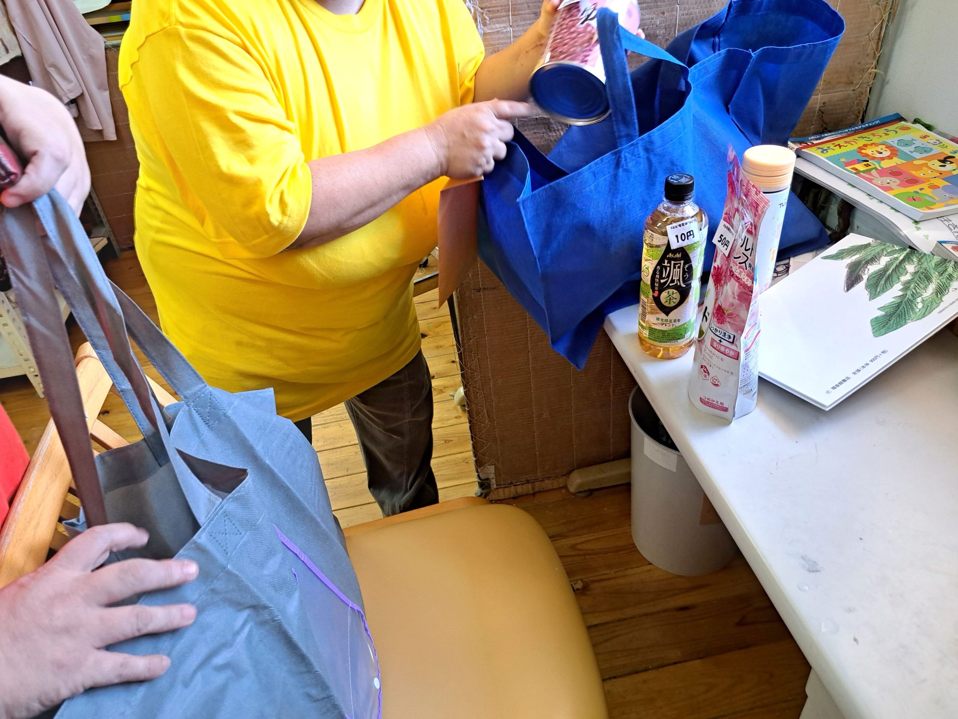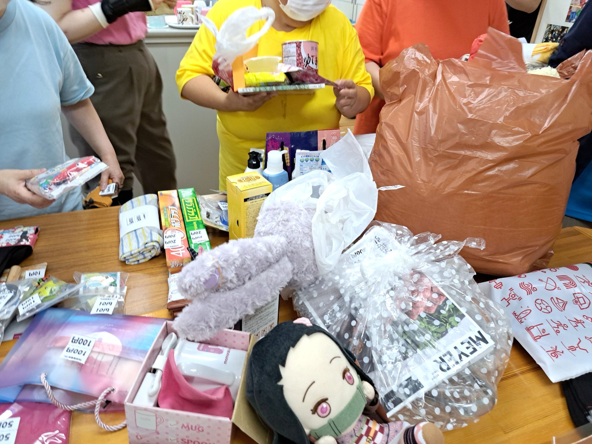- こちらの2つの山の下にはご家庭からご協力い頂いた商品が!