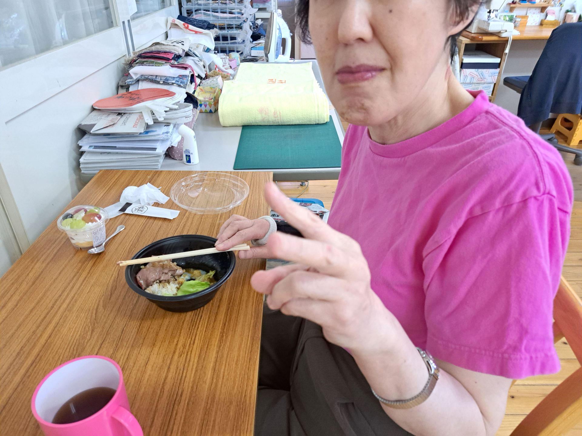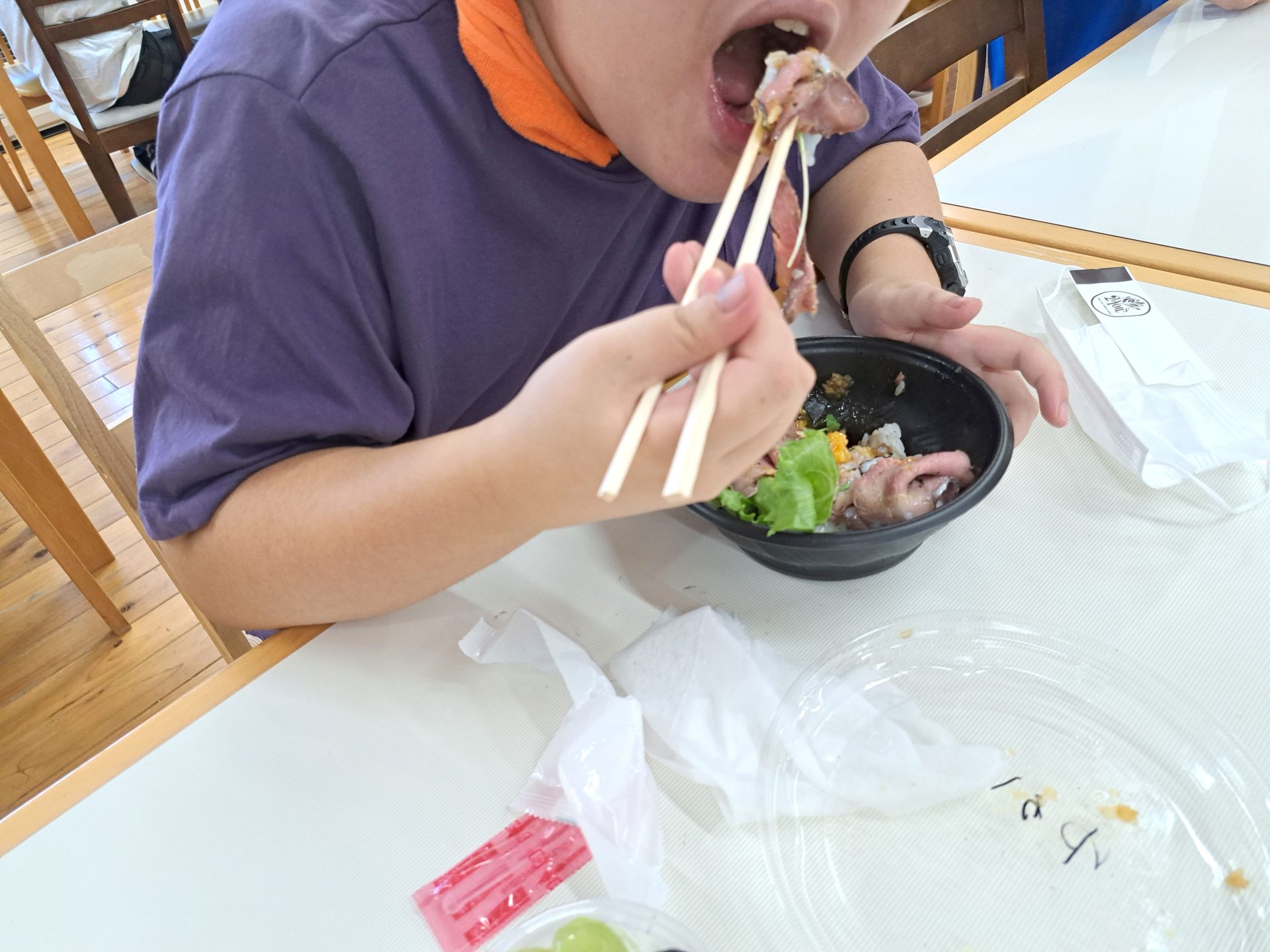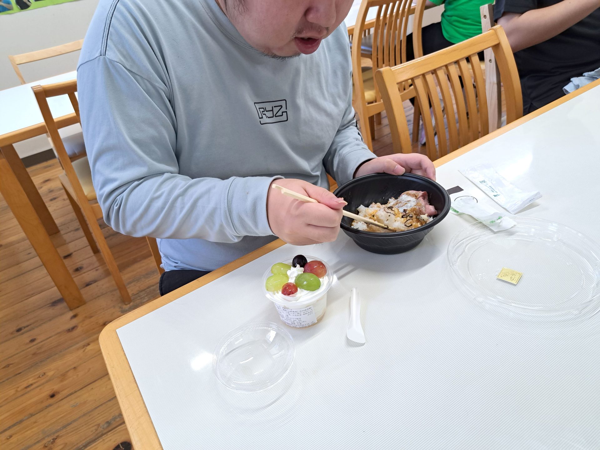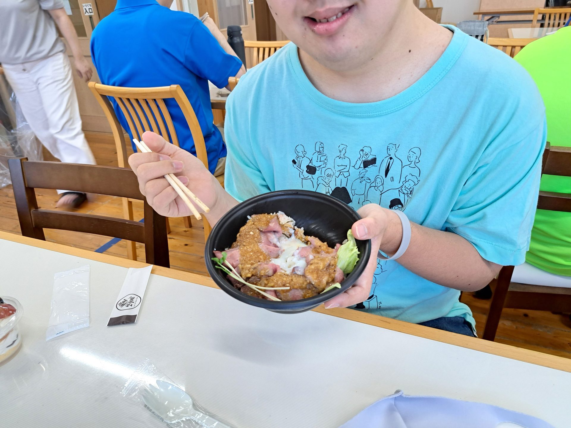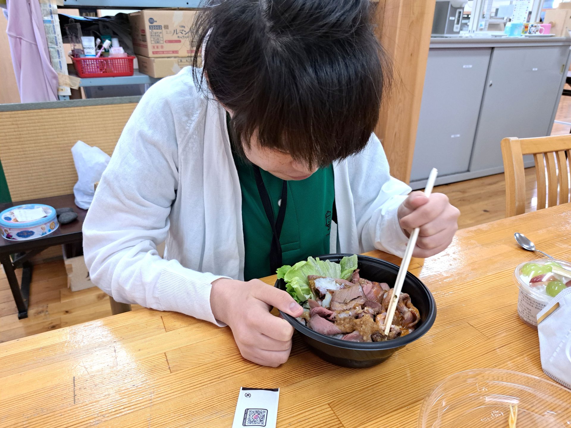 今日のお昼は「2You」さんのローストビーフ丼と、「みるくぱん」さんのスイーツです♪(*^-^*)