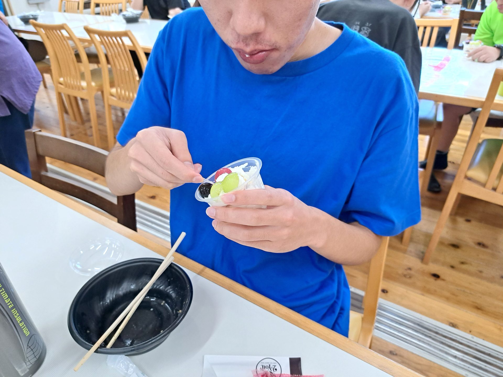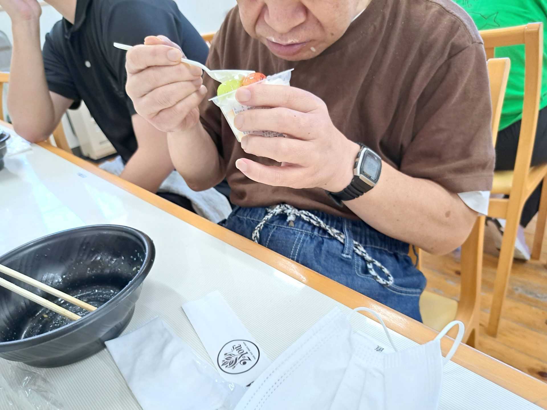 自分でお金を出して支払うのもちょっと緊張の表情の利用者さんたち~