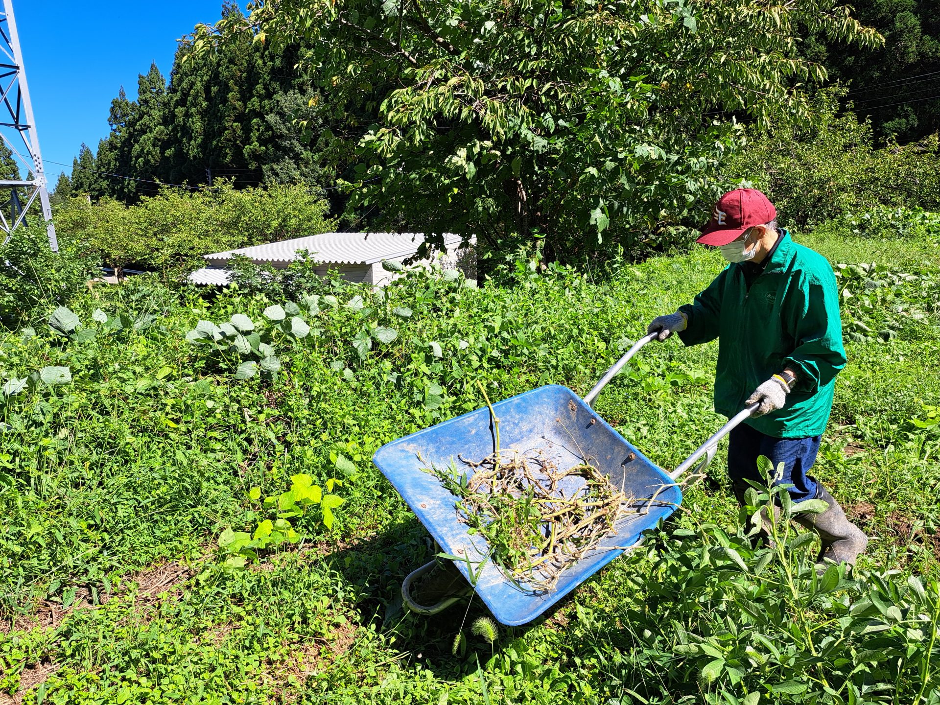 畑では農芸班の新人職員&ベテラン利用者さんが仲良く畑の片付け作業中~(´▽`*)