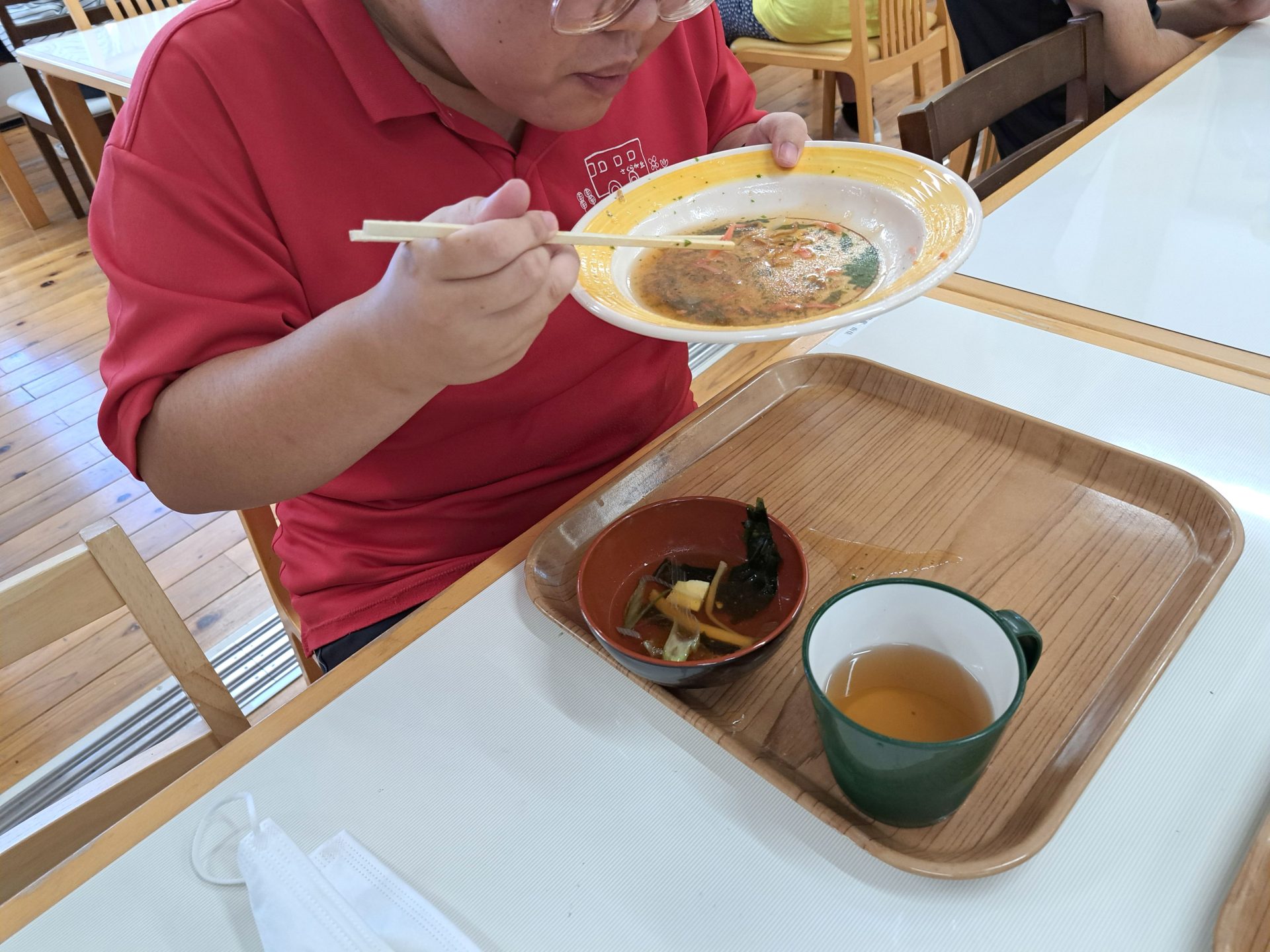 久しぶりの給食に嬉しそうな利用者さんたち~明日は楽しい秋レクですよ~♪
