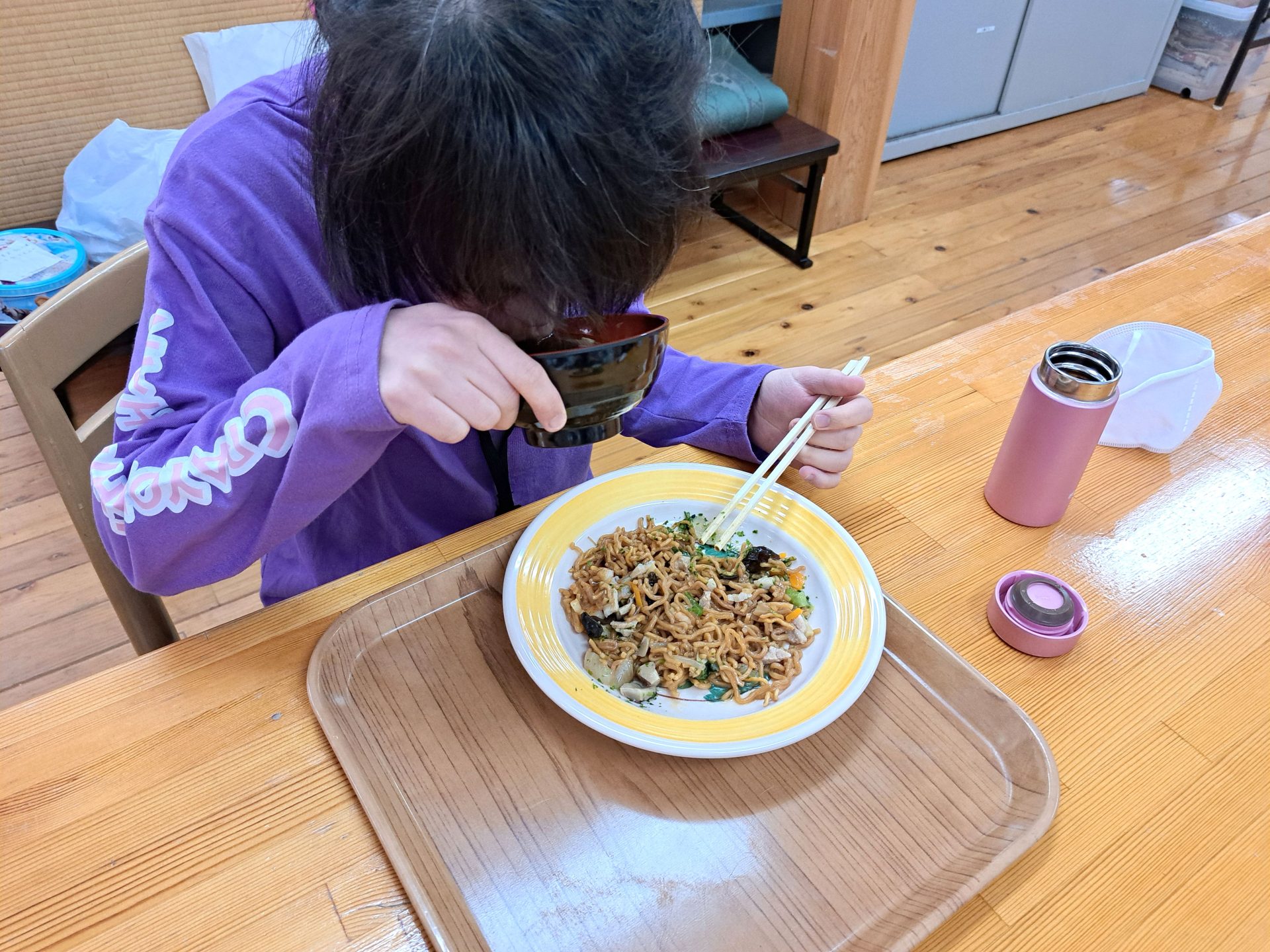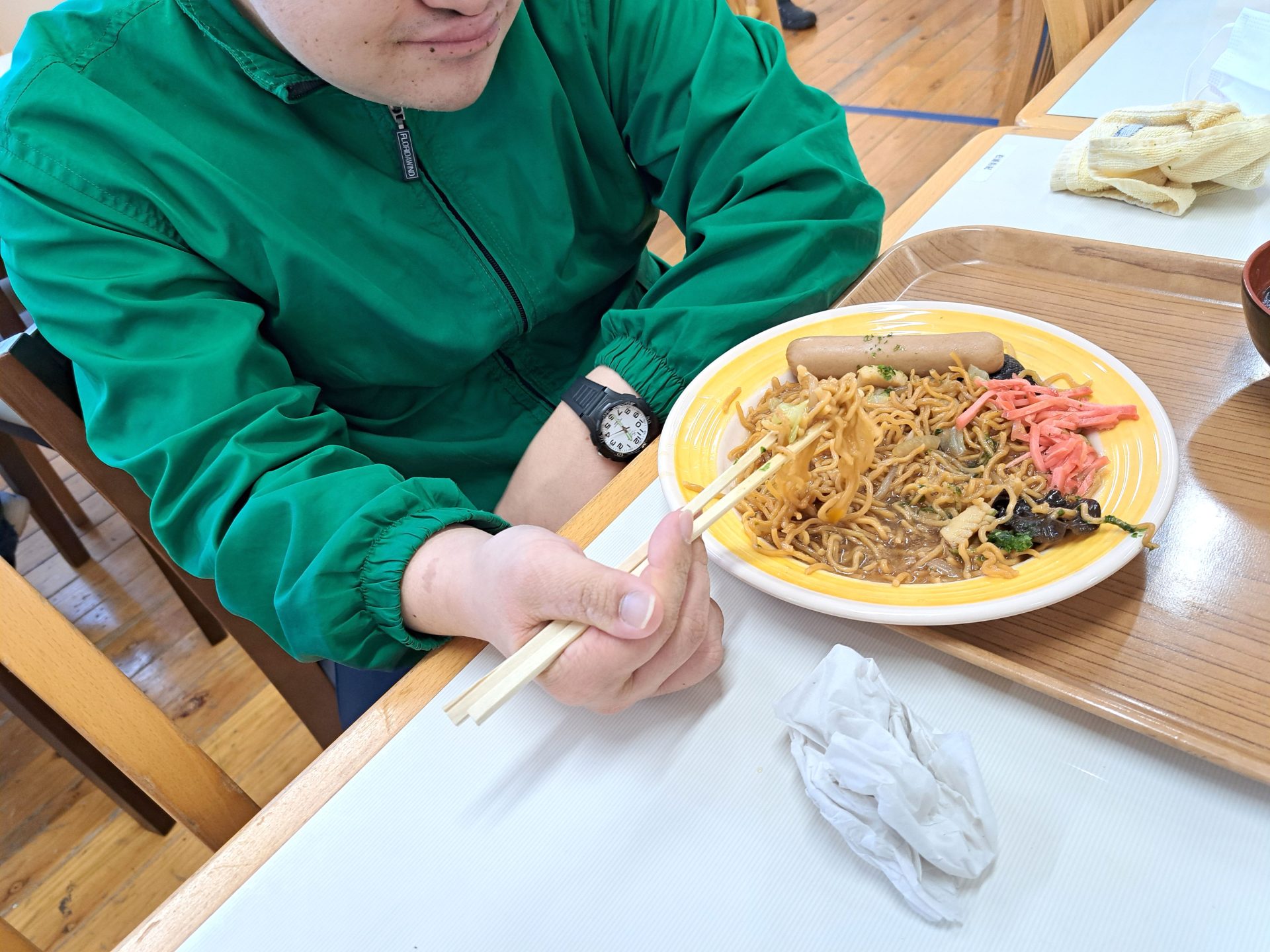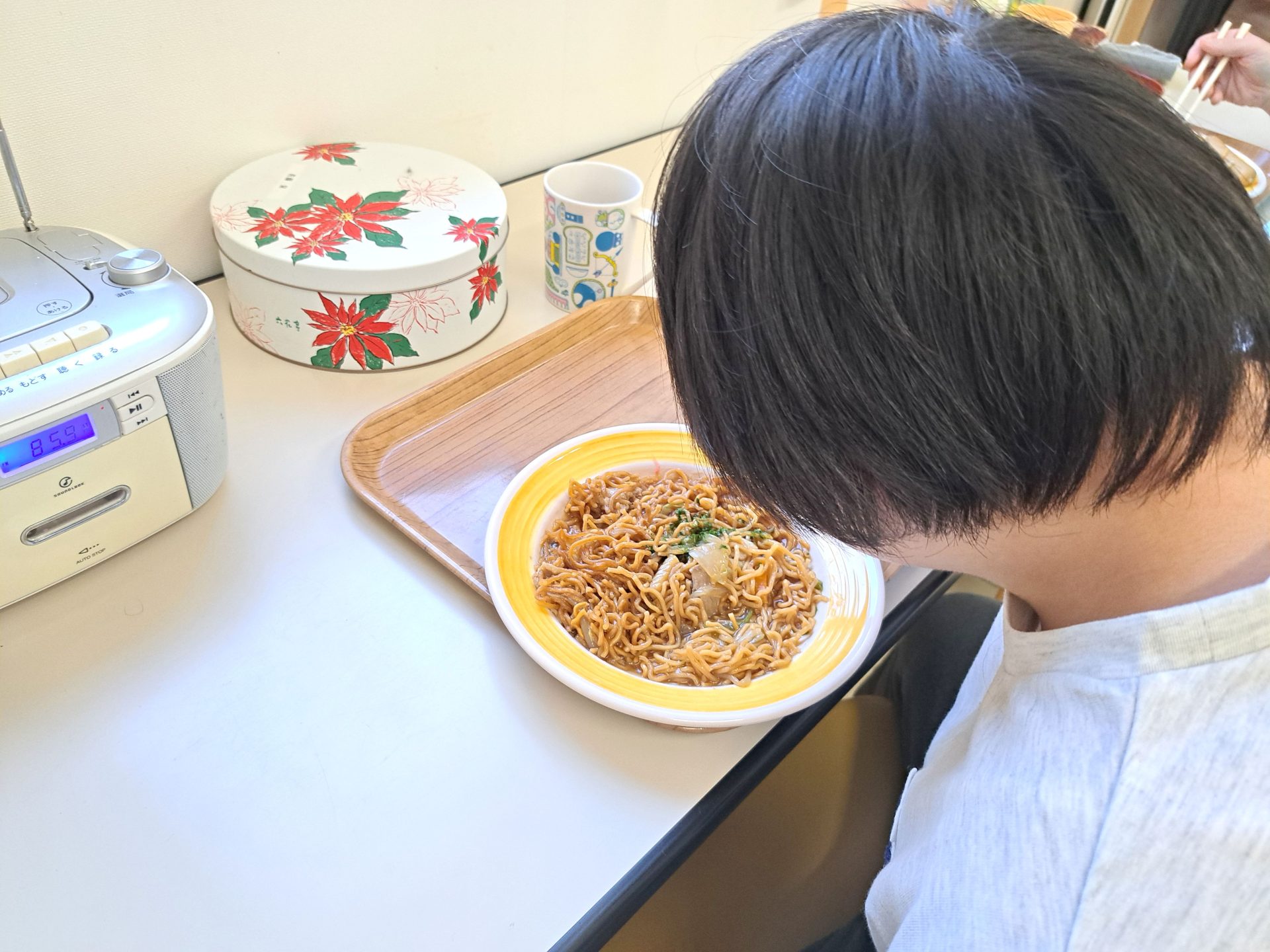 「さあ、今日は揚げ焼きそばですよ~♪」