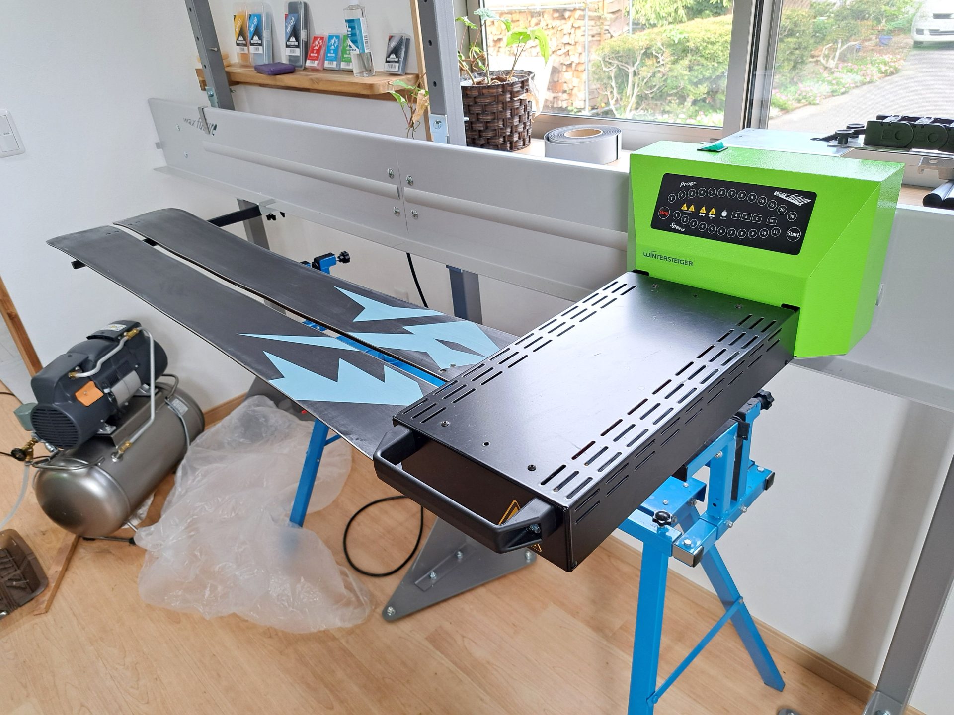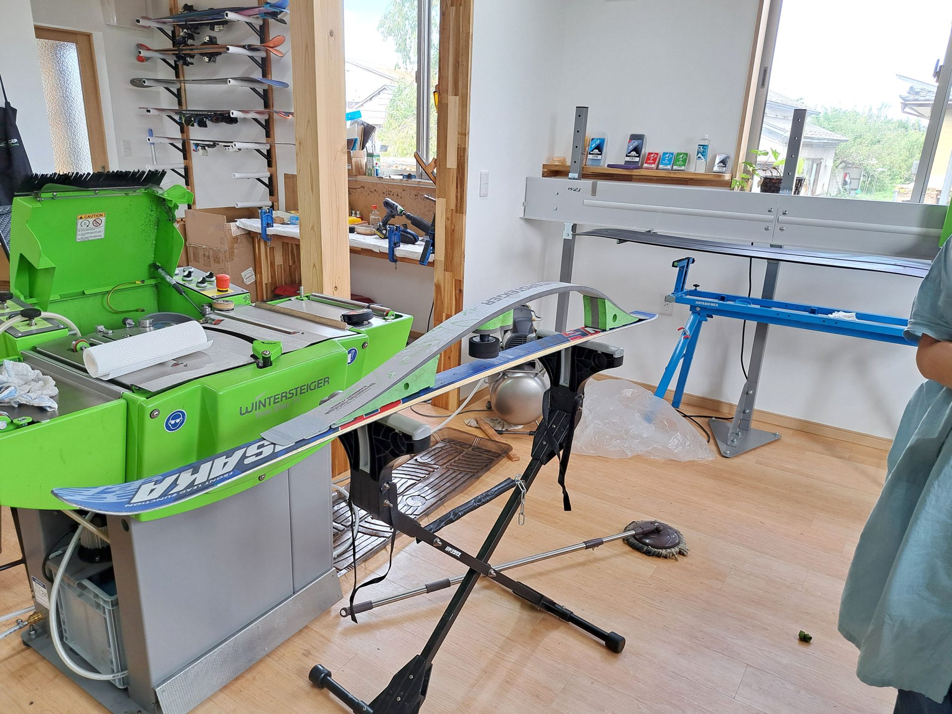 そのために奥の作業場には、見た事のない機械やシーズン前にお客様からお預かりしたスキーやスノボー板がずらり~(´▽`*)