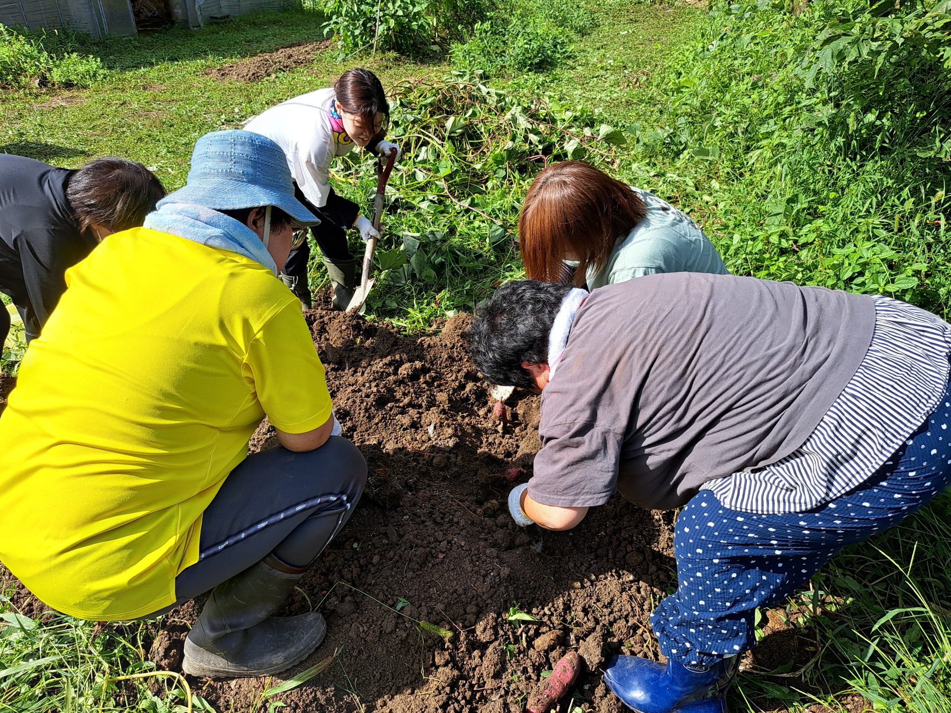 「そろそろサツマイモ掘ってみようかと思うんですけど~」と農芸班新人職員のつぶやきを、どこで聞いていたのか…「サツマイモ掘るな?!明日?!掘りたい―長靴持って来るから~!」と利用者さん達~( ´艸`)