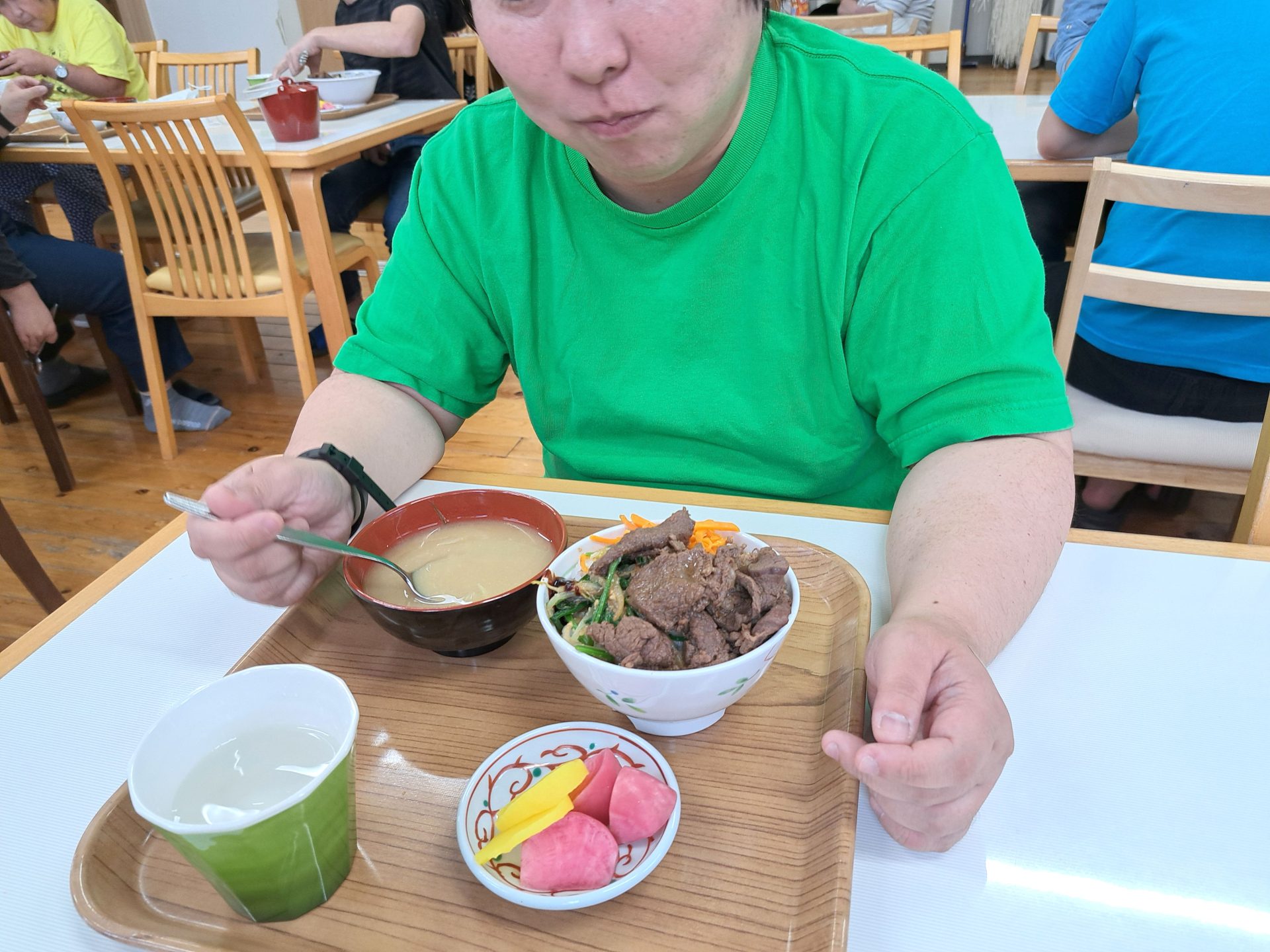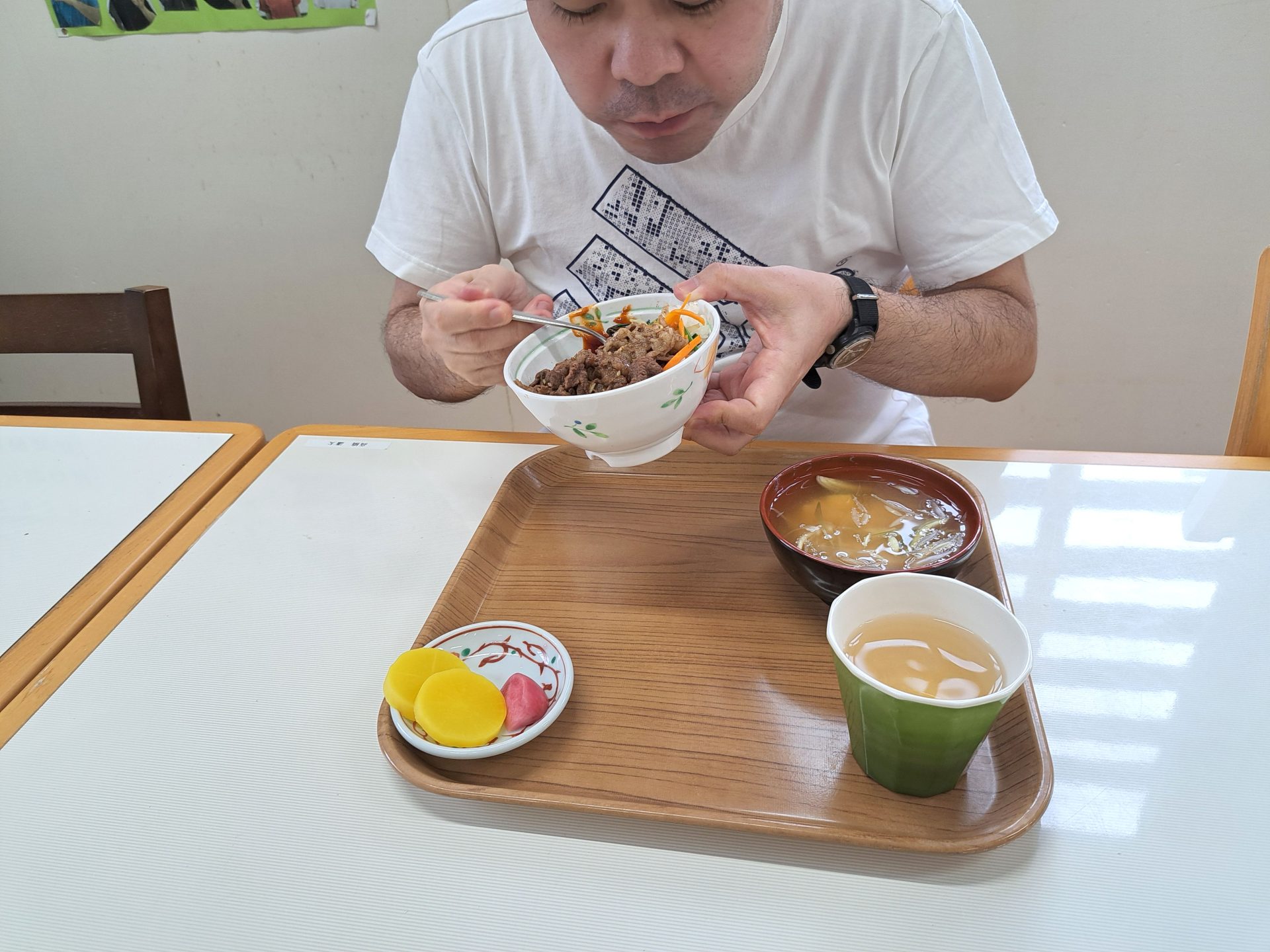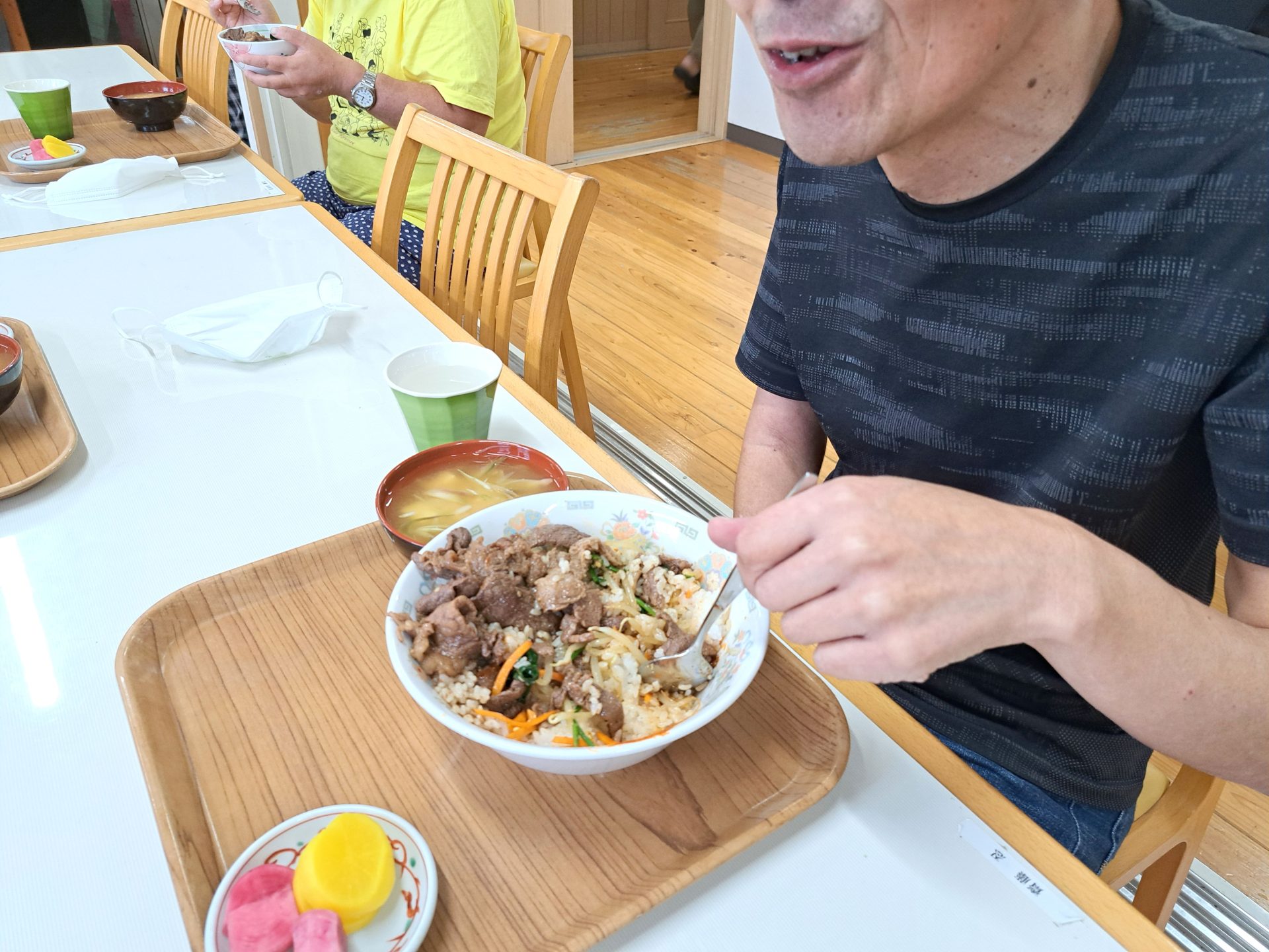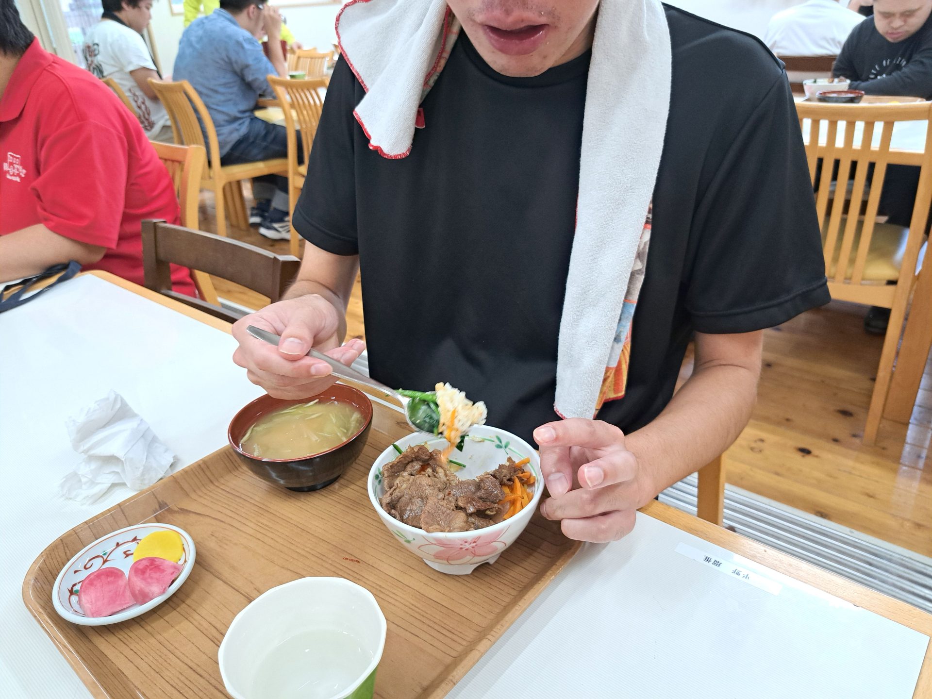 汗だくでそれぞれ働いた後に、みんなで食べる給食は最高ですね~!