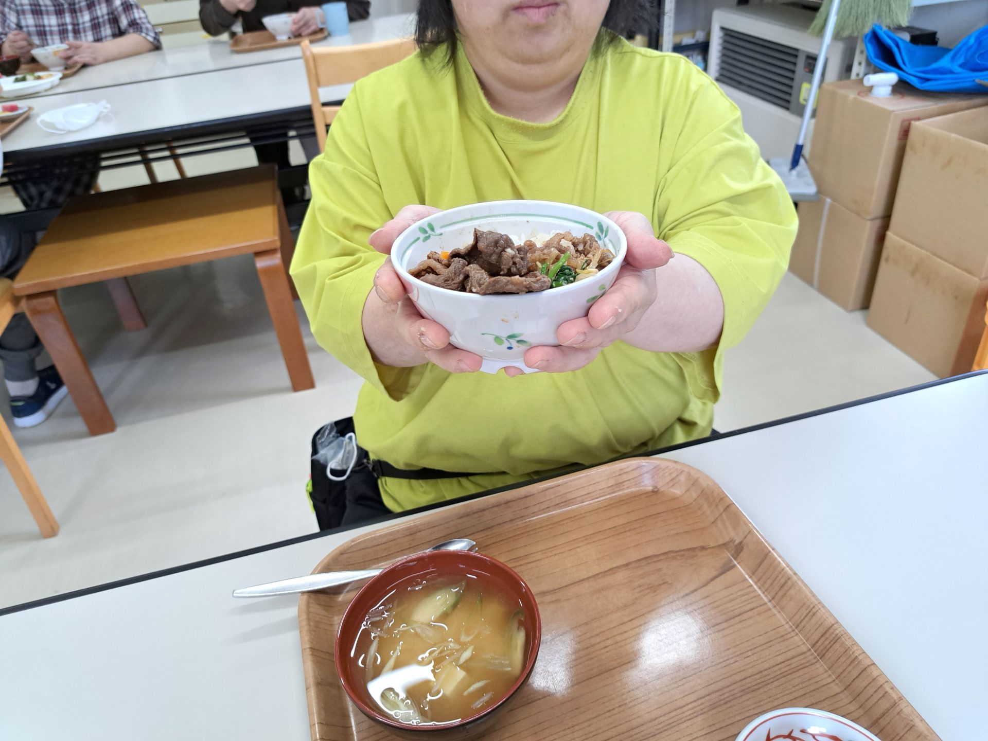 さてさてお楽しみの今日の給食です~やった牛肉だーーー!!