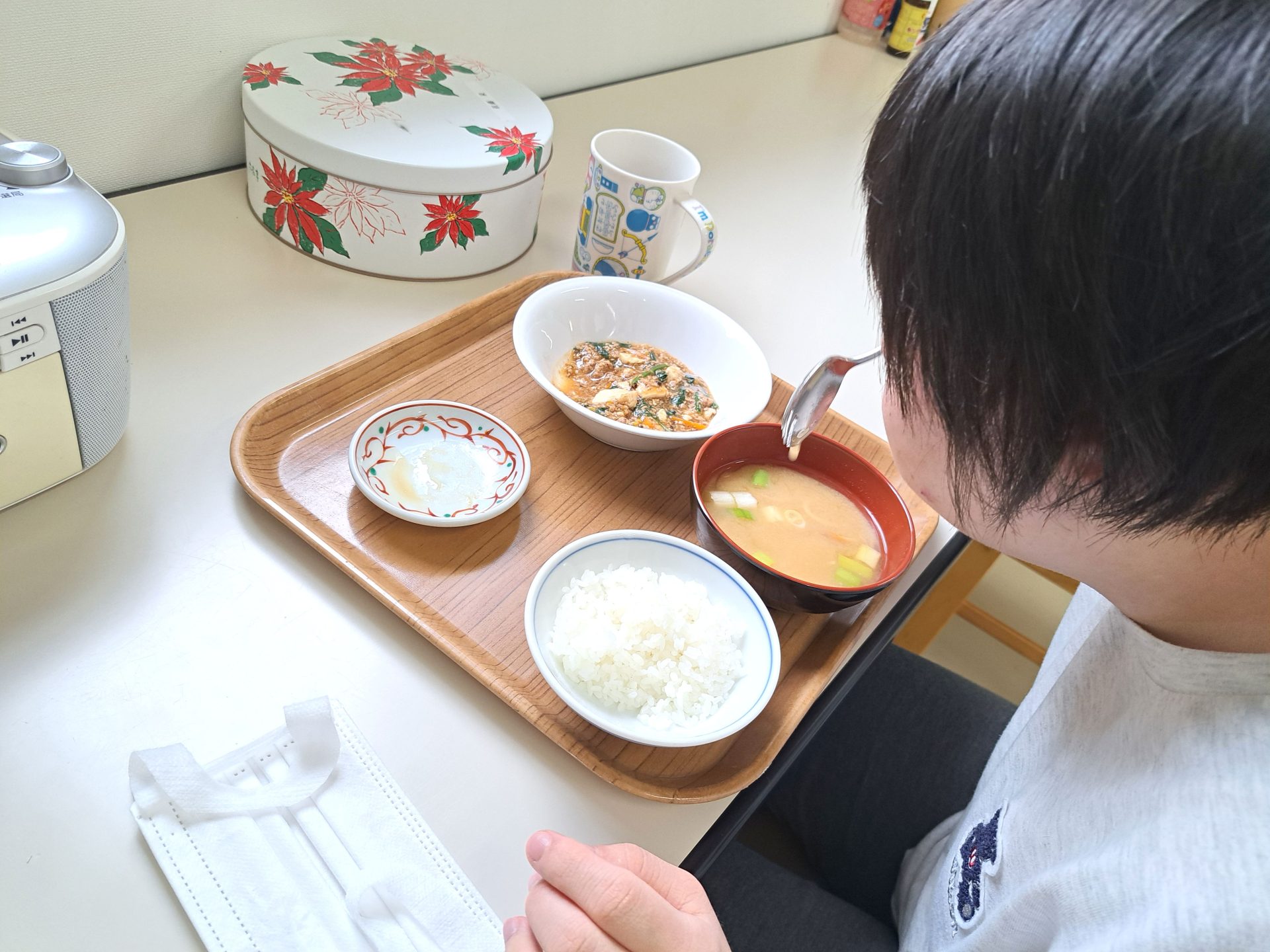 完成祝いの給食です~白ご飯てんこ盛りが嬉しい~(*^-^*)