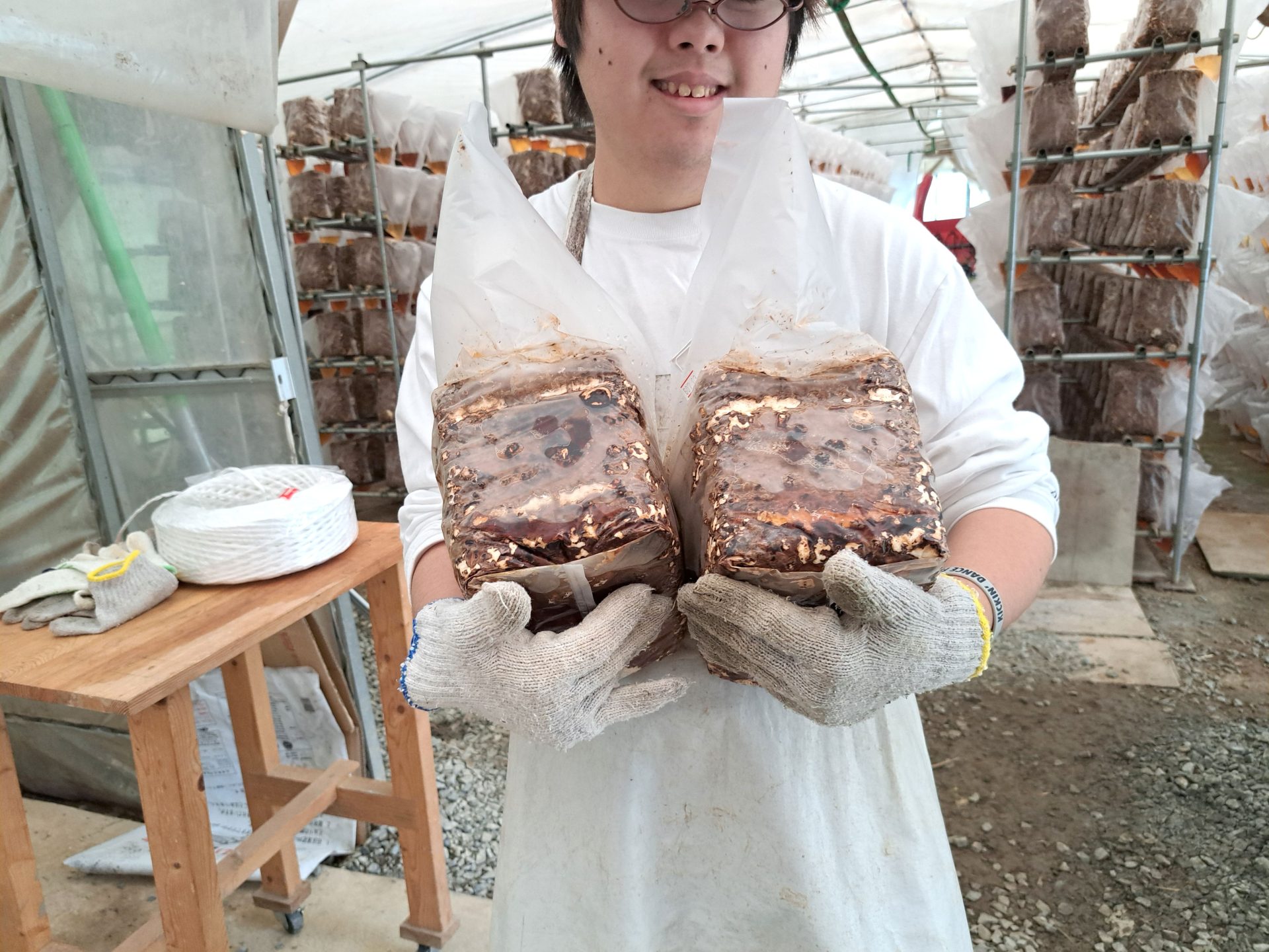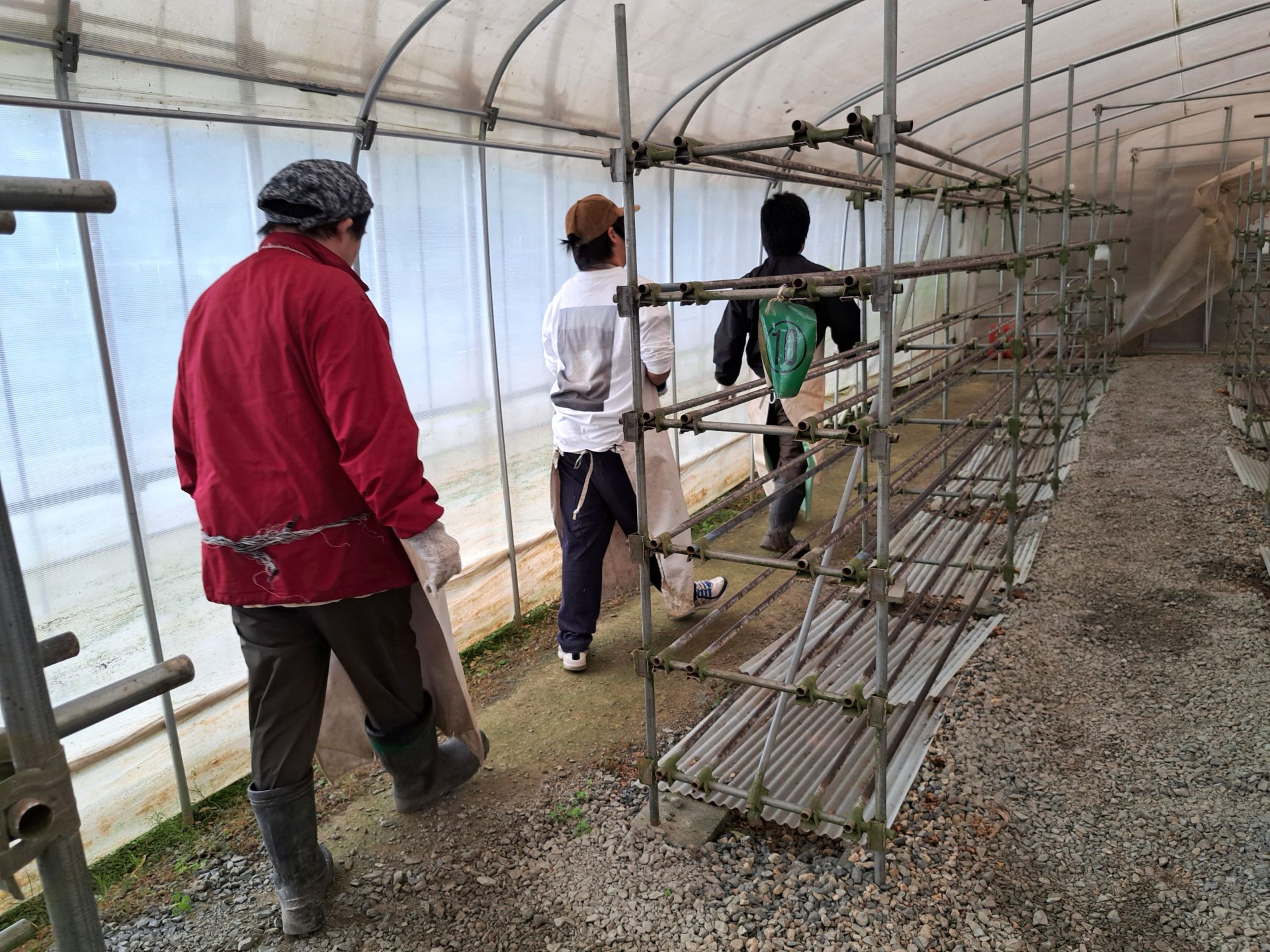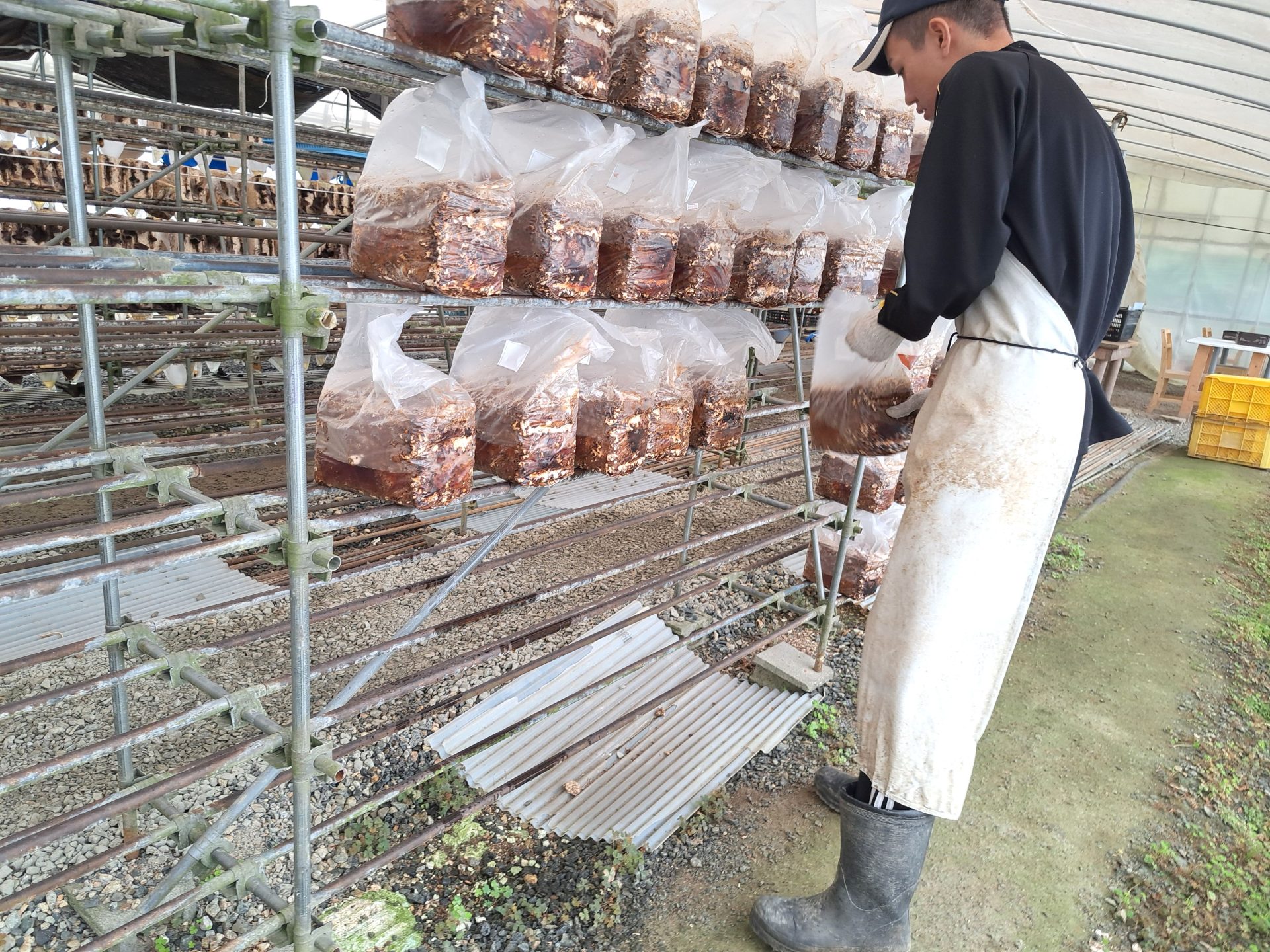 まずは菌床を培養ハウスから育成ハウス?へ大移動~(´▽`*)