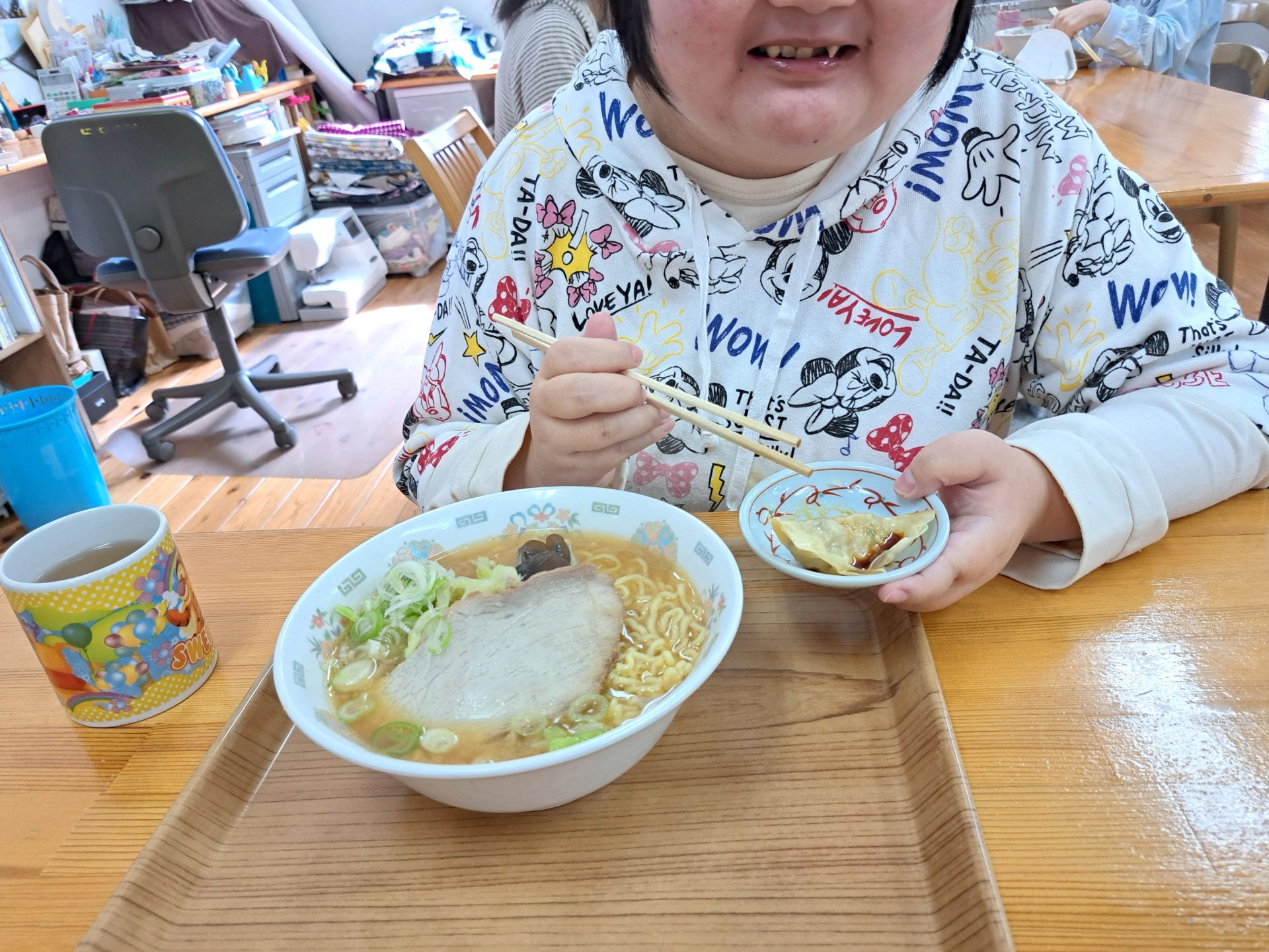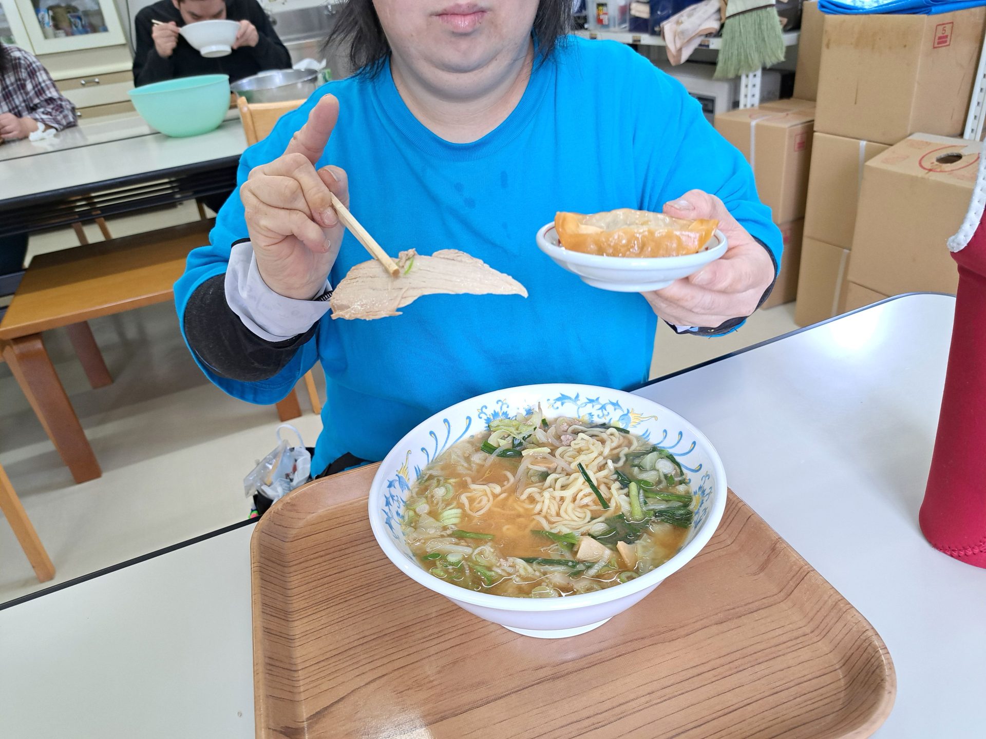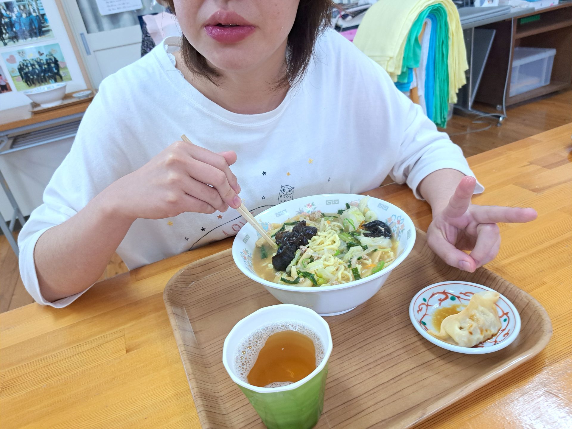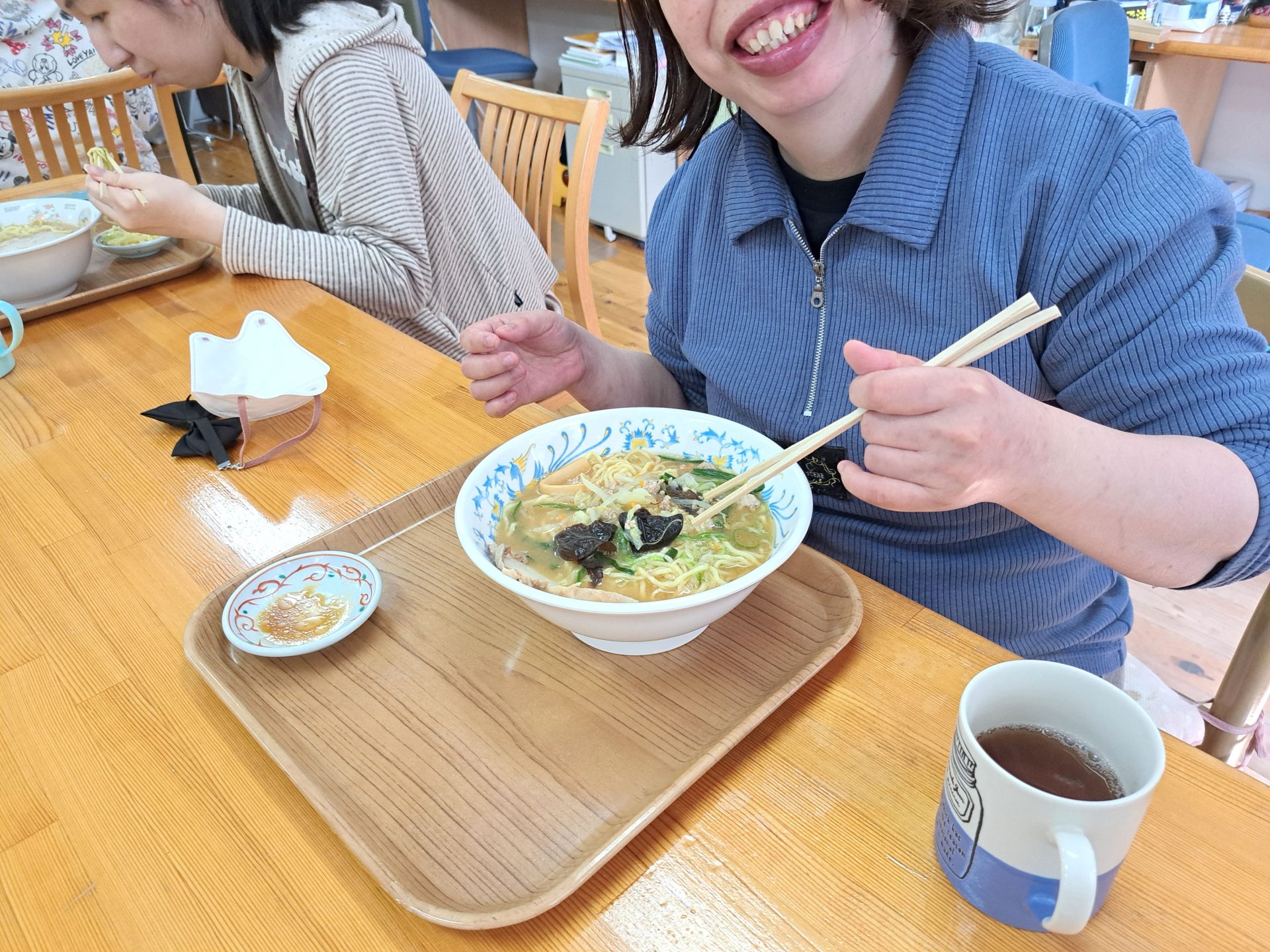 今日は「お誕生日メニュー」で献立表にもメニューが書いてなくてサプライズだったんですけど、なぜか「ラーーメンらしいぞ!」という噂は流れてきて~(^▽^;)「味噌?しょうゆ?塩??それともとろみのあるやつ?!」とみんなで妄想膨らませていたのですが~
