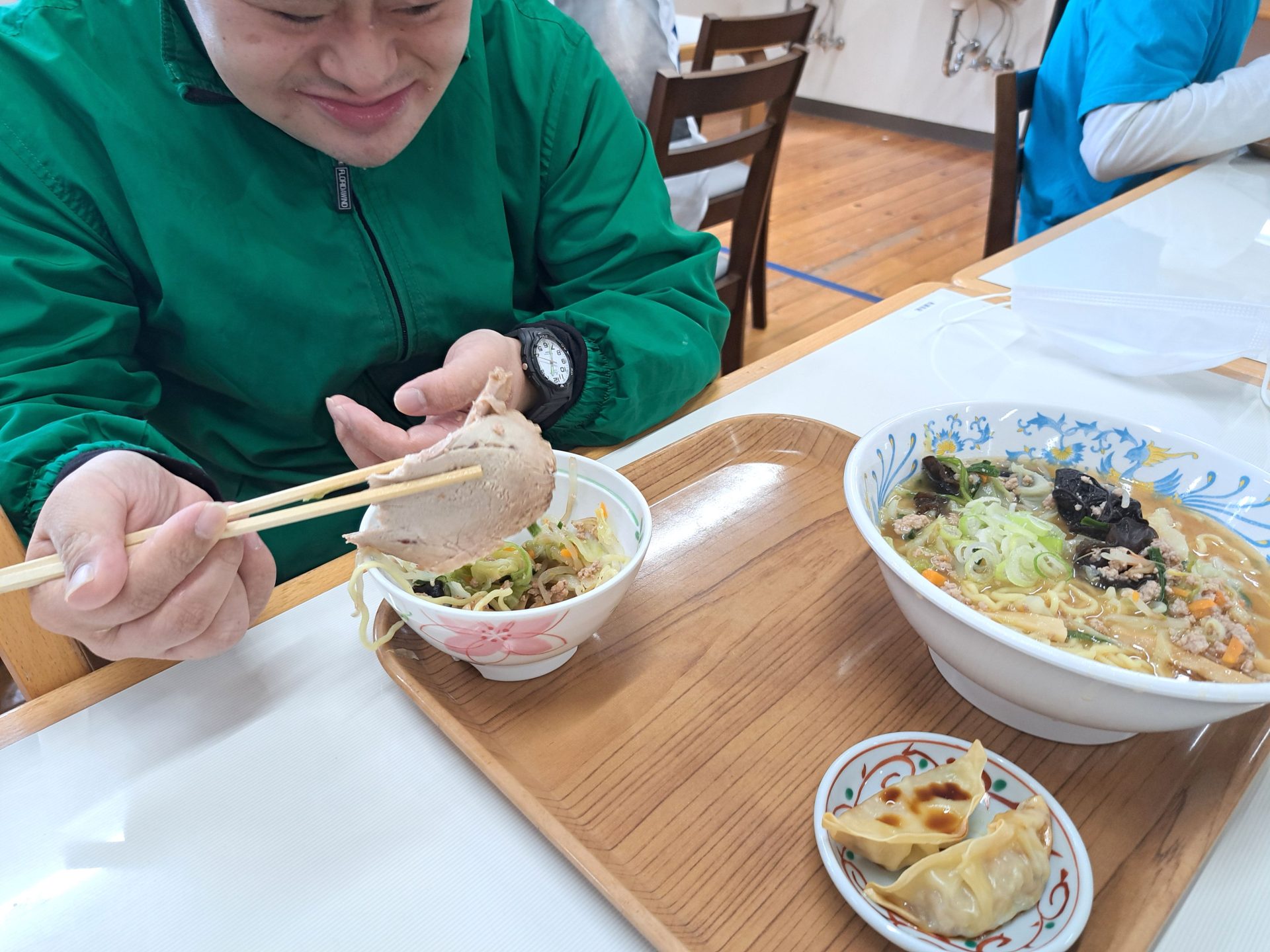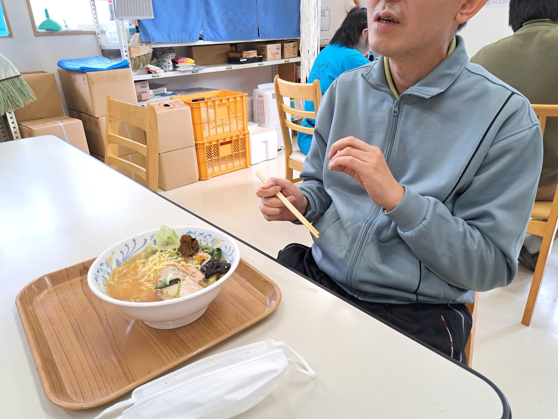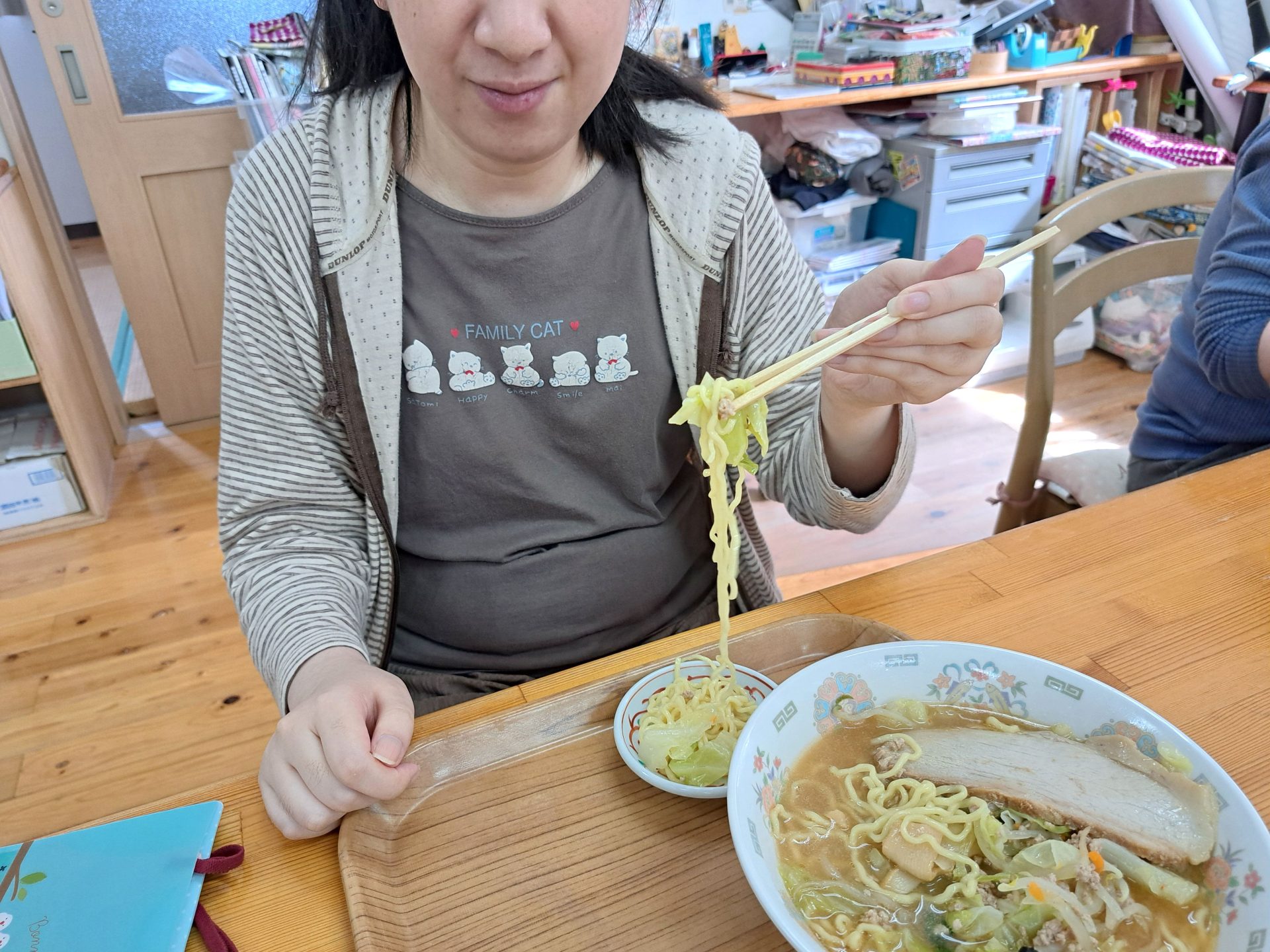 今日は「お誕生日メニュー」で献立表にもメニューが書いてなくてサプライズだったんですけど、なぜか「ラーーメンらしいぞ!」という噂は流れてきて~(^▽^;)「味噌?しょうゆ?塩??それともとろみのあるやつ?!」とみんなで妄想膨らませていたのですが~