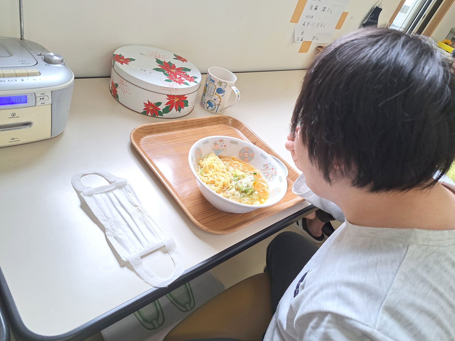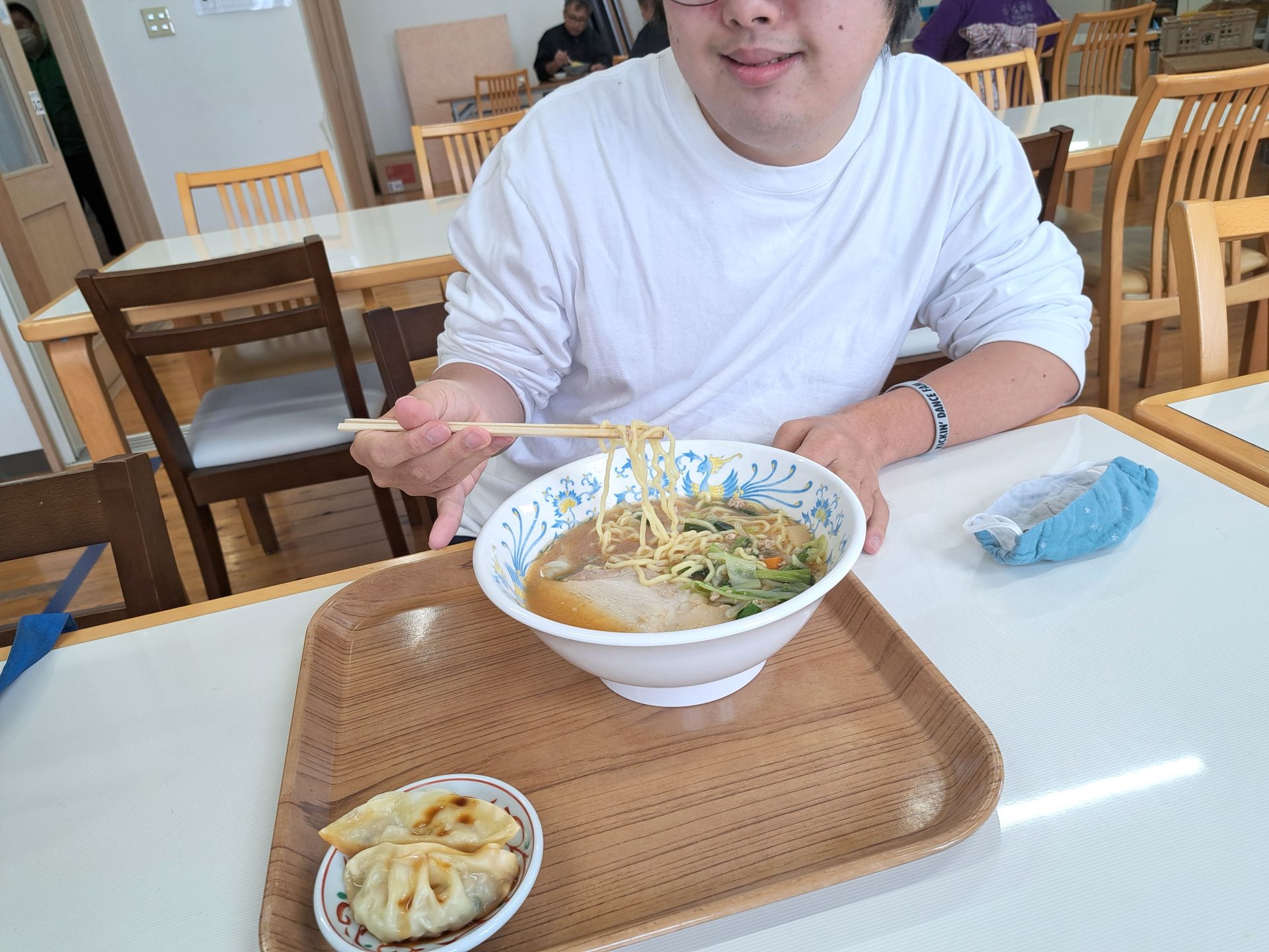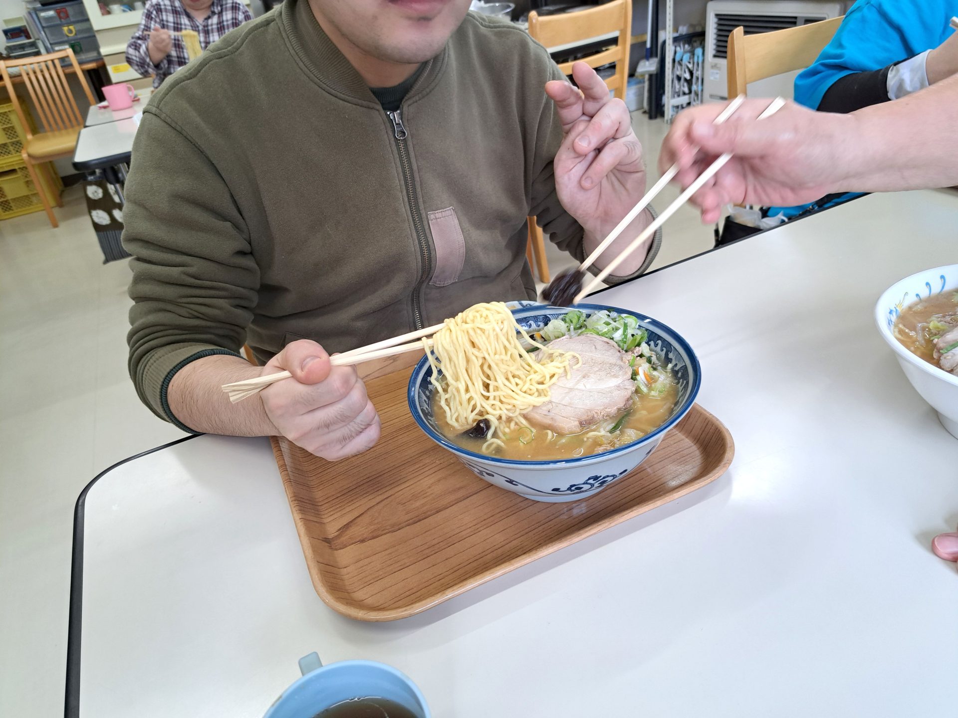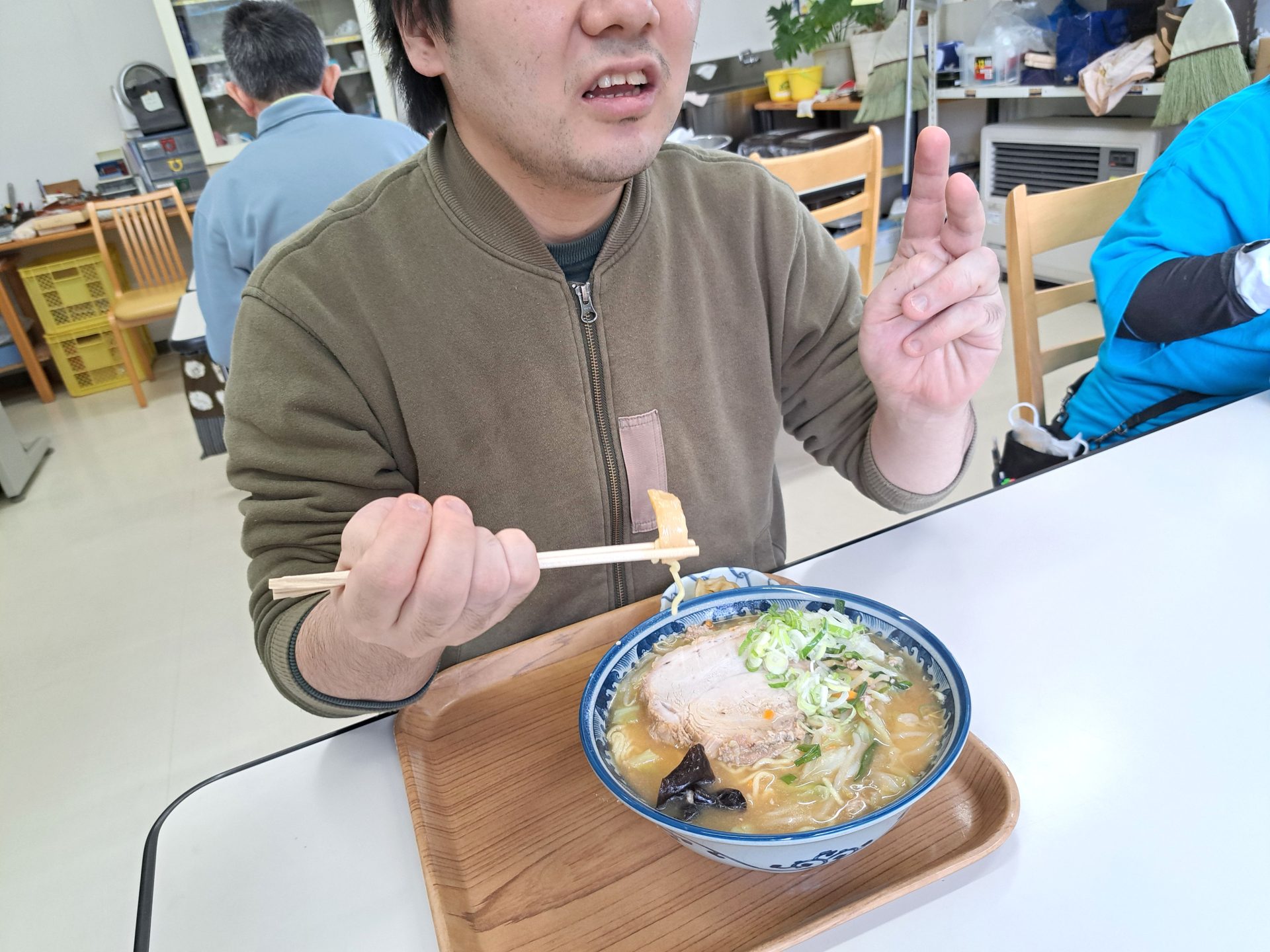 今日は「お誕生日メニュー」で献立表にもメニューが書いてなくてサプライズだったんですけど、なぜか「ラーーメンらしいぞ!」という噂は流れてきて~(^▽^;)「味噌?しょうゆ?塩??それともとろみのあるやつ?!」とみんなで妄想膨らませていたのですが~