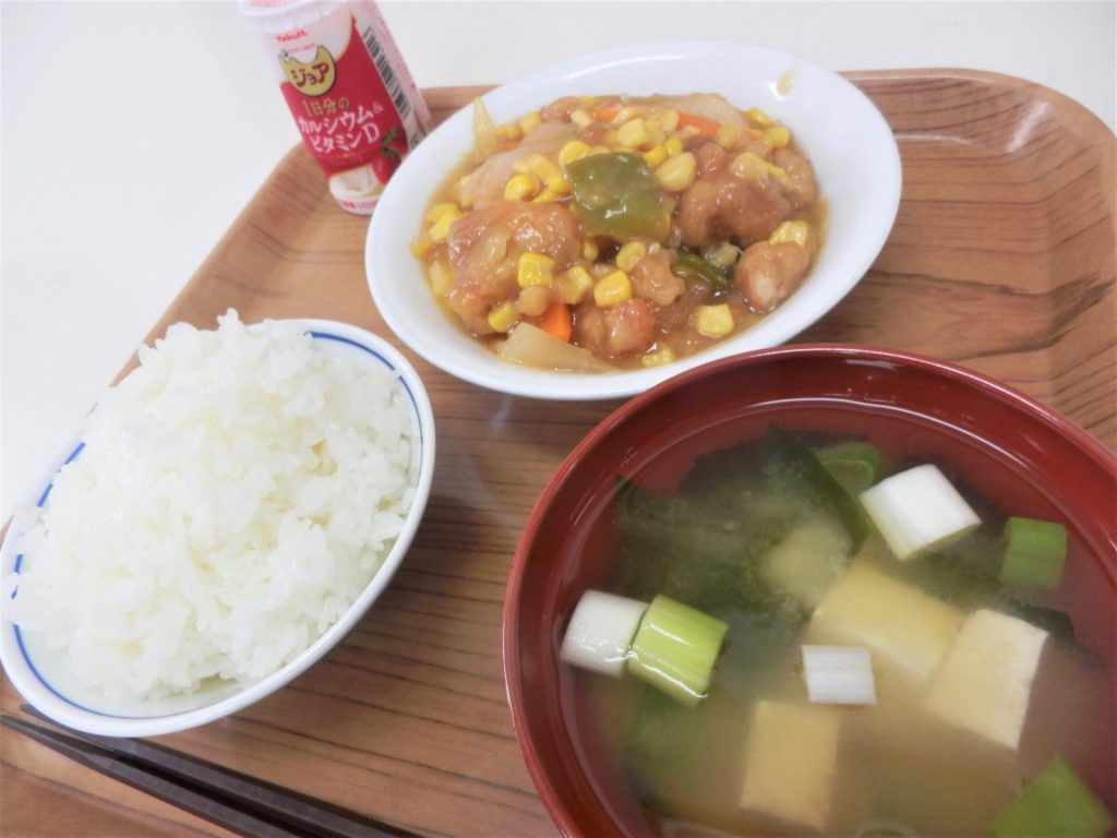 雨や曇り続きだったので、今日の青空は嬉しい(´▽`*) さくらが丘のお空は広い!高い! 上を見上げたら飛行機~! 今日の給食~(*´ω`*) 鶏肉とコーンの揚げ煮~コーンの量が贅沢です! 豆腐とネギとワカメってやっぱり美味しい♪ ジョア(いちご)♡ 今日は職員会議だから、午後は作業時間短い! 給食パワーで全集中で頑張らねば!!