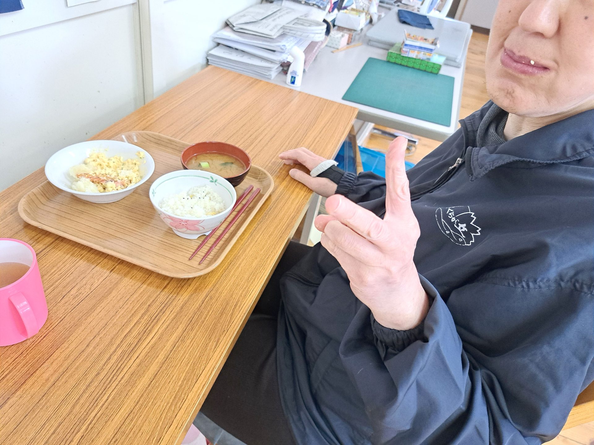 実習生さんはお気に入りの動物ずかんを開いて、他の利用者さんと楽しそうにしていました~(´▽`*)