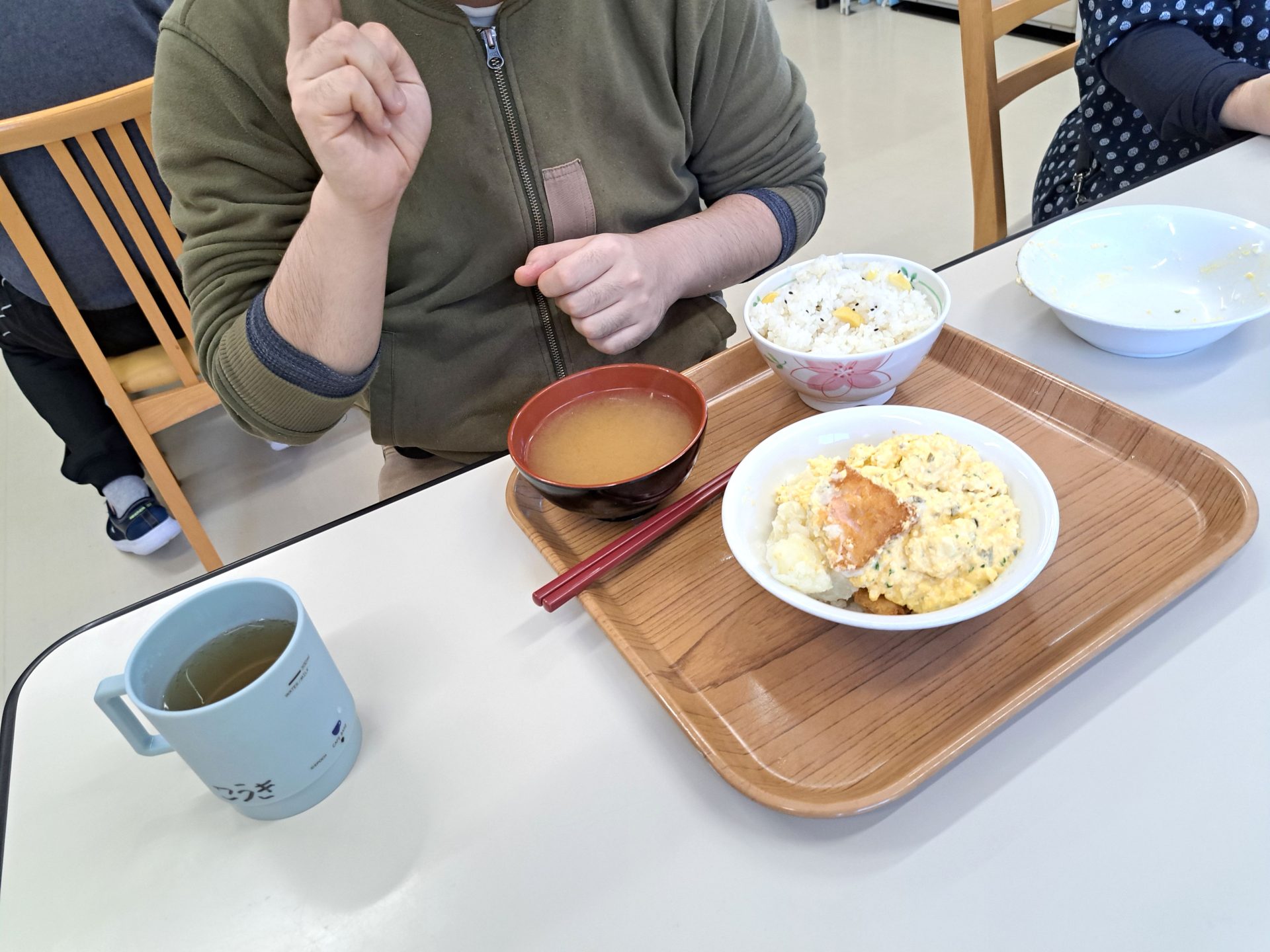 実習生さんも美味しそうに食べてくれました~さくらが丘の自慢の給食2週間味わってくださいね~(´▽`*)